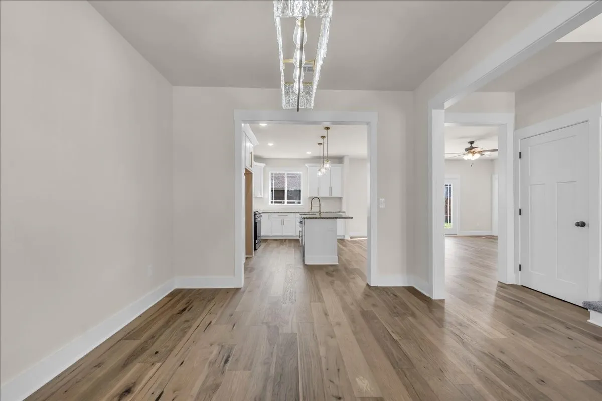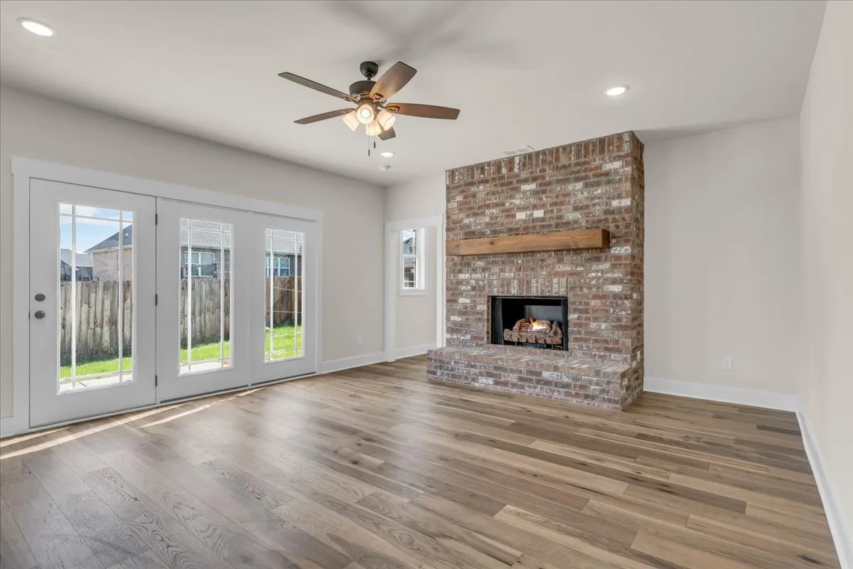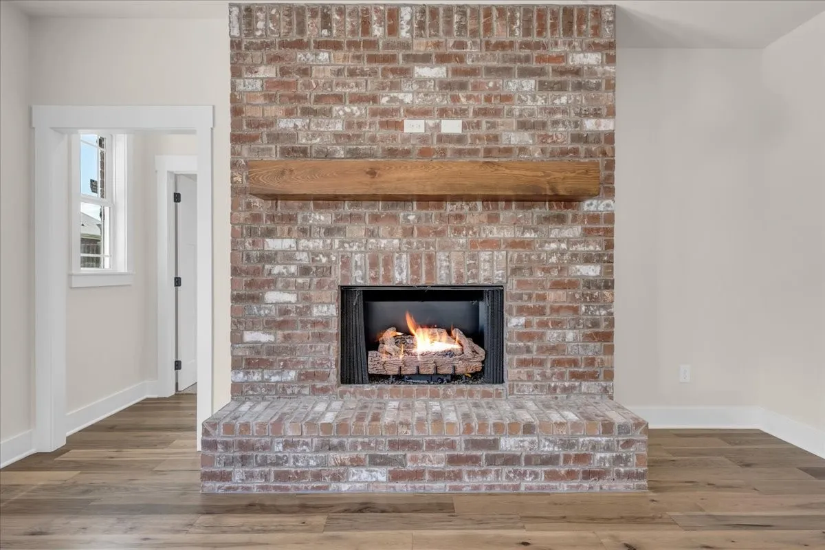 This thoughtfully designed 4-bedroom, 2.5-bath residence blends timeless construction with modern luxury and intentional upgrades throughout. Step inside to soaring ceilings, including 9-foot ceilings on the main level, an impressive 18-foot foyer, and a stunning 10-foot tray ceiling in the primary bedroom. The open living area is anchored by a gas log brick fireplace, creating a warm and inviting focal point.
