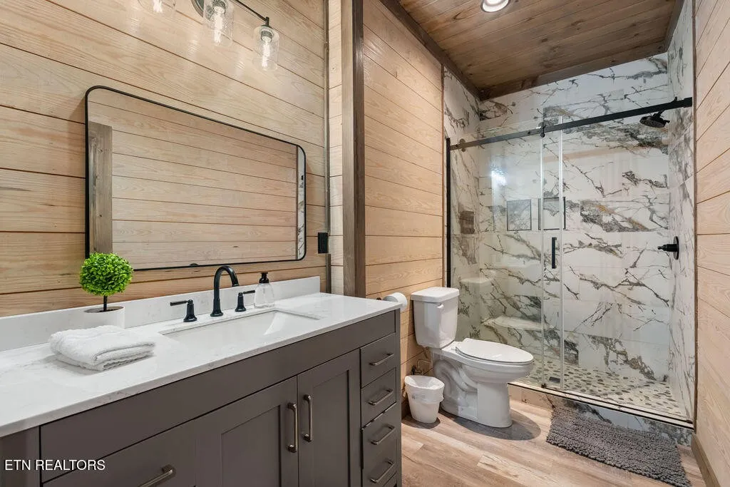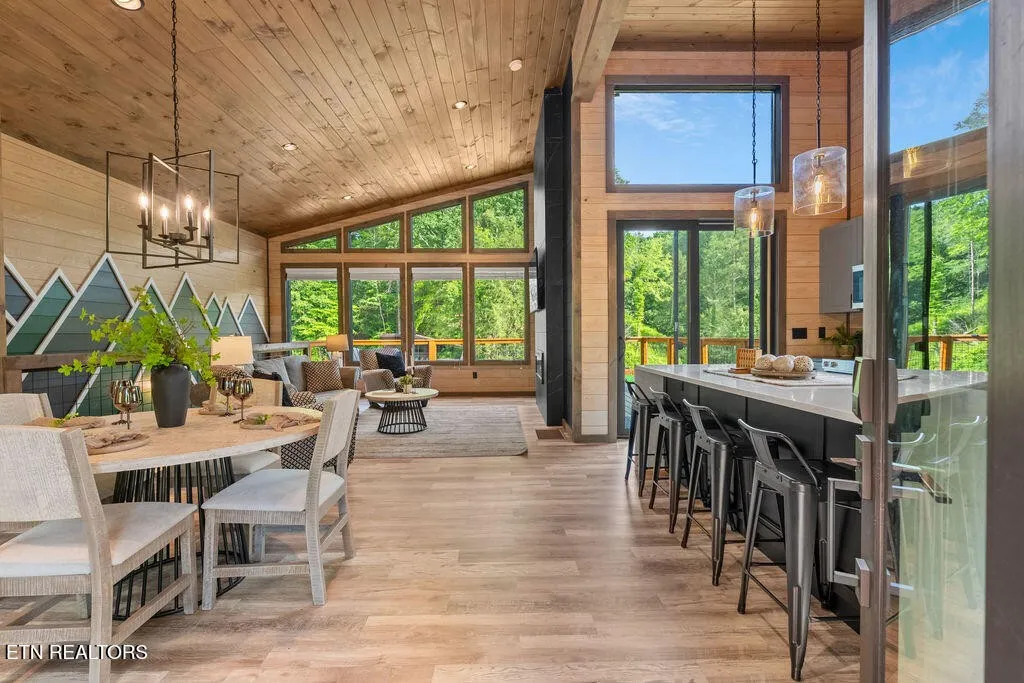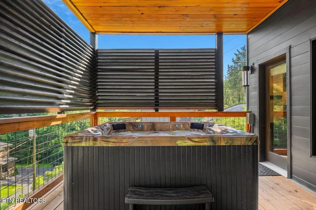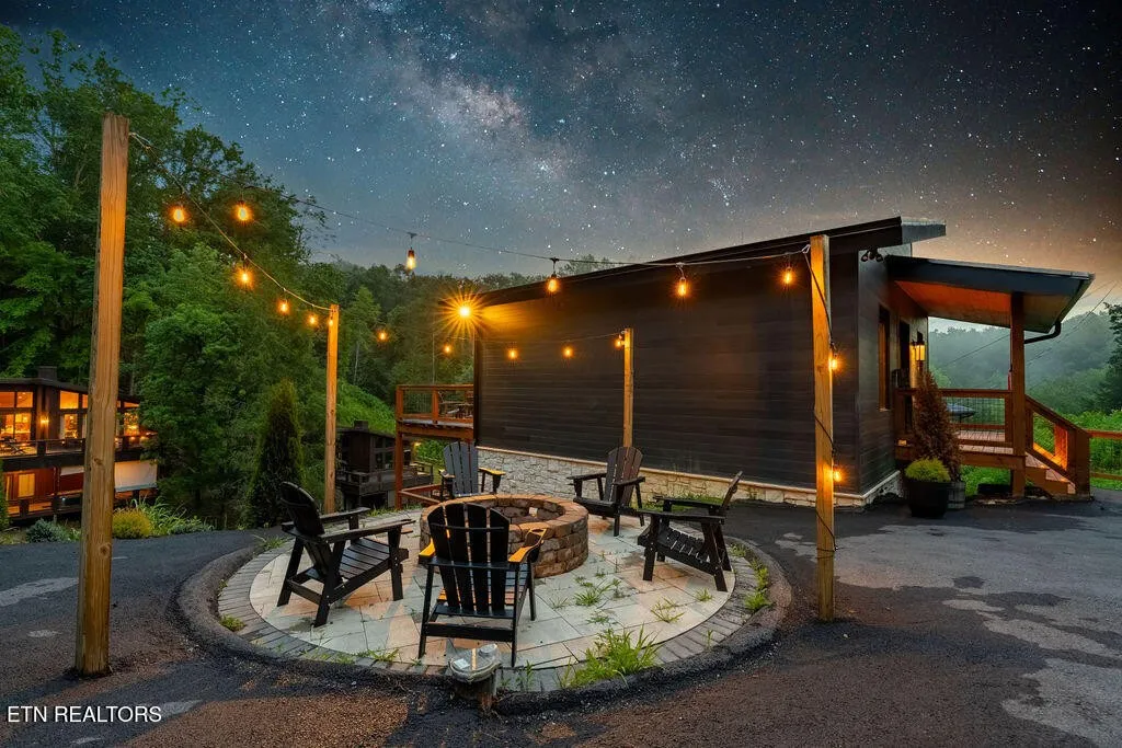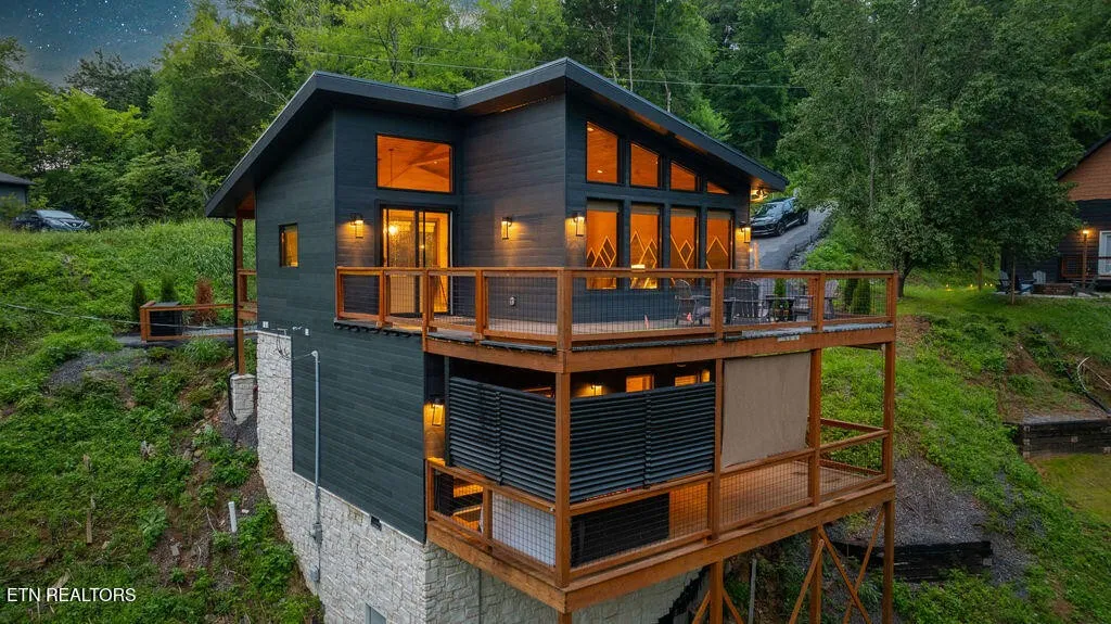 Experience the ultimate blend of modern durability and mountain charm with this turnkey investment opportunity in the heart of Lakewood Hills. Perfectly positioned just 9 minutes from Dollywood and a stone’s throw from the premier dining and attractions of Pigeon Forge, this beautifully refreshed 1,448-square-foot cabin sits on a private, 0.42-acre wooded lot. The exterior makes a striking first impression with elegant white stone paired with high-end MAC architectural metal siding–rated for 50 years–ensuring both style and longevity. Inside, the open-concept floor plan shines under soaring cathedral ceilings, featuring durable laminate and hardwood flooring, fresh paint, and a cozy electric fireplace. The versatile layout includes two spacious bedrooms and 2.5 baths, complemented by a finished lower level that serves as a perfect game room, bunk area, or secondary den. Outdoor living is a true highlight, boasting a brand-new hot tub, an elevated fire pit area, and refreshed landscaping designed for maximum relaxation. With a proven track record of approximately $78,000 in rental income for 2025, this property offers a rare combination of seclusion and accessibility, making it an ideal short-term rental or a sophisticated primary residence in the Great Smoky Mountains.
