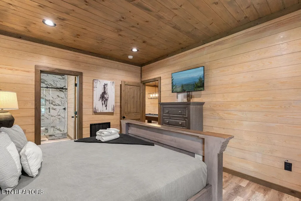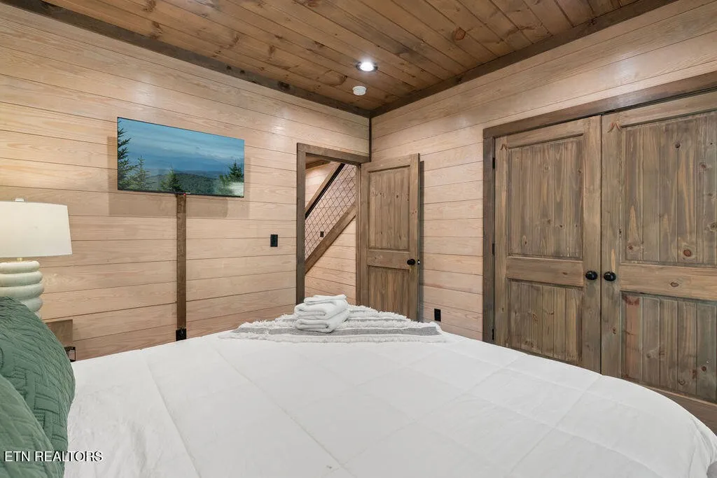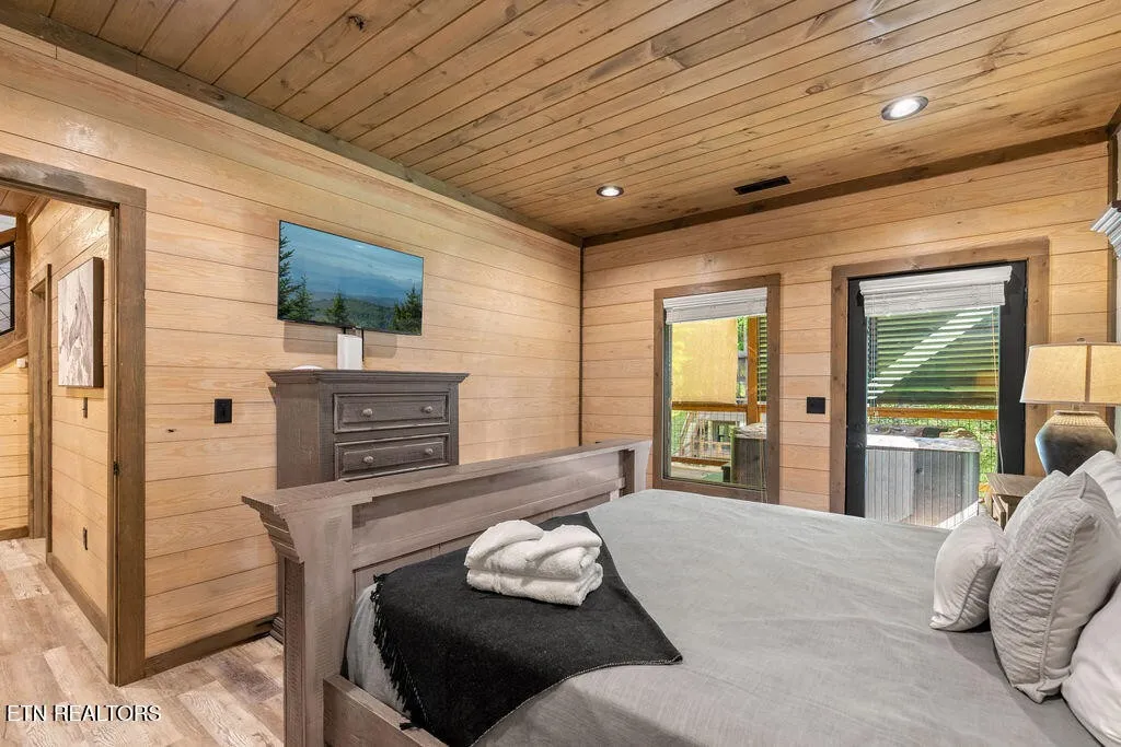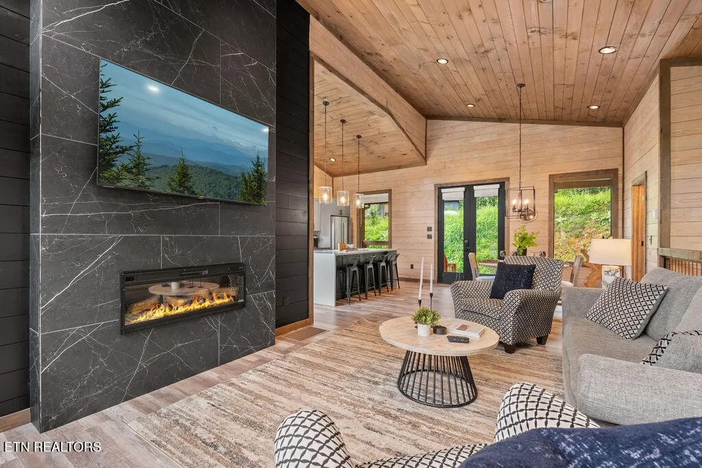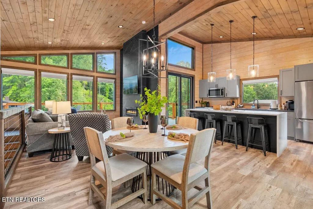 Experience the ultimate blend of modern durability and mountain charm with this turnkey investment opportunity in the heart of Lakewood Hills. Perfectly positioned just 9 minutes from Dollywood and a stone’s throw from the premier dining and attractions of Pigeon Forge, this beautifully refreshed 1,448-square-foot cabin sits on a private, 0.42-acre wooded lot. The exterior makes a striking first impression with elegant white stone paired with high-end MAC architectural metal siding–rated for 50 years–ensuring both style and longevity. Inside, the open-concept floor plan shines under soaring cathedral ceilings, featuring durable laminate and hardwood flooring, fresh paint, and a cozy electric fireplace. The versatile layout includes two spacious bedrooms and 2.5 baths, complemented by a finished lower level that serves as a perfect game room, bunk area, or secondary den. Outdoor living is a true highlight, boasting a brand-new hot tub, an elevated fire pit area, and refreshed landscaping designed for maximum relaxation. With a proven track record of approximately $78,000 in rental income for 2025, this property offers a rare combination of seclusion and accessibility, making it an ideal short-term rental or a sophisticated primary residence in the Great Smoky Mountains.