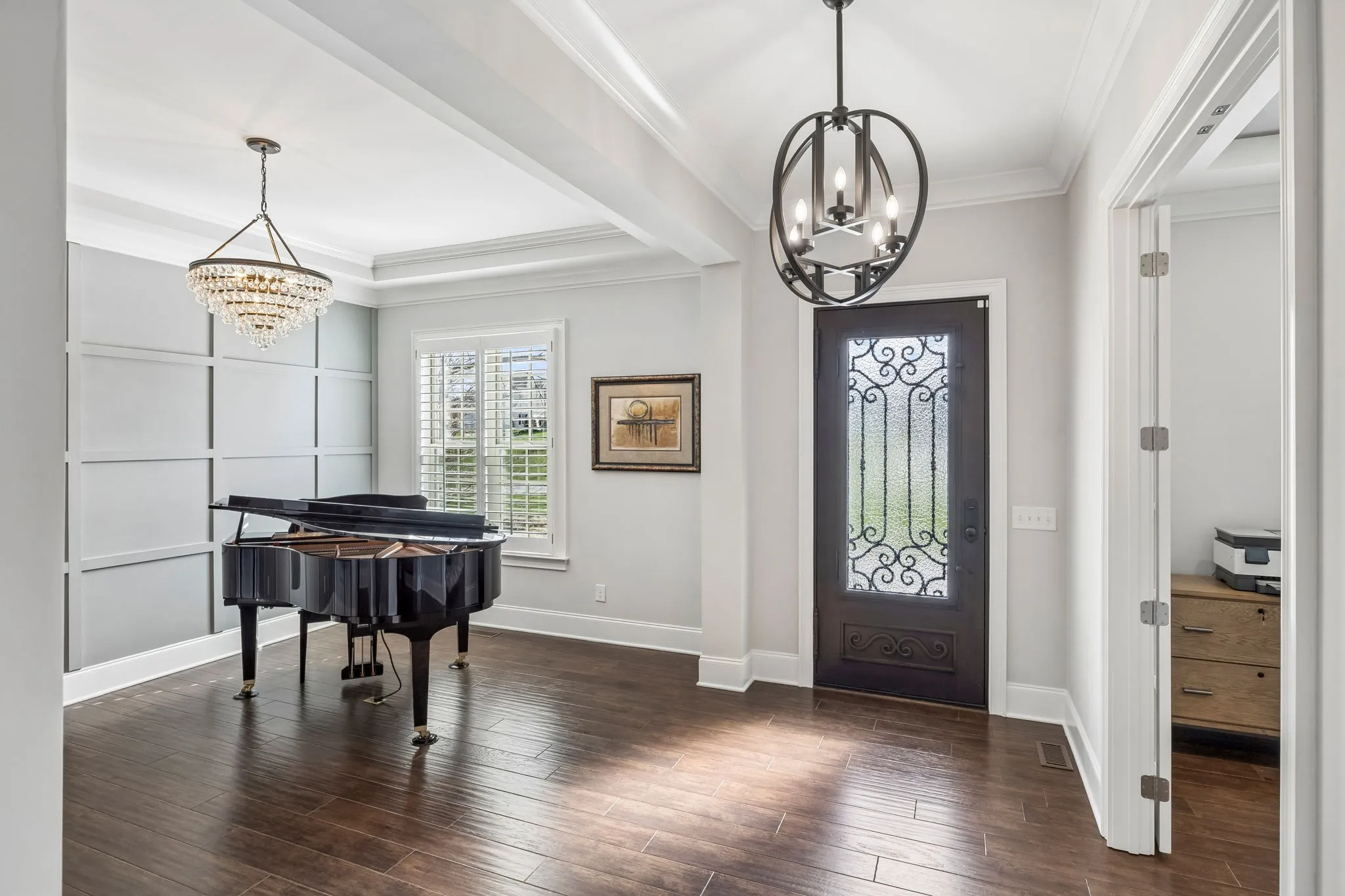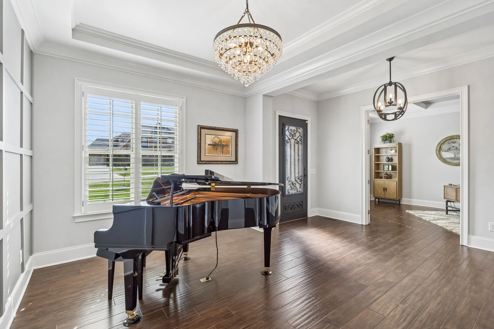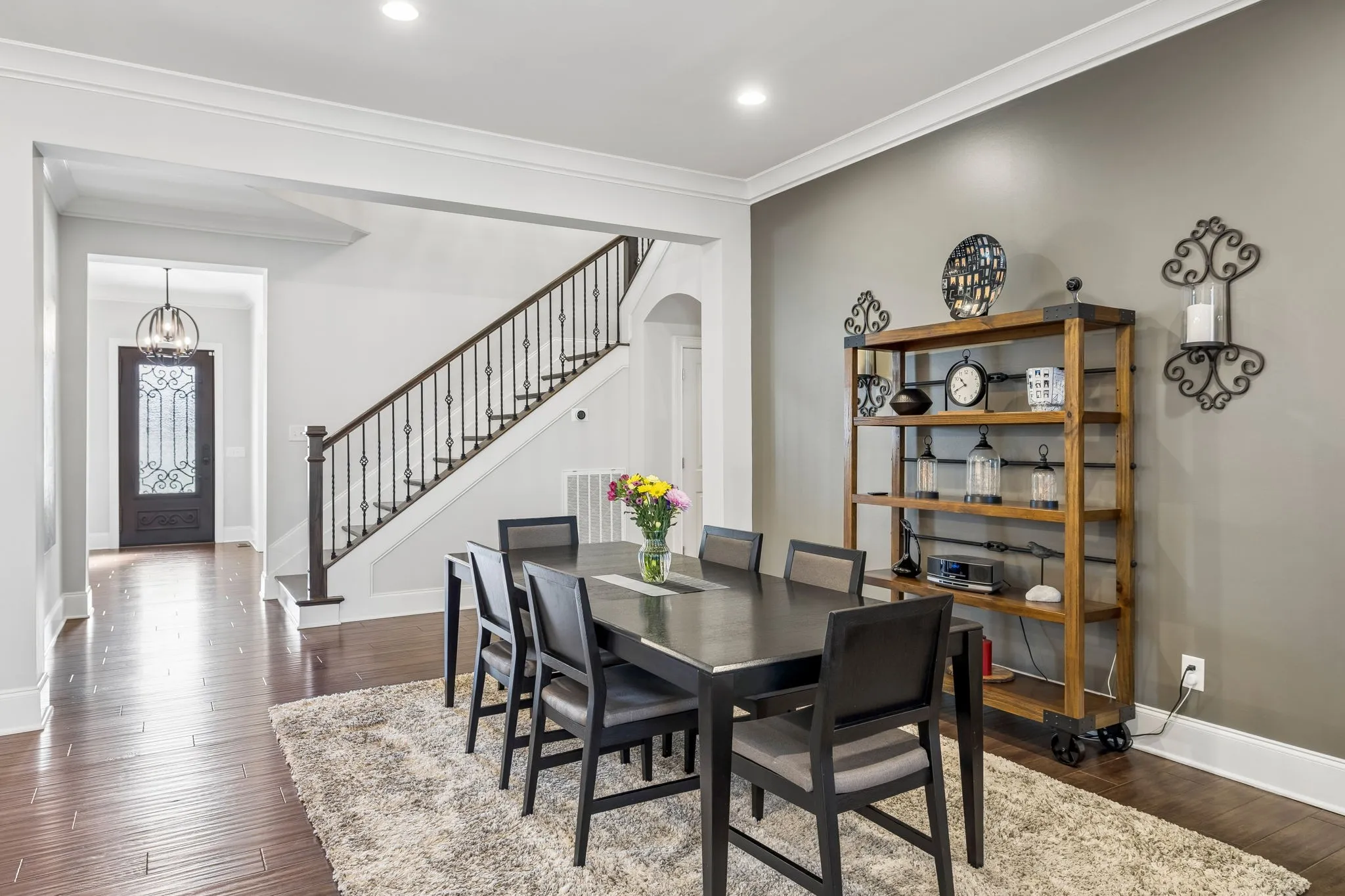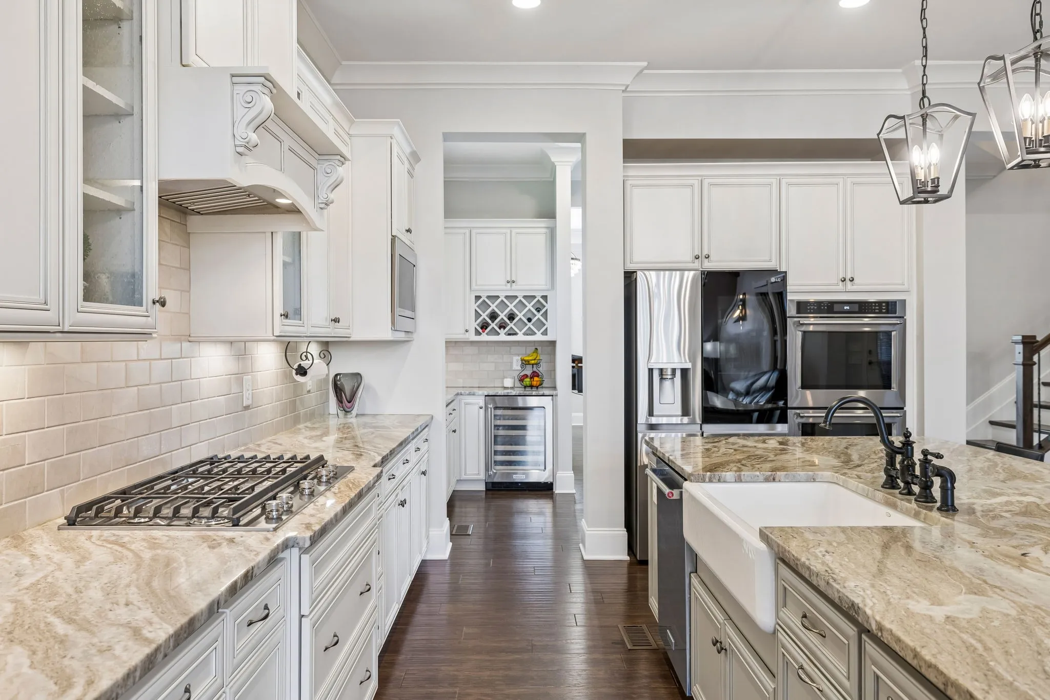 Stately home situated on over 1.5 private acres. Impeccably maintained with incredible upgrades and attention to detail. The home features open living spaces highlighted by a beamed vaulted ceiling in the den, a stone gas fireplace, and a wall of windows overlooking the pristine backyard. Beautiful hardwood flooring throughout the main living areas with custom plantation shutters on the front of the home and Duolite Silhouette blinds on the back. The gorgeous kitchen is well appointed with granite countertops, tile backsplash, double ovens, a farmhouse sink, and is complemented by a wonderful butler’s pantry with wine rack and beverage cooler. The spacious primary suite offers lots of natural light, an organization alcove or coffee bar, and an oversized soaking tub and separate shower in the primary bath. The incredible laundry room offers abundant cabinetry and space for a full-size refrigerator. Need an office? This home office features French doors and a beautiful coffered ceiling, providing an elegant work-from-home space. Upstairs, the large bonus room is complete with a wet bar and beverage cooler. New gas water heater recently installed. The outdoor living is just as impressive as the indoor. The covered back porch features a motorized retractable screen and opens to a large deck overlooking the beautifully maintained backyard. A new roof was installed in July, 2025, and there’s extensive landscaping with a 19-zoned irrigation system to keep landscaping looking lush. A 4-plank black fence was installed along the south side of the backyard. The garages have an epoxy flooring, utility sink, and custom cabinetry. There’s incredible storage space under the deck where all the lawn equipment can be stored. Large side yard with additional privacy provided by adjacent HOA-owned space, This exceptional property offers space, privacy, and high-end upgrades throughout. Please see the photo gallery for specific details noted under each photo.