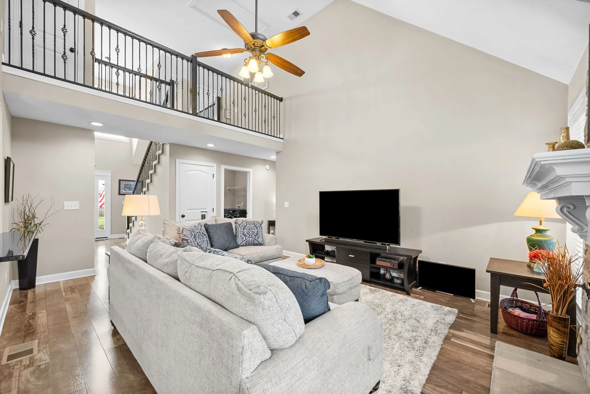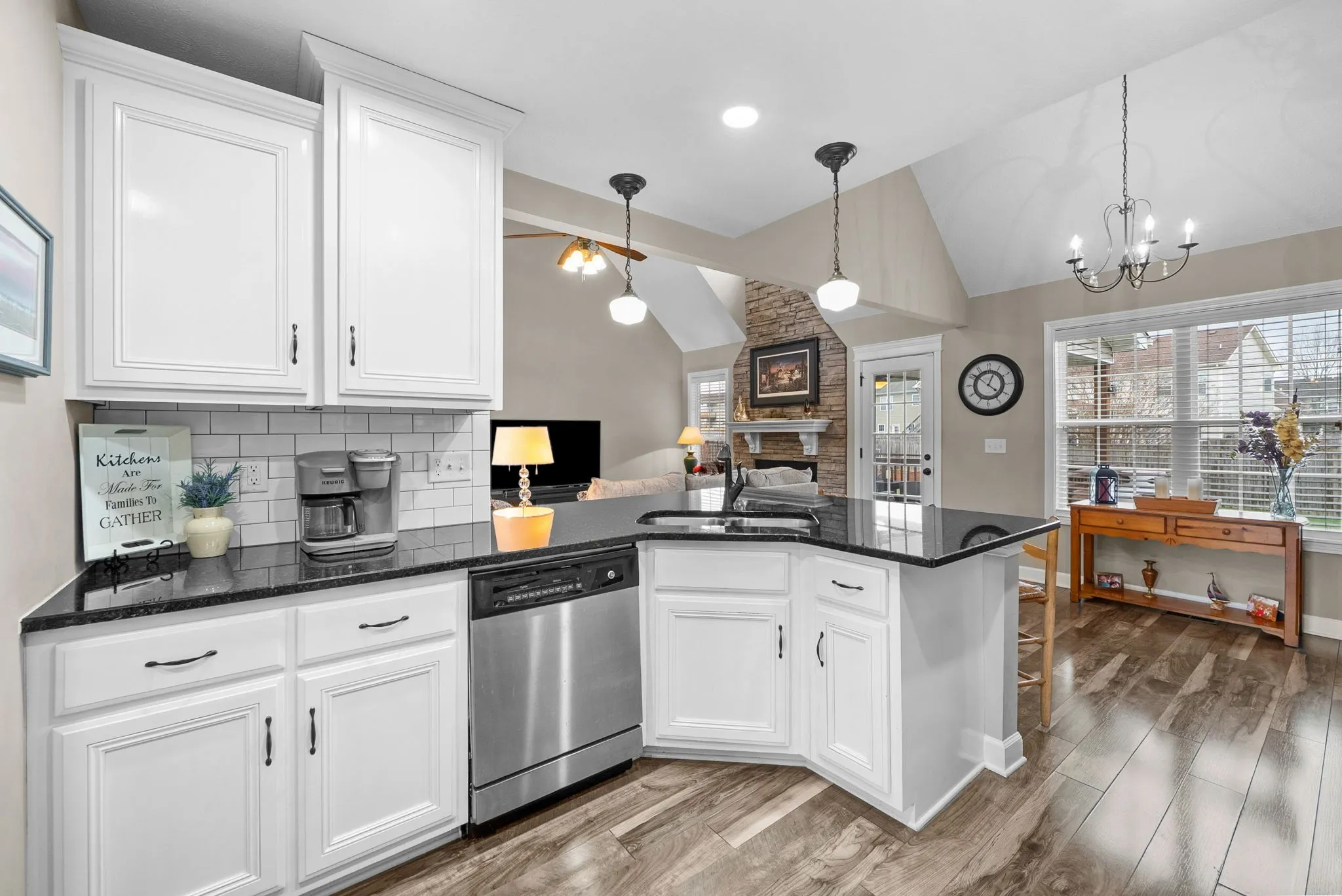 The floor to ceiling stone fireplace is the focal point of this Home and will catch your eye as soon as you enter.