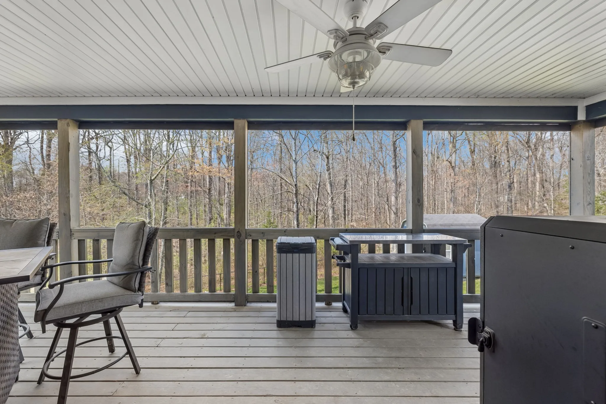 Inside, you’ll find stunning finished wood flooring and sleek, modern finishes throughout. The bright and spacious kitchen is designed for both everyday living and entertaining, featuring upgraded Samsung appliances, a farmhouse sink, ample cabinetry, and a large center island that offers plenty of prep and gathering space. Just off the kitchen, enjoy easy access to a covered and screened-in back deck, perfect for outdoor dining, morning coffee, or unwinding at the end of the day.