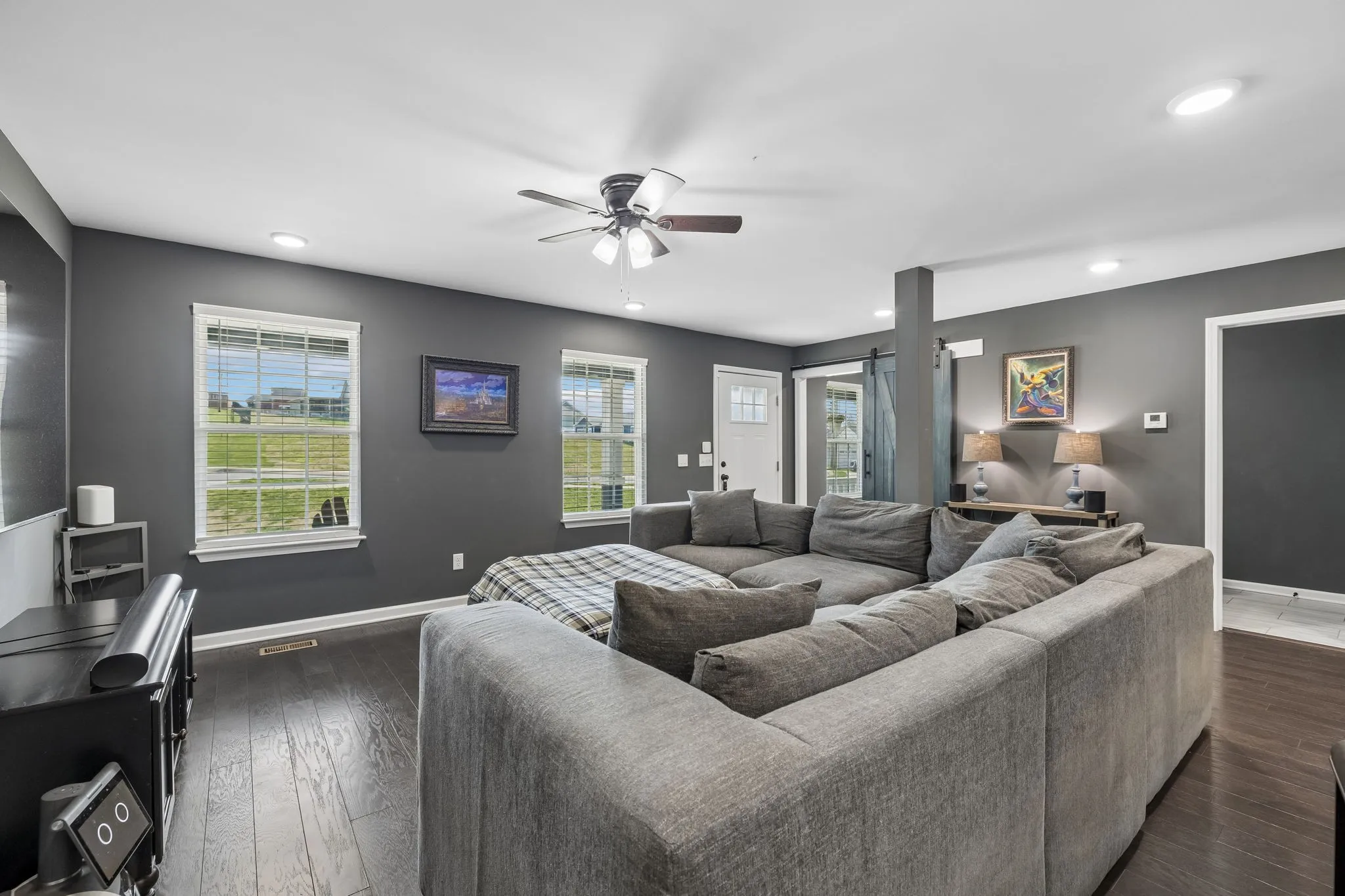 Priced under appraisal, welcome to this beautifully maintained 3-bedroom, 2.5-bath home that perfectly blends comfort, style, and modern convenience. From the moment you arrive, the charming covered front porch creates a warm and inviting first impression—an ideal place to relax and enjoy the peaceful surroundings. The exterior of the home is enhanced with permanent, programmable outdoor lighting, allowing you to customize colors for any holiday or occasion.