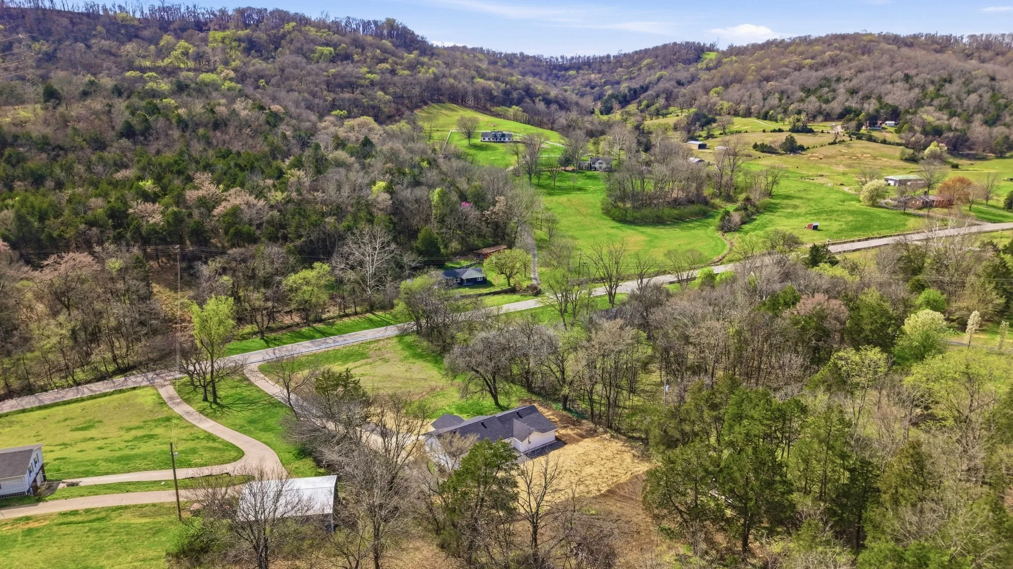 - Lot Features: Level, Private, Wooded, Rolling Slope