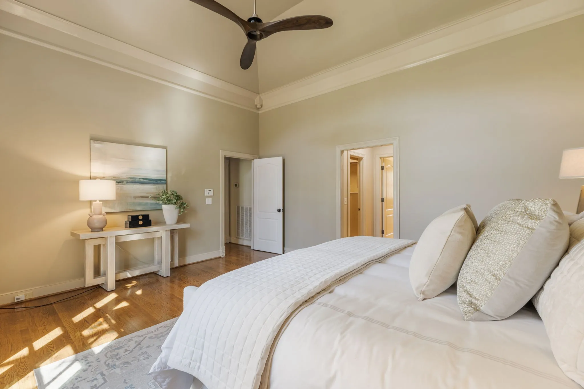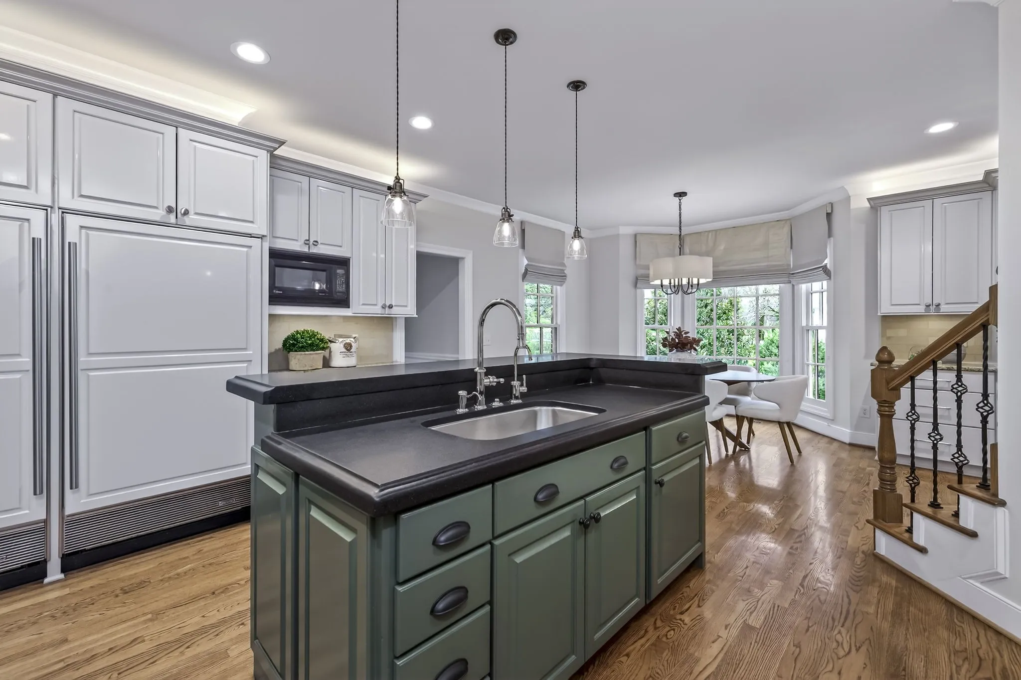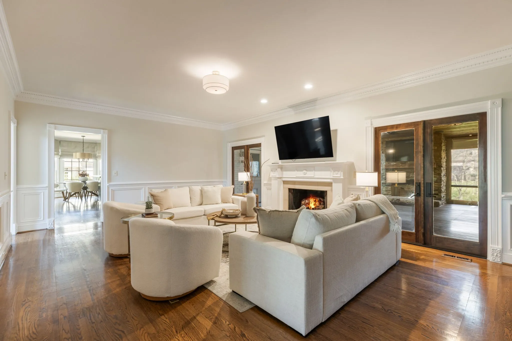 Upstairs, you’ll find three generously sized bedrooms, each with access to three full baths, along with a cozy reading nook or library space at the top of the stairs.