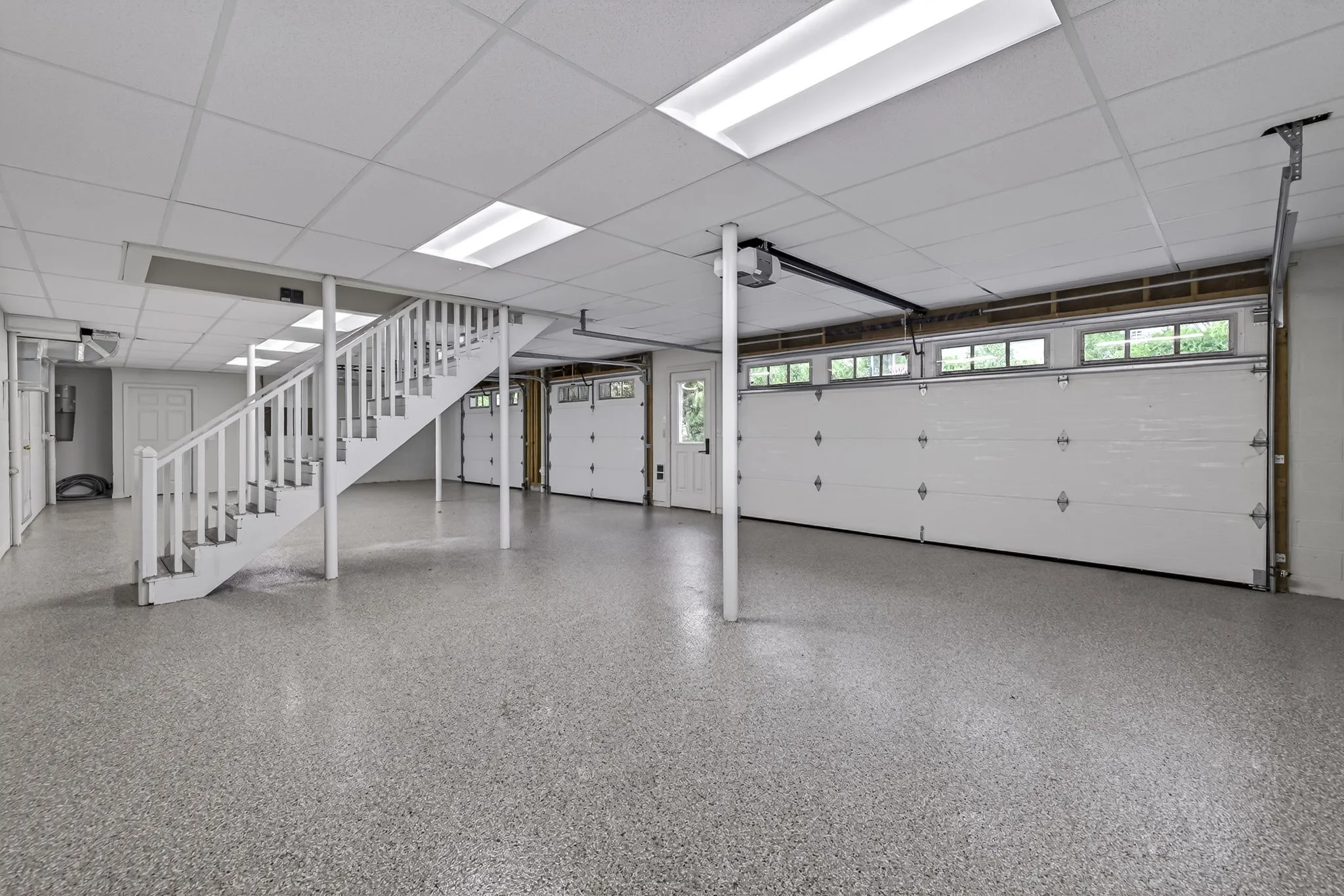 The partially finished basement offers incredible flexibility, currently used as a fitness room, along with an additional 792.95 square feet of unfinished space ready for storage or future expansion. A rare four-car garage with epoxy floors is also located on the basement level.