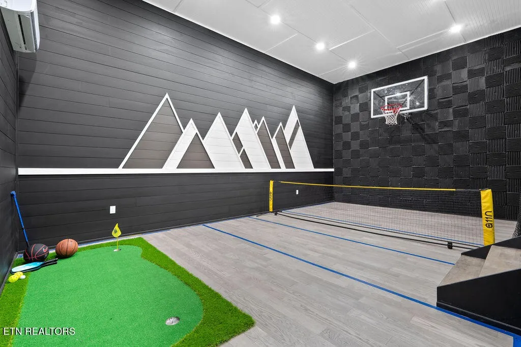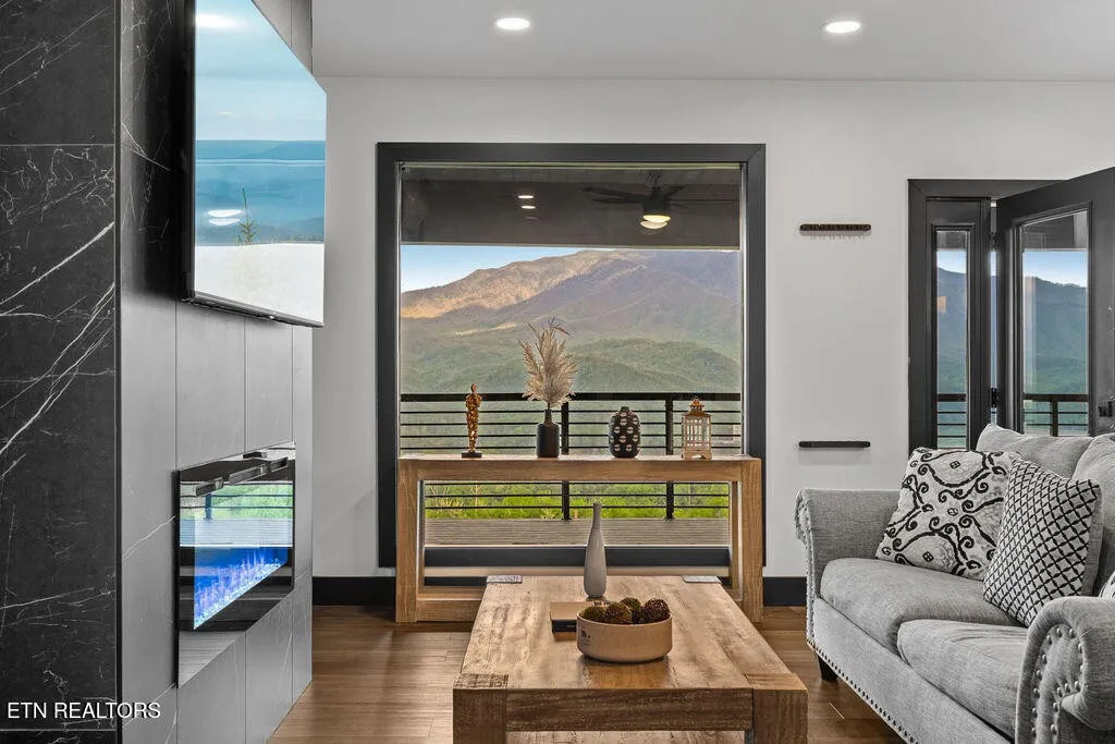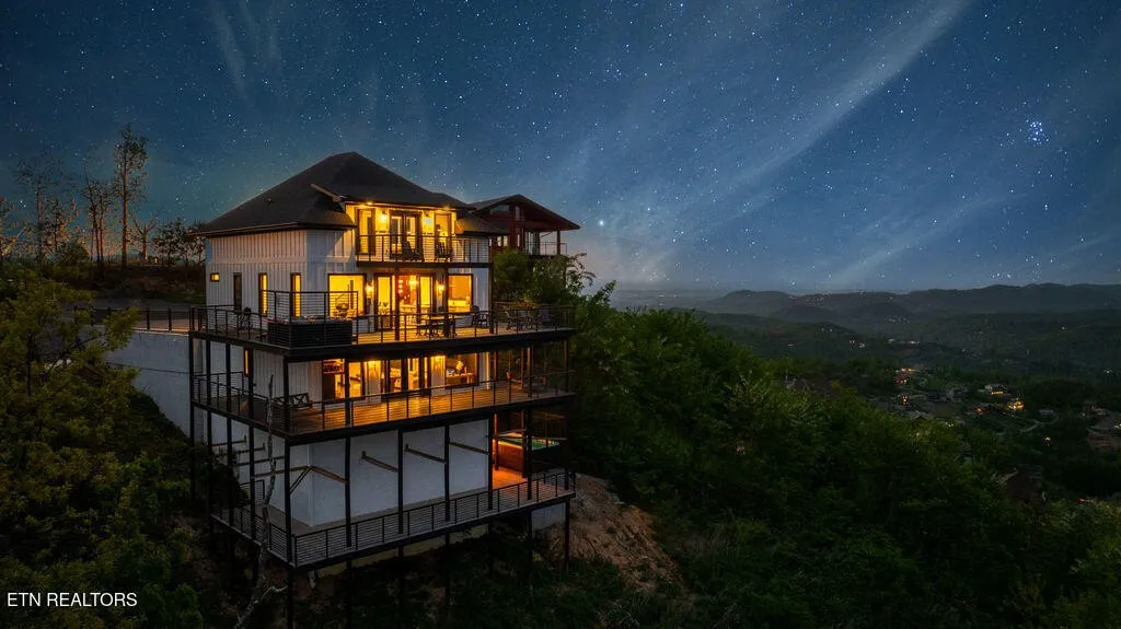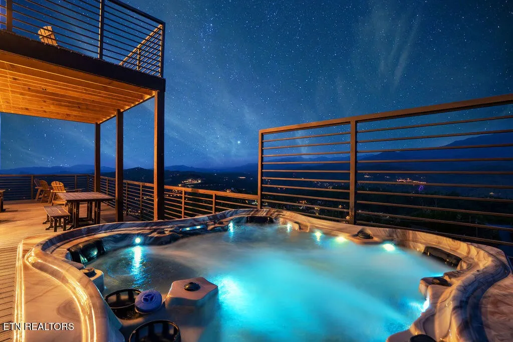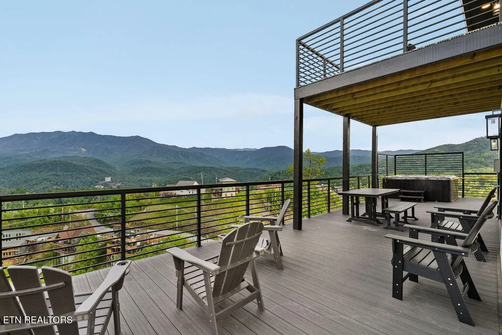 Experience the ultimate Smoky Mountain retreat in this exquisite luxury cabin, perched atop the highest peak in Gatlinburg’s most sought-after community, Chalet Village. This three-level masterpiece offers guaranteed, 180-degree unobstructed panoramic views of Mount LeConte and the downtown Gatlinburg skyline from over 3,000 square feet of expansive decking. The interior is a sanctuary of comfort and style, featuring floor-to-ceiling windows, high-end finishes, and a modern gourmet kitchen fully equipped with top-of-the-line appliances and granite countertops. Designed for both relaxation and recreation, this home boasts rare amenities including a private indoor mini-pickleball and basketball court, a dedicated gym, and a pool table. For aquatic relaxation, enjoy the lower-level swim spa or the extra-large hot tub on the main level. Each of the bedrooms serves as a private sanctuary with plush bedding and premium linens, including a master suite with a king-size bed and a luxurious granite-tiled walk-in shower. Accommodating up to 12 guests, the cabin is outfitted with high-speed Wi-Fi, multiple flat-screen TVs, and a cozy fireplace for cooler mountain evenings. Ideally located near world-class hiking trails, wildlife spotting, and scenic drives, this property provides the perfect setting for a high-performing investment, a romantic escape, or an unforgettable family gathering in the heart of Tennessee’s most iconic landscape.