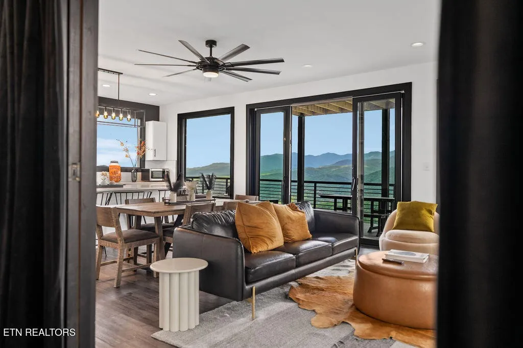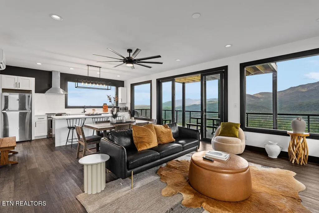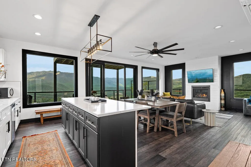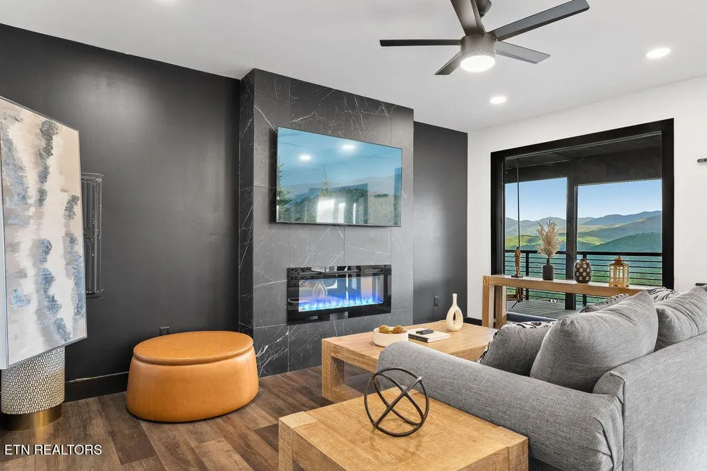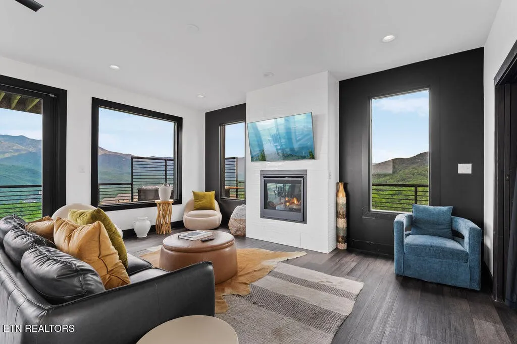 Experience the ultimate Smoky Mountain retreat in this exquisite luxury cabin, perched atop the highest peak in Gatlinburg’s most sought-after community, Chalet Village. This three-level masterpiece offers guaranteed, 180-degree unobstructed panoramic views of Mount LeConte and the downtown Gatlinburg skyline from over 3,000 square feet of expansive decking. The interior is a sanctuary of comfort and style, featuring floor-to-ceiling windows, high-end finishes, and a modern gourmet kitchen fully equipped with top-of-the-line appliances and granite countertops. Designed for both relaxation and recreation, this home boasts rare amenities including a private indoor mini-pickleball and basketball court, a dedicated gym, and a pool table. For aquatic relaxation, enjoy the lower-level swim spa or the extra-large hot tub on the main level. Each of the bedrooms serves as a private sanctuary with plush bedding and premium linens, including a master suite with a king-size bed and a luxurious granite-tiled walk-in shower. Accommodating up to 12 guests, the cabin is outfitted with high-speed Wi-Fi, multiple flat-screen TVs, and a cozy fireplace for cooler mountain evenings. Ideally located near world-class hiking trails, wildlife spotting, and scenic drives, this property provides the perfect setting for a high-performing investment, a romantic escape, or an unforgettable family gathering in the heart of Tennessee’s most iconic landscape.