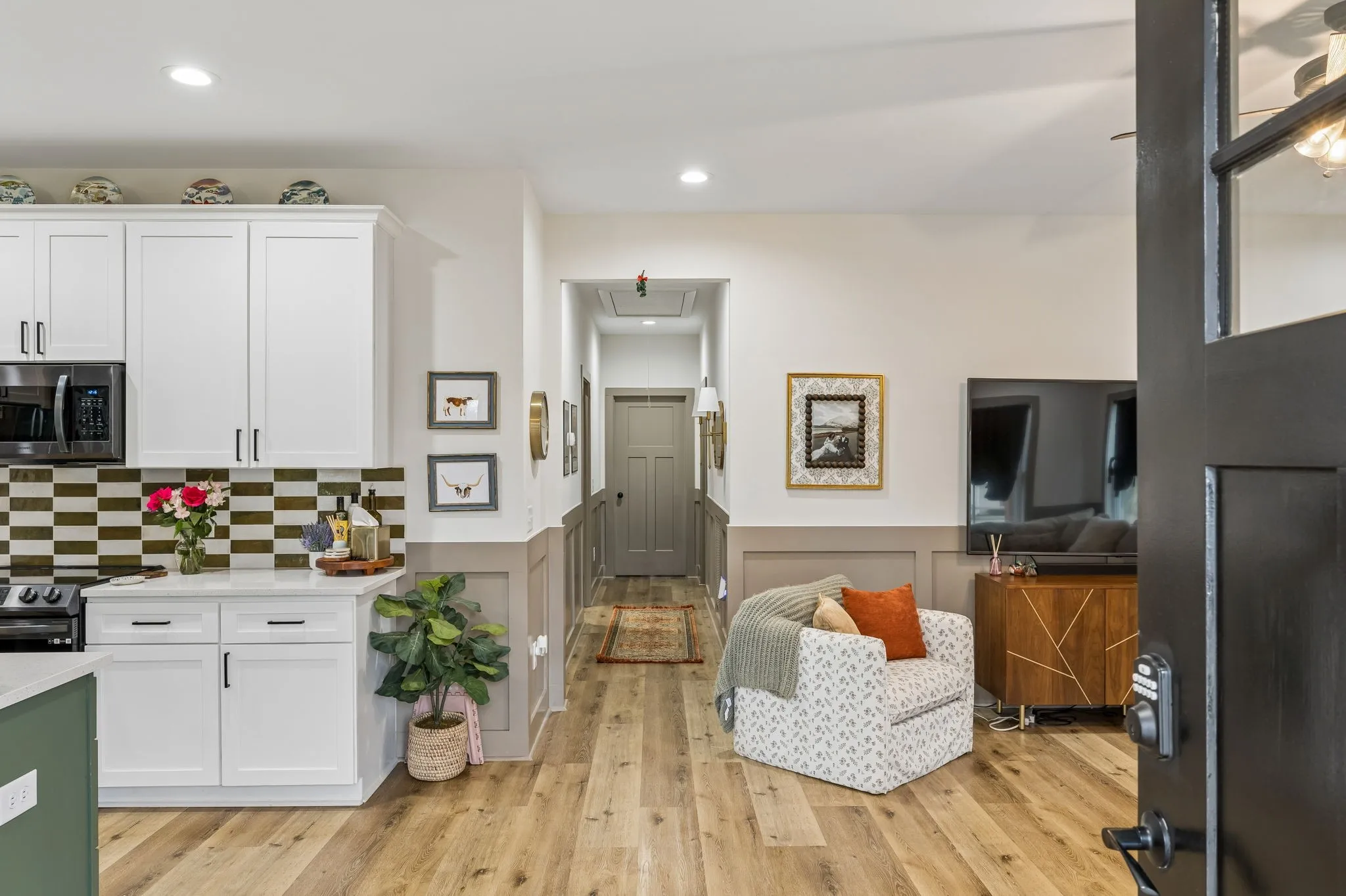 Adorable like-new home in a prime North Lewisburg location! This one-level home offers an open floor plan with a spacious living room, kitchen, and dining area—perfect for everyday living and entertaining. Kitchen appliances remain, and beautiful quartz countertops add a modern touch. The office/study provides flexible space for work or hobbies. The primary suite features large closets and a full bath with double vanity sinks, quartz countertops and a generous linen closet. Hardwood flooring runs throughout the home. Enjoy the convenience of a separate laundry/mudroom. No HOA! The garage / shop area is 25×25 with a 10×25 lean-to. perfect for extra storage, hobbies, or workspace needs.