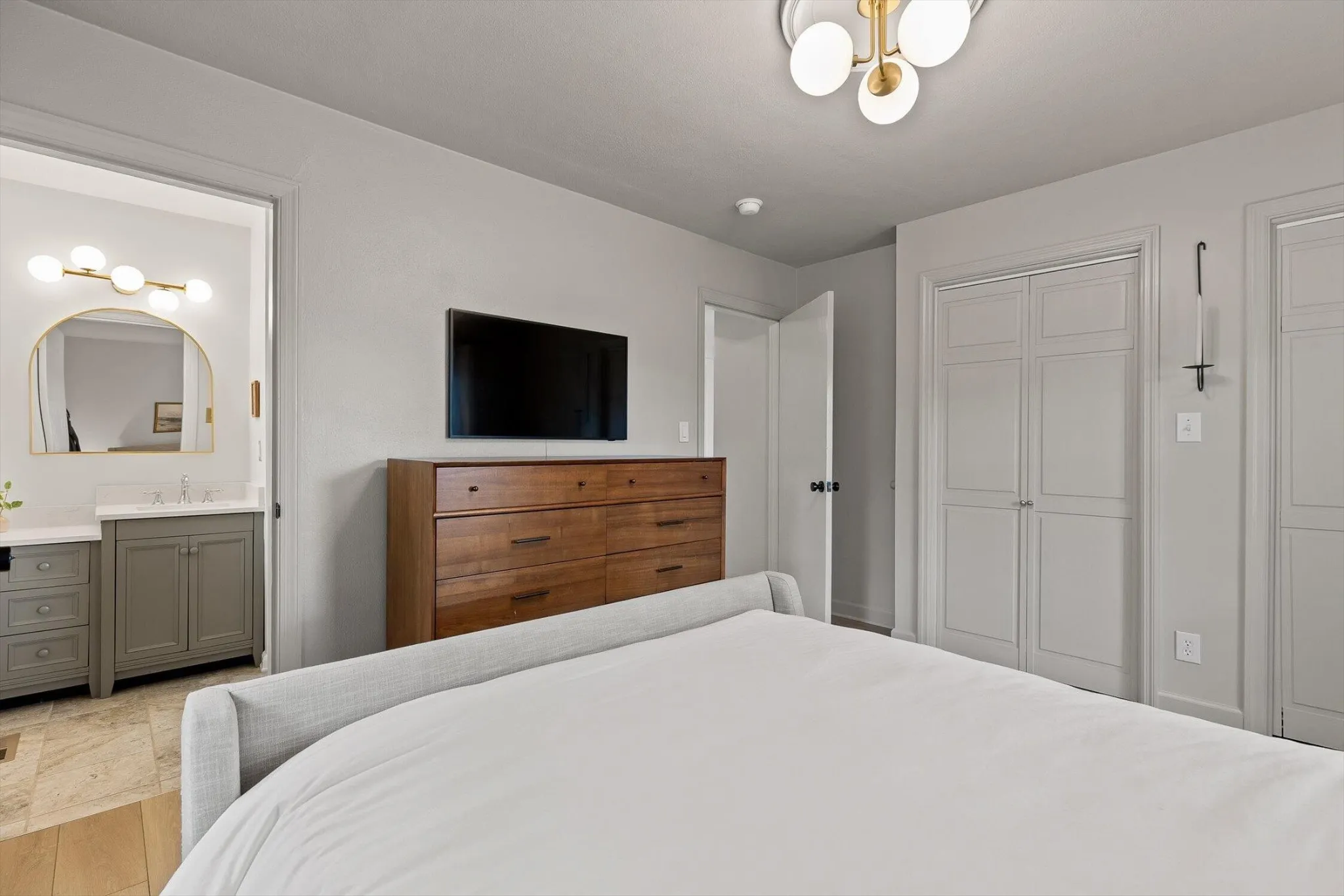 The Vintage-Chic Kitchen retains its original 1950s personality, and offers direct access to a private side patio–the ultimate spot for your morning coffee or relaxing evenings outside.