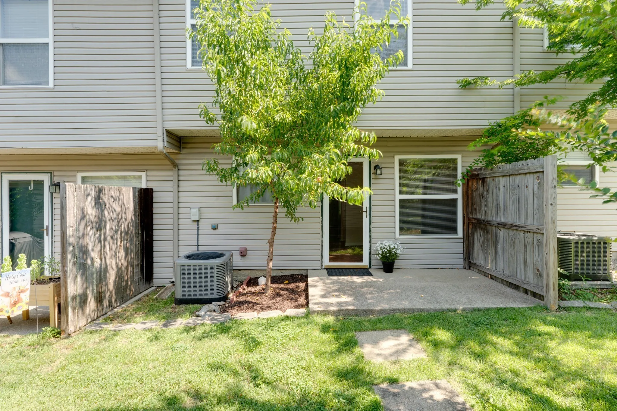 Enjoy a private patio and a detached two-car garage with additional storage space.