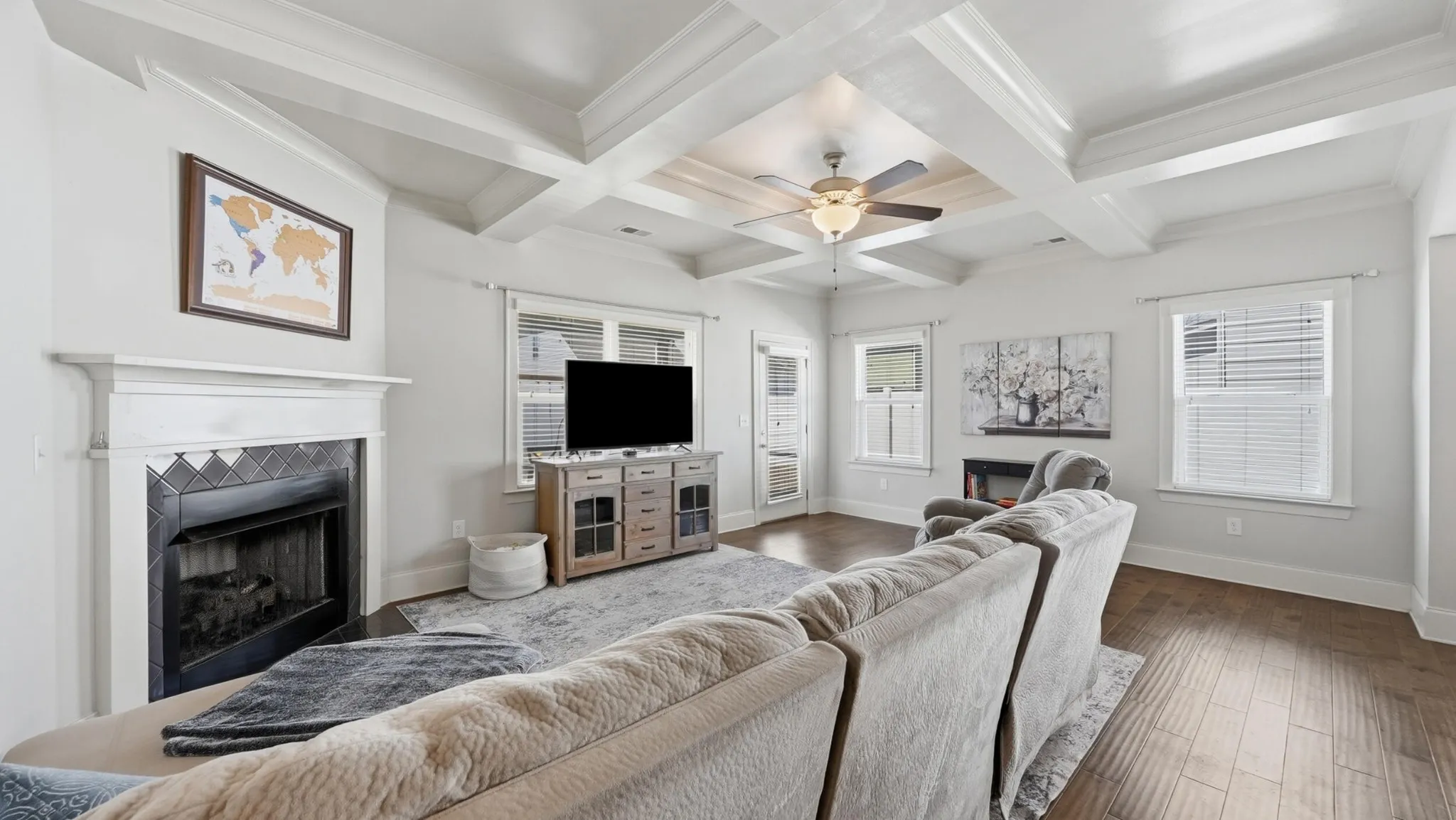 Welcome to a home that was personally designed with you and your family in mind! With over 3400 square feet, this 4 bedroom, 3.5 bath home offers the perfect balance of open gathering spaces and private retreats. From the moment you walk in, you’ll notice how naturally everything flows. The main living area is bright and inviting with tons of natural light and a cozy gas fireplace. The kitchen is truly the heart of the home featuring an oversized island, stainless steel appliances, and plenty of space to gather. Whether it’s busy mornings, homework at the counter, or hosting friends on the weekend, this space was made to be lived in. There’s a convenient drop zone that helps keep shoes and daily life organized, while the private office with brand new soundproof doors at the front of the house creates the ideal work from home setup. The main level primary suite offers a quiet escape at the end of the day, complete with his and her closets and a spacious bath with double vanities, a soaking tub and separate shower. Upstairs, there is room for everyone to spread out. A cozy loft with built-in shelves and cabinets creates the perfect reading nook, while three spacious bedrooms and two full bathrooms, each with double vanities, make mornings easier for a busy household. The large media room with built-in surround sound is ready for movie nights, game days, or a dedicated play space. Brand new carpet upstairs, on the stair runner, and in the primary bedroom adds a fresh feel throughout. Step outside to a screened-in patio and a newly fenced backyard, perfect for letting kids and pets play freely or enjoying quiet evenings at home. Located in a welcoming community with no HOA, this home also features a rare three car garage, giving you the space and flexibility you need both inside and out. If you’ve been looking for a home where everyday life feels a little easier and a lot more enjoyable, this one is worth seeing.