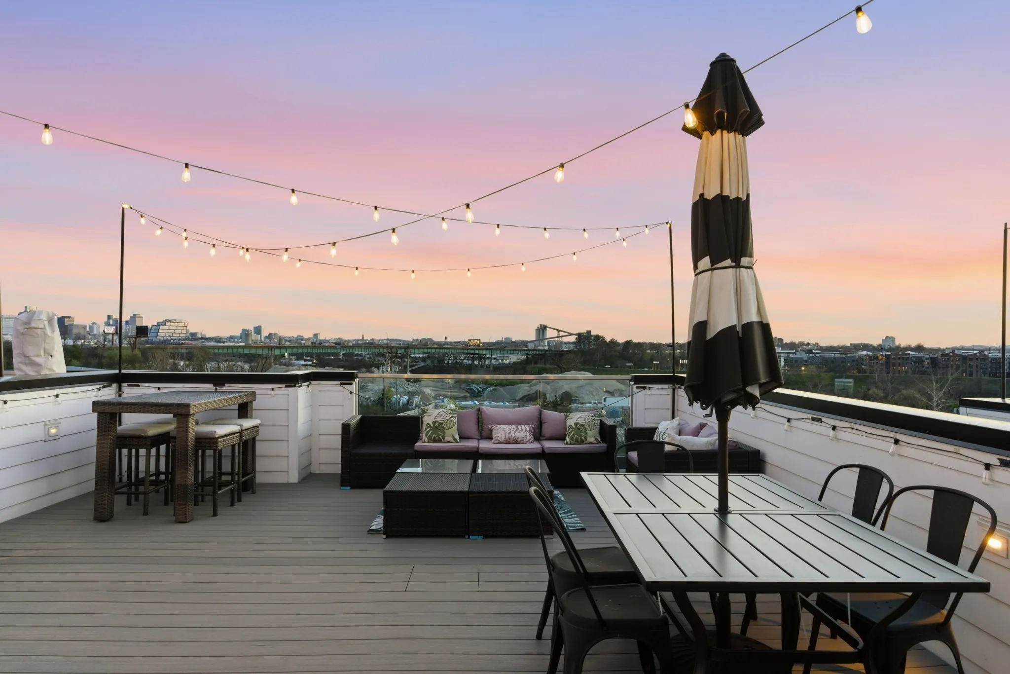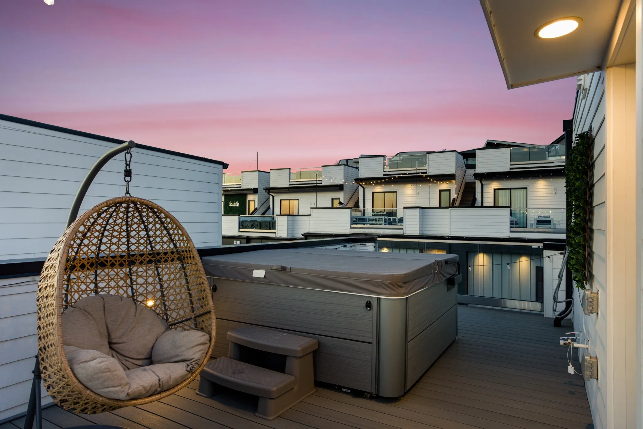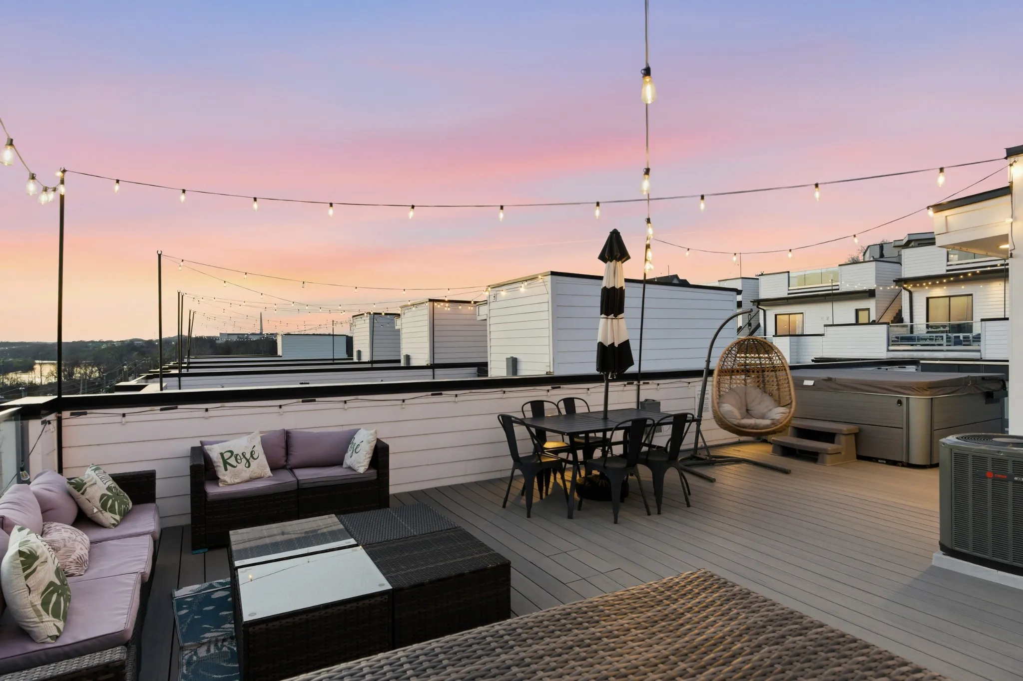 The expansive rooftop deck featuring stunning skyline views and a private jacuzzi is an unforgettable amenity that will keep guests coming back and elevate your rental appeal. Inside, the modern kitchen boasts quartz countertops, a spacious breakfast bar, stainless steel appliances, and stylish lighting. Each bedroom includes its own private bath, offering comfort and privacy for every guest, while the sunlit owner’s suite features a generous walk-in closet and a beautifully appointed primary bath with a custom walk-in shower.
