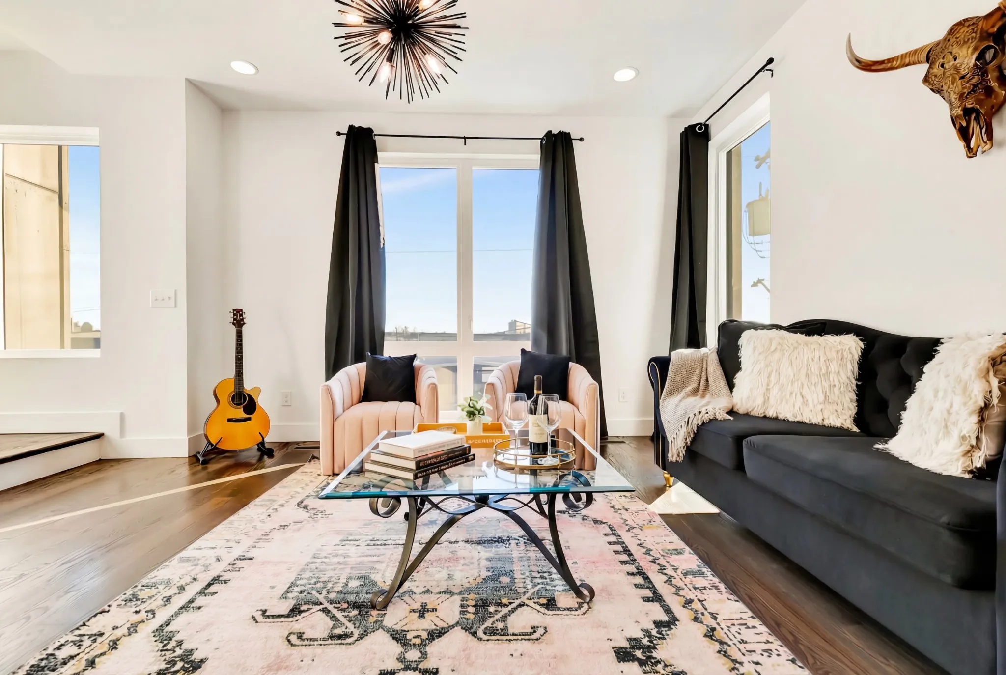Fully furnished and truly turnkey, this end-unit residence is designed to maximize both comfort and income potential for Airbnb or VRBO rentals. With abundant natural light, soaring ceilings, and hardwood floors throughout the main living areas, the open-concept layout creates an inviting space that’s ideal for entertaining guests or hosting short-term renters.