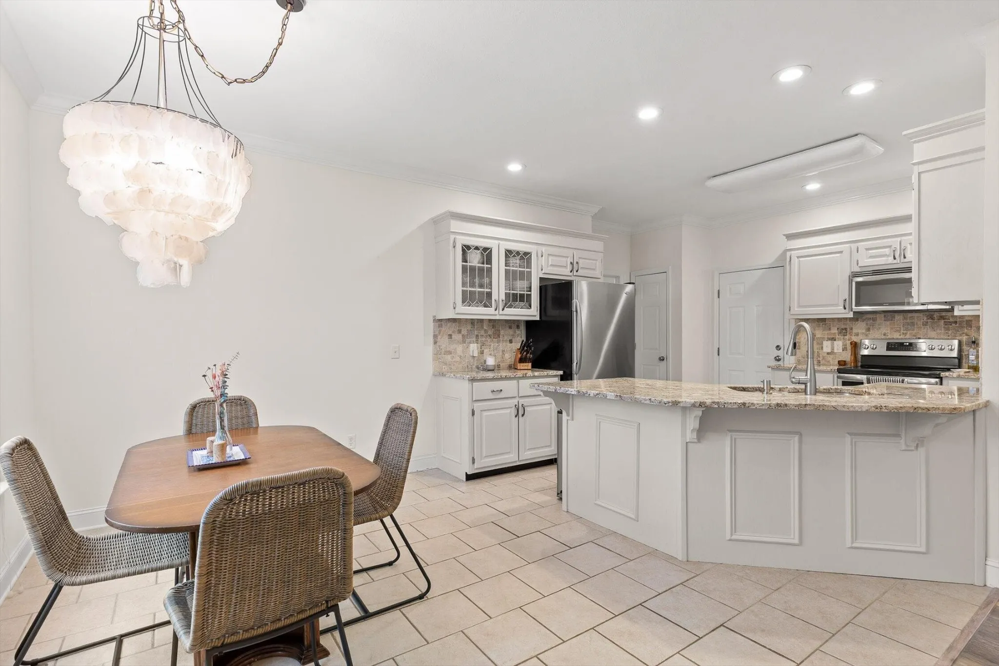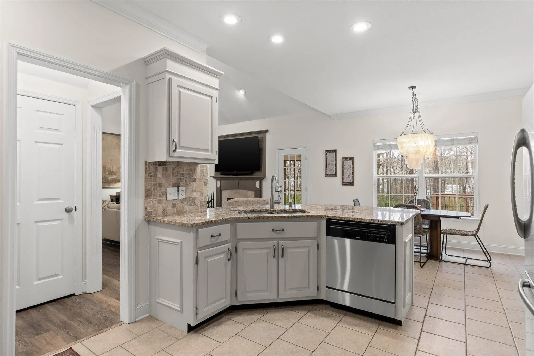 The updated kitchen is perfect size for hosting friends or enjoying family gatherings. The granite countertops, ample cabinetry, and a layout designed for effortless entertaining. *Refrigerator INCLUDED.