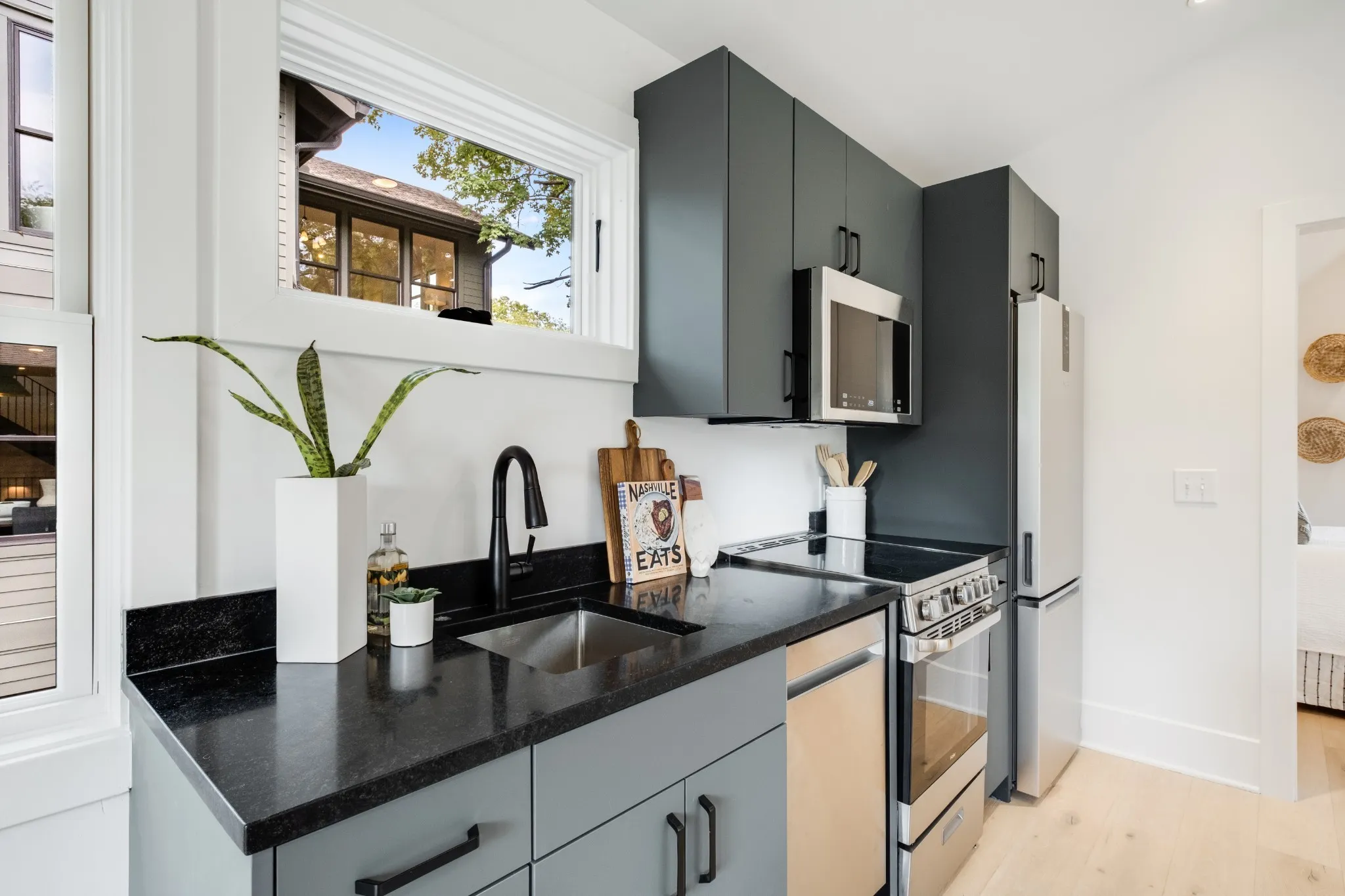 Coming Soon – Mid April. Live in the Heart of Nashville’s 12th South Neighborhood. *New 2022 Build* Stunning Custom Historical Build and Large Addition + Detached Apartment / Garage (DADU) of this Modern Craftsman style home carefully built. Located less than 1 block from Sevier Park & neighborhood restaurants and shopping. Main home is flooded with natural light and offers multiple living areas, office, 5 bedrooms, 5.5 baths, working pantry, and custom selections throughout such as walnut lined cabinets, 7″ wood baseboards, 7.5″ white oak hardwoods, and a metal designed staircase. The Detached 2 car garage offers full studio apartment w/ kitchenette and bath (rental income potential) and separate laundry. Fenced backyard.