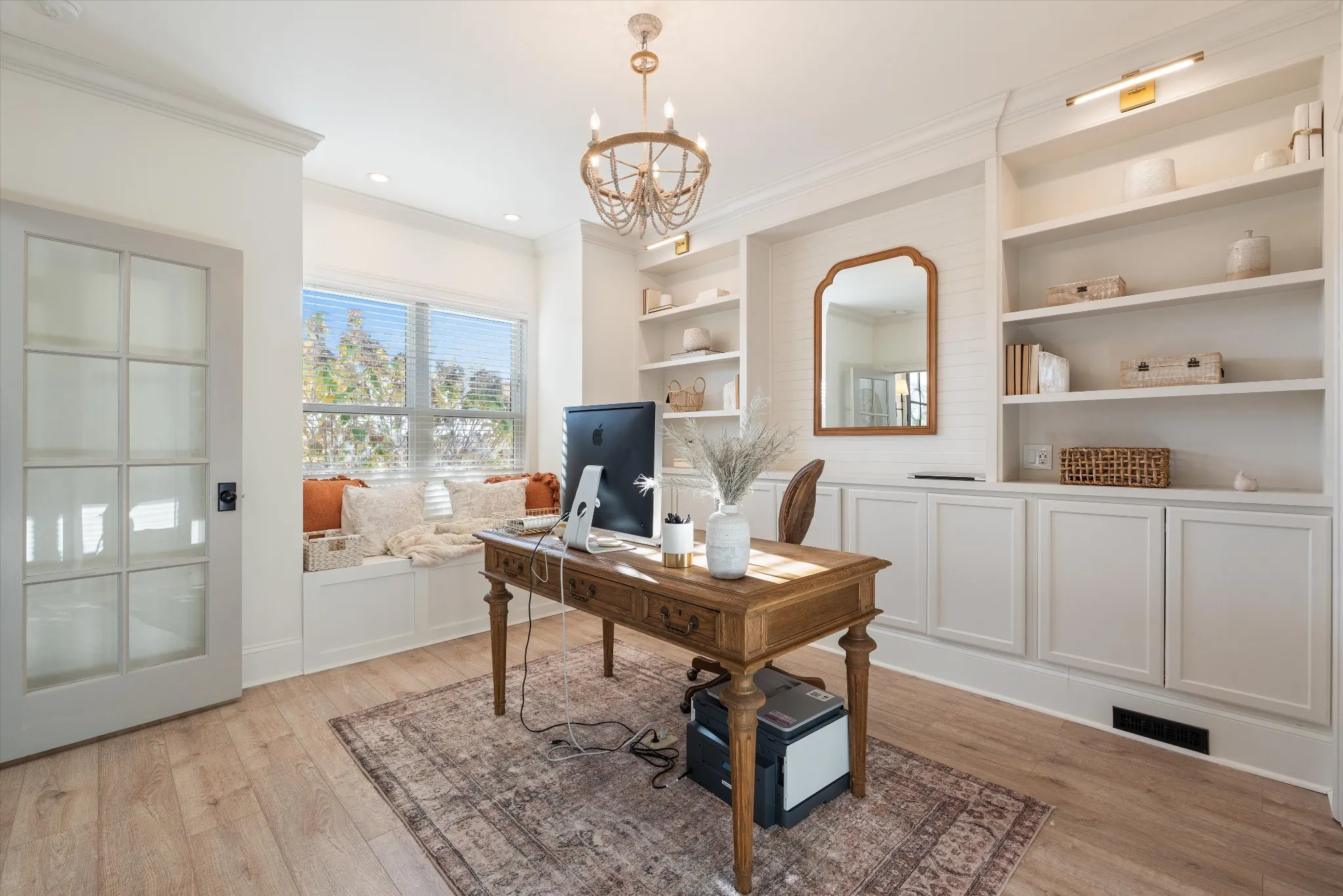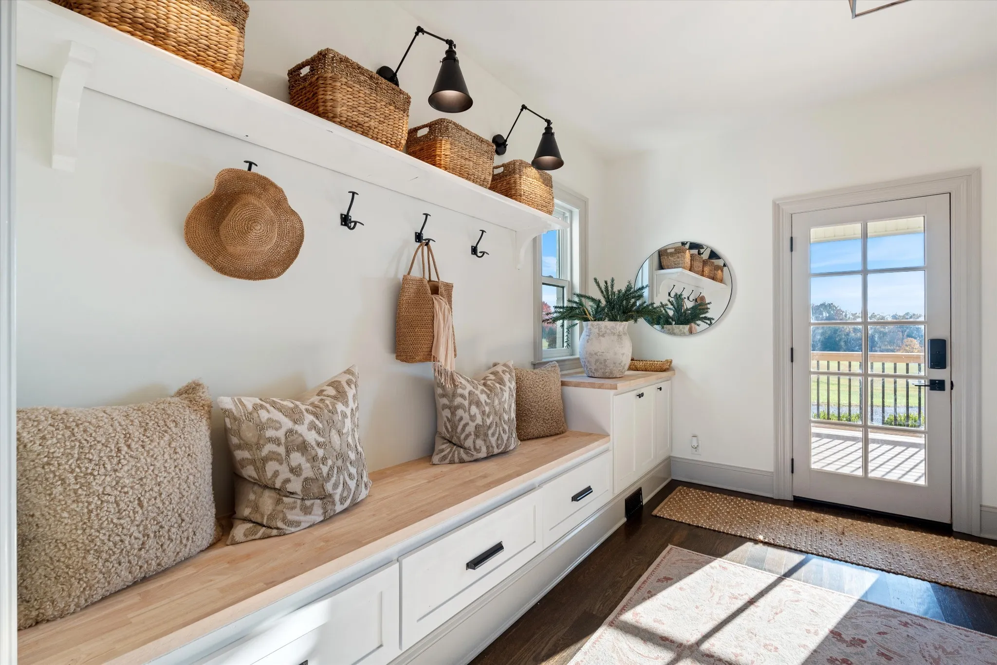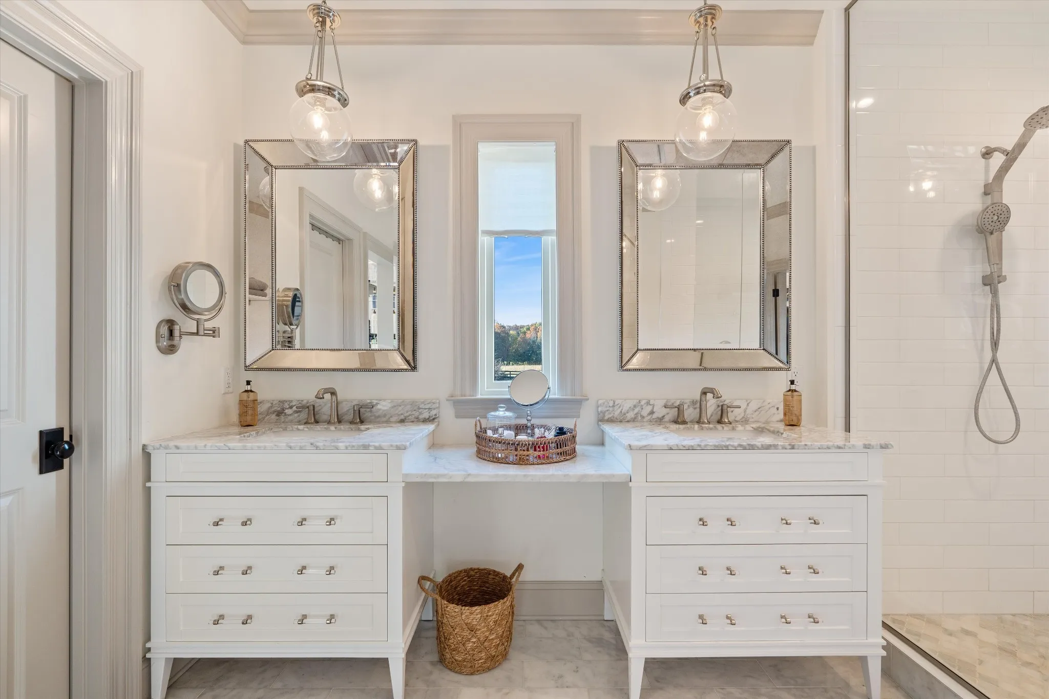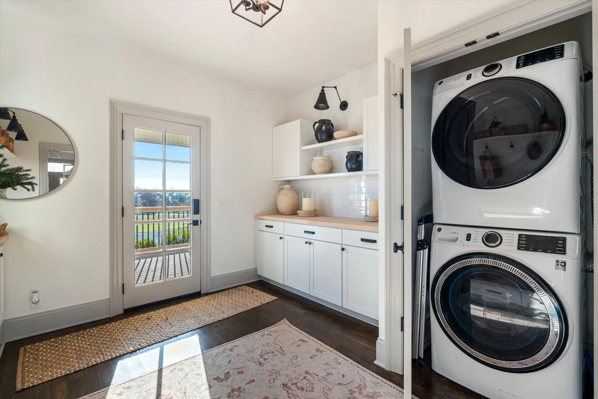 Discover a sophisticated retreat in the heart of Williamson County. This custom estate rests on over 8 acres of rolling landscape. Positioned perfectly for privacy and convenience, the property sits moments from I-40 and I-840 corridors, less than 10 mins from the local Williamson County Schools. Guests are greeted by a grand entrance featuring double doors and a soaring foyer with 20 ft ceilings. Expansive Anderson windows invite an abundance of natural light. The main living room centers around a marble-tile fireplace and transitions into a kitchen built for culinary enthusiasts. This gourmet space is equipped with oversized island, prep sink, 6 burner gas range with griddle, double ovens, and heat lamps. Modern conveniences include pot filler, built-in refrigerator, dual-tap kegerator, and walk-in pantry featuring ELFA organization. A dedicated coffee bar with beverage fridge and custom cabinetry ensure every detail is accounted for. The main floor also hosts a functional mudroom, home office with wall-to-wall shelving, and full bathroom. In the primary suite, a private fireplace and custom built-ins create a peaceful sanctuary, complemented by a spa-like bathroom with double vanities, makeup station, and massive walk-in shower. Upstairs, a versatile loft provides built-in desk space alongside 3 additional bedrooms. The designer bathroom stands out with triple-faucet Kohler cast-iron sink and automated lighting.