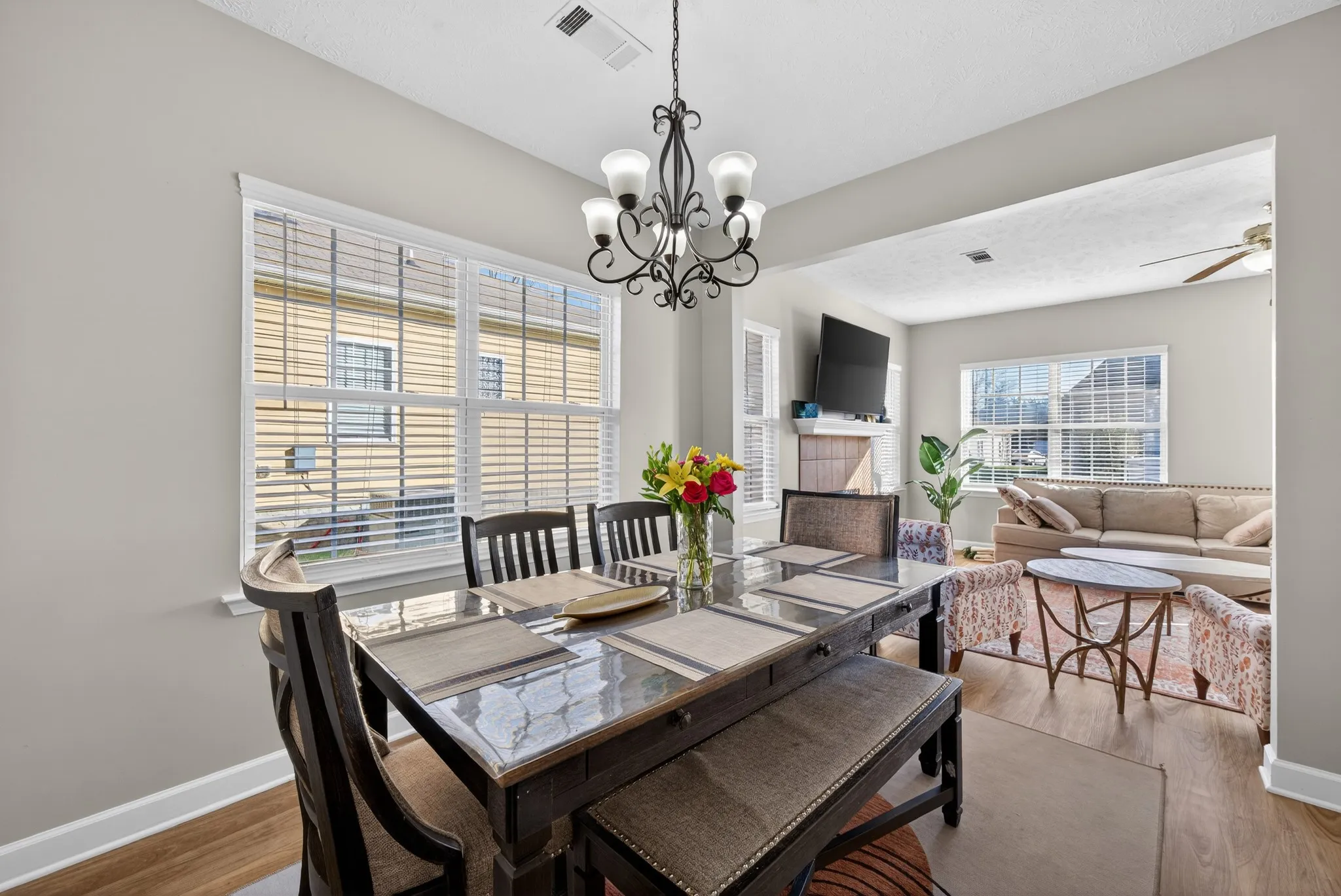 This 3-bedroom, 2.5-bath home offers a versatile and functional layout perfect for today’s lifestyle. The main level features a flexible room ideal for a home office or potential additional bedroom, along with a spacious living area highlighted by an electric fireplace for a cozy, modern touch.