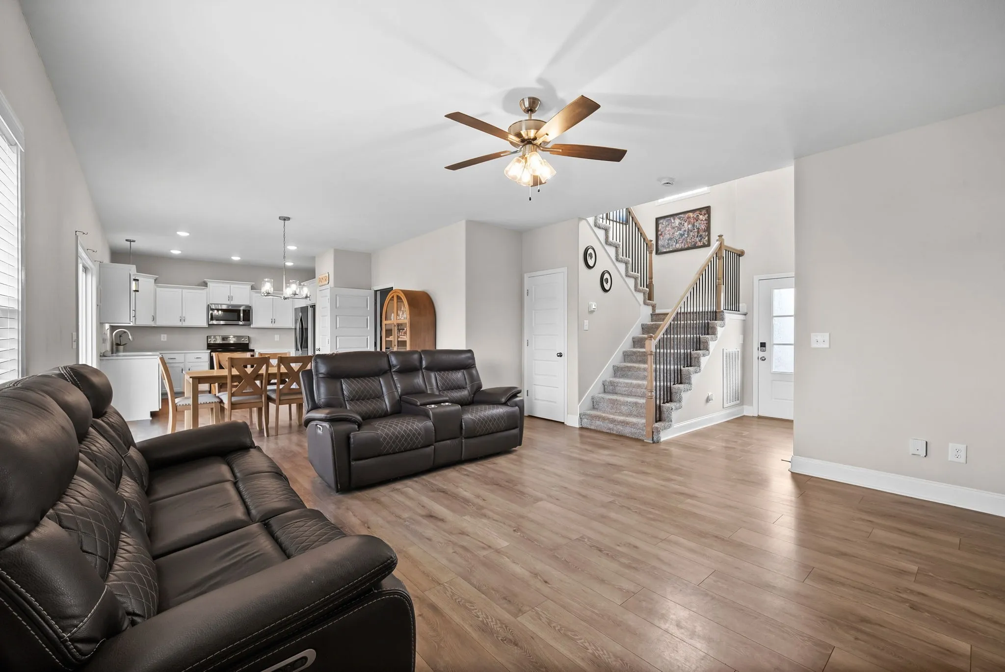 Warm, inviting, and effortlessly open 326 Galway Dr just feels like home. This 3 bedroom, 2.5 bath home with 1,815 square feet offers the perfect blend of comfort, style, and everyday functionality. Step inside to an open-concept layout filled with natural light, creating a space that feels clean, bright, and easy to live in. The living room is anchored by a gas fireplace with shiplap detail, adding warmth and character while giving you the perfect place to gather or unwind. The kitchen flows seamlessly into the dining and living areas, making both everyday living and entertaining feel effortless. Upstairs, you’ll find all three bedrooms, each with its own walk-in closet, along with a conveniently located laundry room. The primary suite offers the space and privacy you’ve been looking for with its own ensuite bath. Step outside and enjoy multiple outdoor spaces a welcoming covered front porch, plus a covered back deck and additional patio overlooking the large privacy fenced backyard. With a neighborhood pond behind the home, you get added privacy and a peaceful setting you’ll appreciate year-round. Conveniently located with easy access to 101st Parkway, Fort Campbell, shopping, dining, and parks, this home puts you right in the middle of everything while still offering that comfortable, tucked-away feel. What are you waiting for? Come see the rest for yourself today.