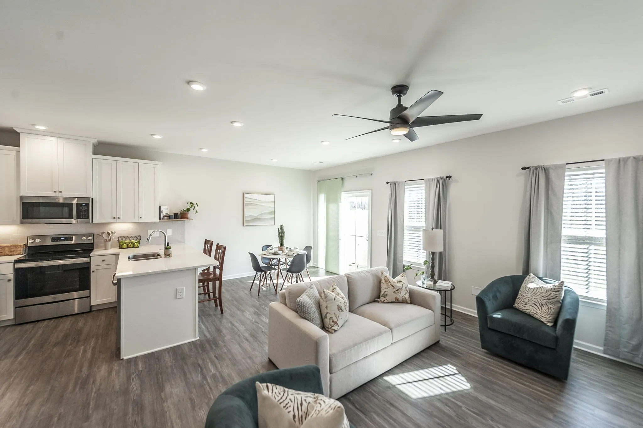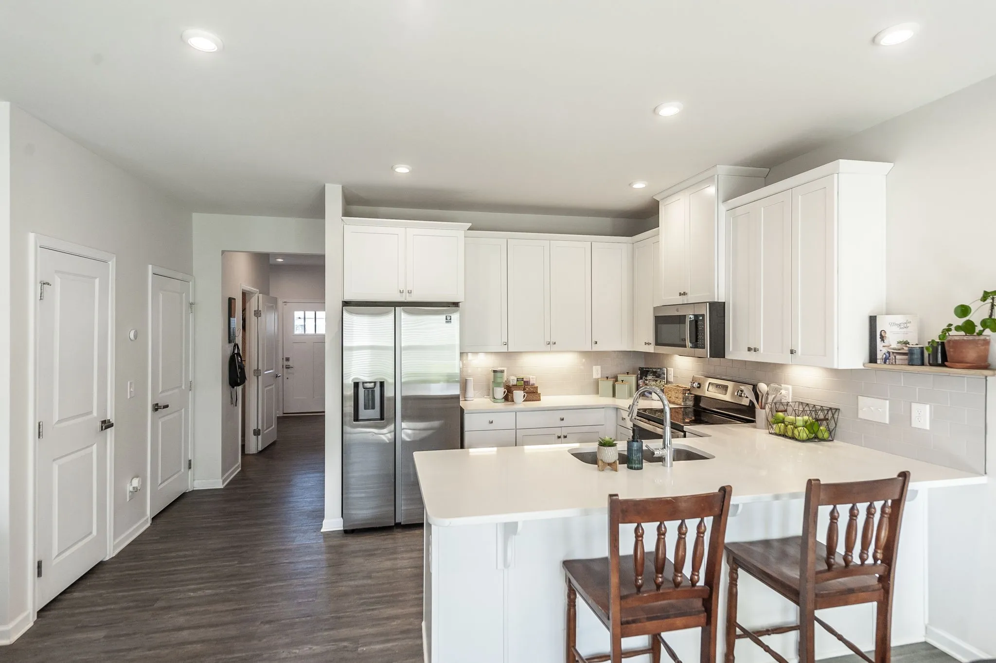 Welcome to Windsong—one of Gallatin’s most convenient and walkable communities just north of Nashville! Ideally located minutes from Old Hickory Lake and Gallatin Marina, this like-new townhome offers the perfect blend of modern comfort, thoughtful upgrades, and everyday convenience. With sidewalks throughout and easy access to nearby retail, dining, and daily essentials, this location truly delivers on lifestyle. Situated on a premium lot backing to a peaceful tree line, this 3-bedroom, 2.5-bath home offers added privacy and a serene backdrop that sets it apart from typical new construction. Inside, you’ll find a bright, open floor plan designed for both everyday living and entertaining. The main level features durable luxury vinyl plank flooring and a spacious living area that flows seamlessly into the kitchen. The kitchen is a standout with crisp white cabinetry, granite countertops, a tile backsplash, stainless steel appliances, and a pantry for extra storage. Even better—this home includes a stainless refrigerator plus a washer and dryer, offering immediate value and convenience over new builds. Upstairs, all bedrooms are well-sized and equipped with remote-operated ceiling fans for added comfort. The bathrooms have been upgraded with enhanced shower heads, and the main level powder room features stylish wallpaper, adding a designer touch you won’t find in standard units. This home is truly move-in ready and has been thoughtfully upgraded throughout. A one-car garage provides secure parking and storage, and the home is perfectly positioned directly across from additional guest parking—making it easy for visitors. If you’re looking for low-maintenance living in a growing area with a premium setting and upgrades already in place, this Windsong townhome is a must-see.