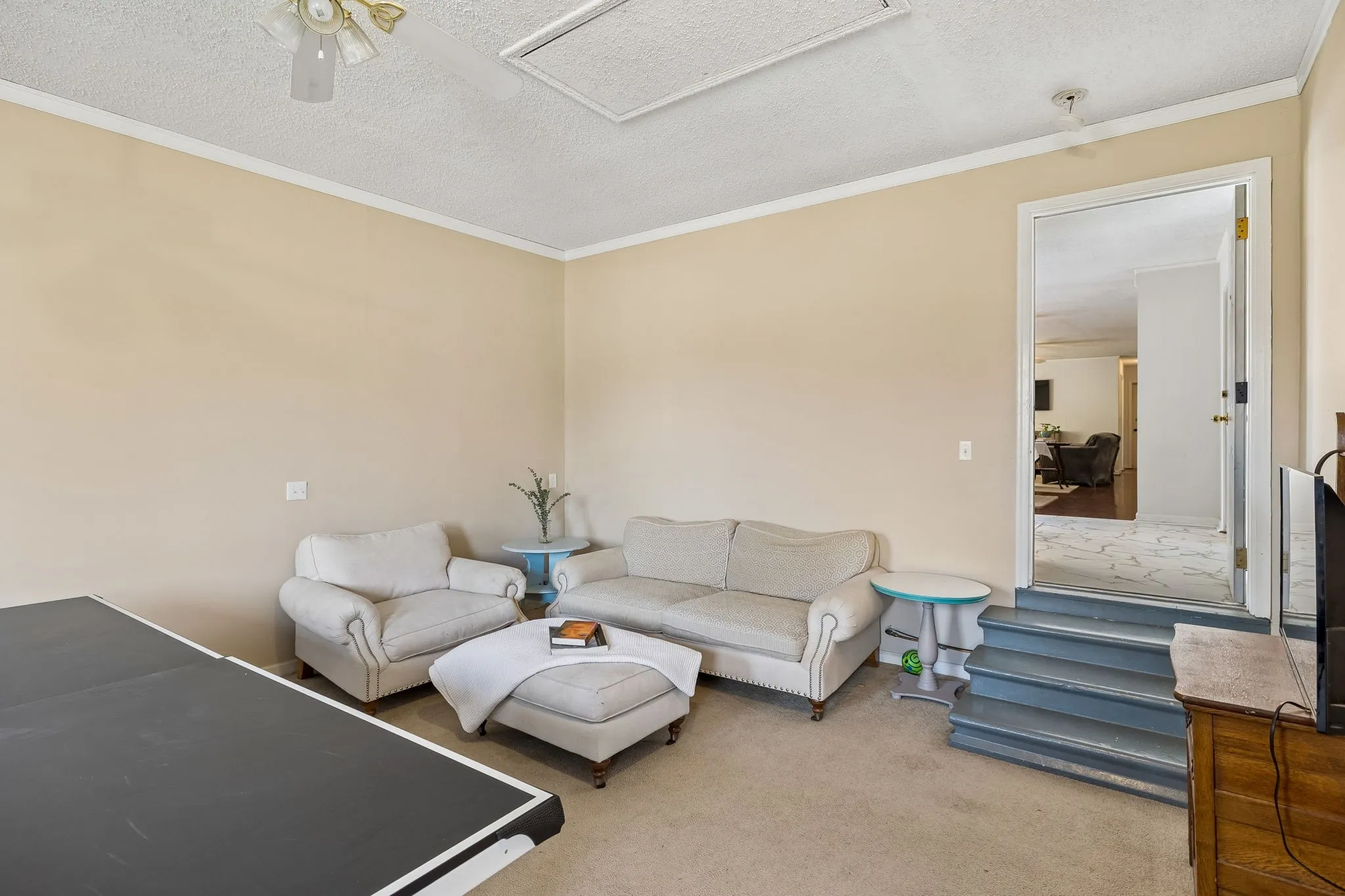 Converted garage has been used as a Rec room. Easily add a shower (with existing plumbing) in the rec room 1/2 bath for a perfect addition of a guest suite, teen or in-law suite, or income earning room. Also would be great for a home office or business.