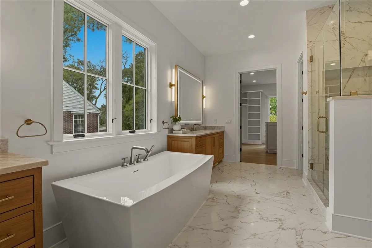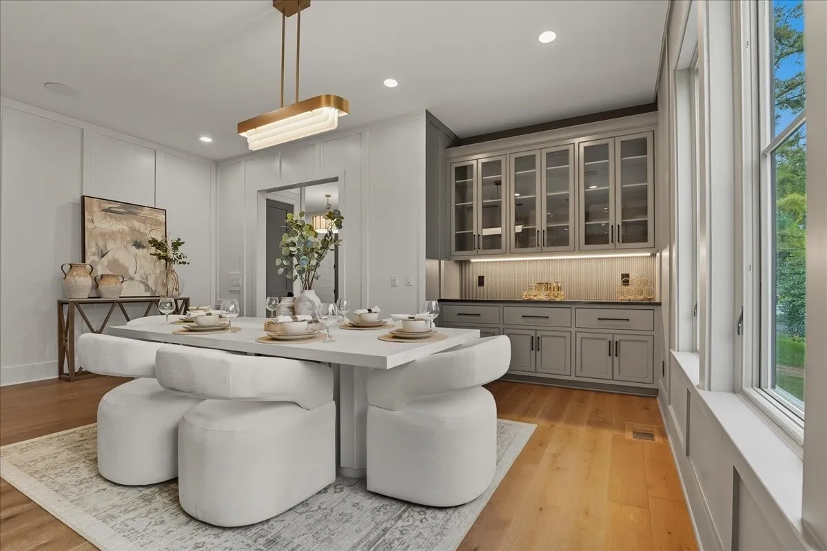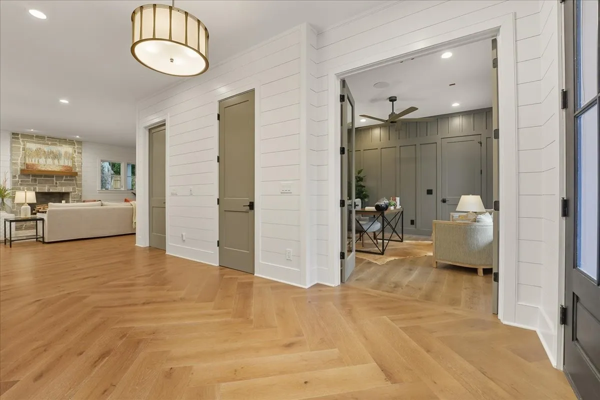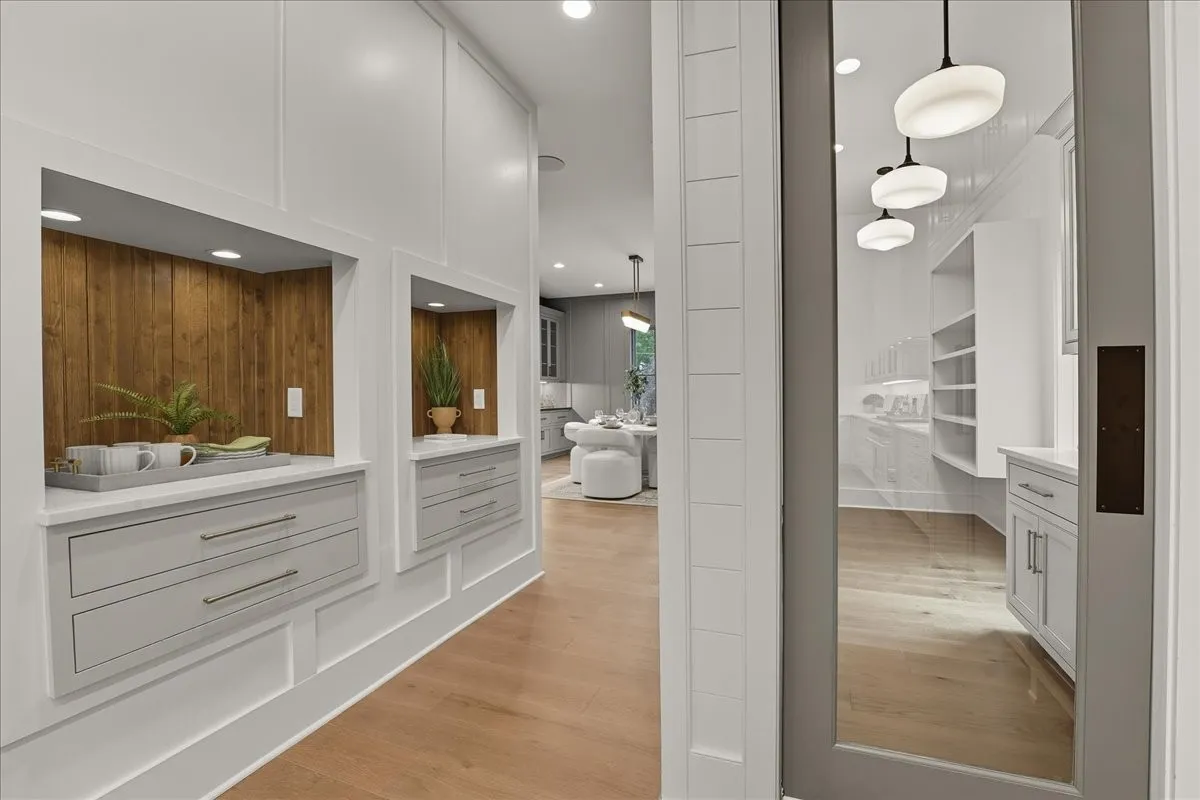 Every inch of this remarkable home reflects a deep commitment to quality, craftsmanship &timeless design. Built on a steel-reinforced poured concrete foundation w/brick construction, this residence combines unwavering strength w/exquisite architectural details. Classic bead board ceilings on front&back porches along w/Coppersmith gas lanterns set the tone for a home that’s as beautiful as it is enduring. Upon entering, you are greeted by the soothing sounds of your personal Sonos amp system w/18 ceiling speakers &individual fader controls smartly placed throughout common living areas. Kitchen is a chef’s dream w/Calacatta Miraggio Cove Quartz countertops, 48” Wolf gas range w/double ovens, Sub-Zero refrigerator &freezer columns,Bosch Benchmark dishwasher&Scotsman nugget ice machine. A large walk-in pantry w/ prep space completes the culinary experience. Great room centers on a dramatic wood-burning stone fireplace complemented by a custom TV console w/shelving&white oak accents. Separate spacious dining room is complete w/bar area serving as both a visual centerpiece&an entertainer’s dream. It features black honed countertops,custom built-ins for glass&bottle storage,wine frig&ice maker&brass rail/glass shelving set against antiqued smoked mirrors. Inviting Primary suite is a retreat to behold w/a vaulted wood plank ceiling, Taj Mahal quartz surfaces, Brizo Litze luxe gold fixtures, double vanities&a graciously-sized soaking tub. Walk-in closet offers an expansive 20-drawer center island&specialty shelving like angled shoe racks. Main-level laundry offers extensive cabinetry w/over 160 cubic feet of storage—ideal for linens, luggage, and seasonal needs. Upper floor boasts a central gathering room from which 4 bedrooms rest, each w/ their own private bathrooms&walk-in closets.Another full laundry room is found here w/front-facing window that allows sunlight to wash across the patterned floor tile.