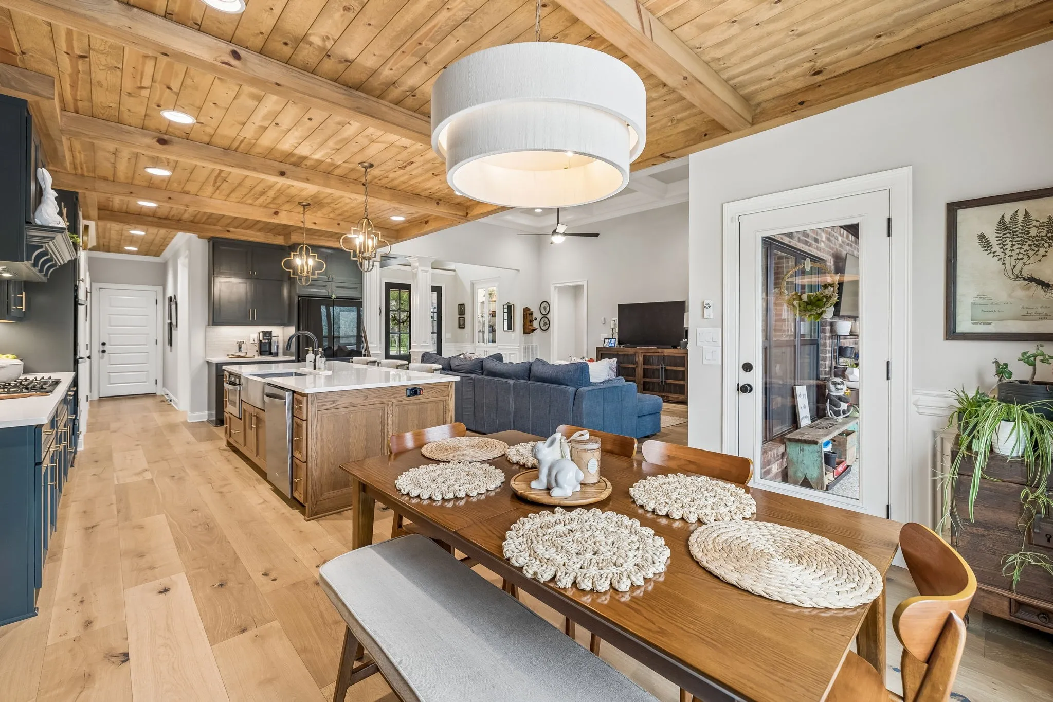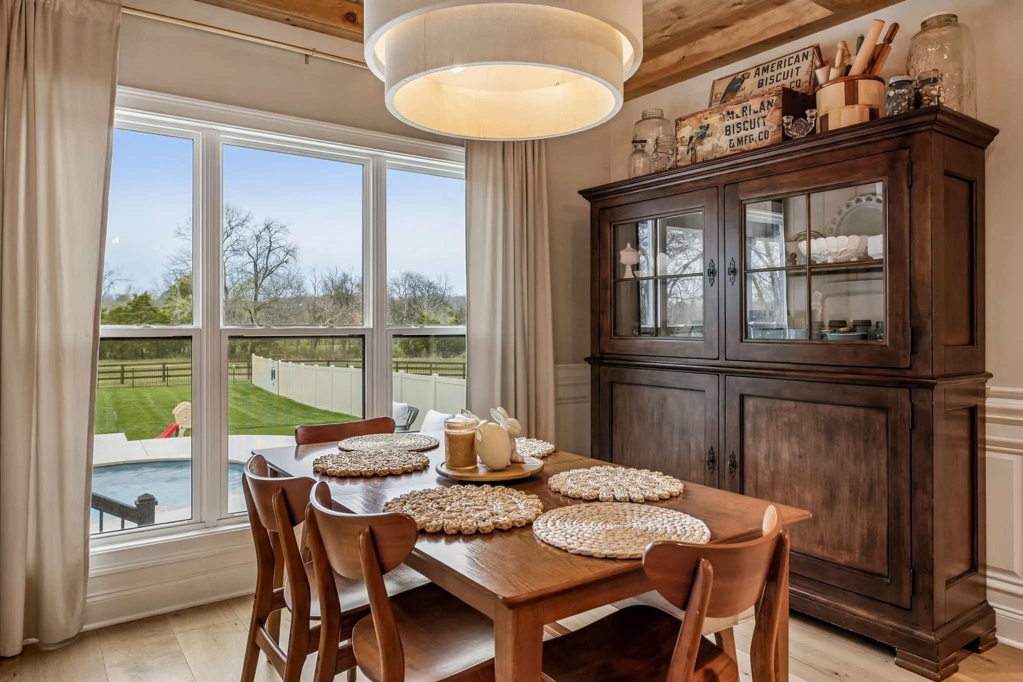 Exceptional quality built by Eastland Construction Inc., this upgraded Clearbrook floor plan offers designer touches, thoughtful functionality & a backyard that feels like a private retreat. From the moment you walk into the soaring two-story foyer, you’re greeted w/ custom details, including a built-in display cabinet & a beautiful dining room ready for hosting. The open-concept layout flows effortlessly into a spacious living area, where a large kitchen island, custom millwork & a wood-accent ceiling create a warm & inviting space. The primary suite is privately positioned towards the back on the main level, featuring double vanities & dual walk-in closets w/ custom shelving. A 2nd bedroom downstairs is ideal for guests or a home office, while upstairs offers two additional bedrooms, all with walk-in closets, PLUS an oversized bonus room! You’ll love the added versatility of the 12×7 flex space, perfect for a gym, office, or hobby room, along with the generous 9×13 walk-in attic storage. Out back, unwind in your fully fenced oasis complete w/ a 15×30 fiberglass pool, putting green & scenic farmland views. Epoxy flooring enhances both the pool surround & the 3-car garage, while an irrigation system keeps everything looking its best. With custom blinds, both refrigerators, washer and dryer appliances included, this truly move-in ready home is the total package. Come see it in person, you won’t want to leave!