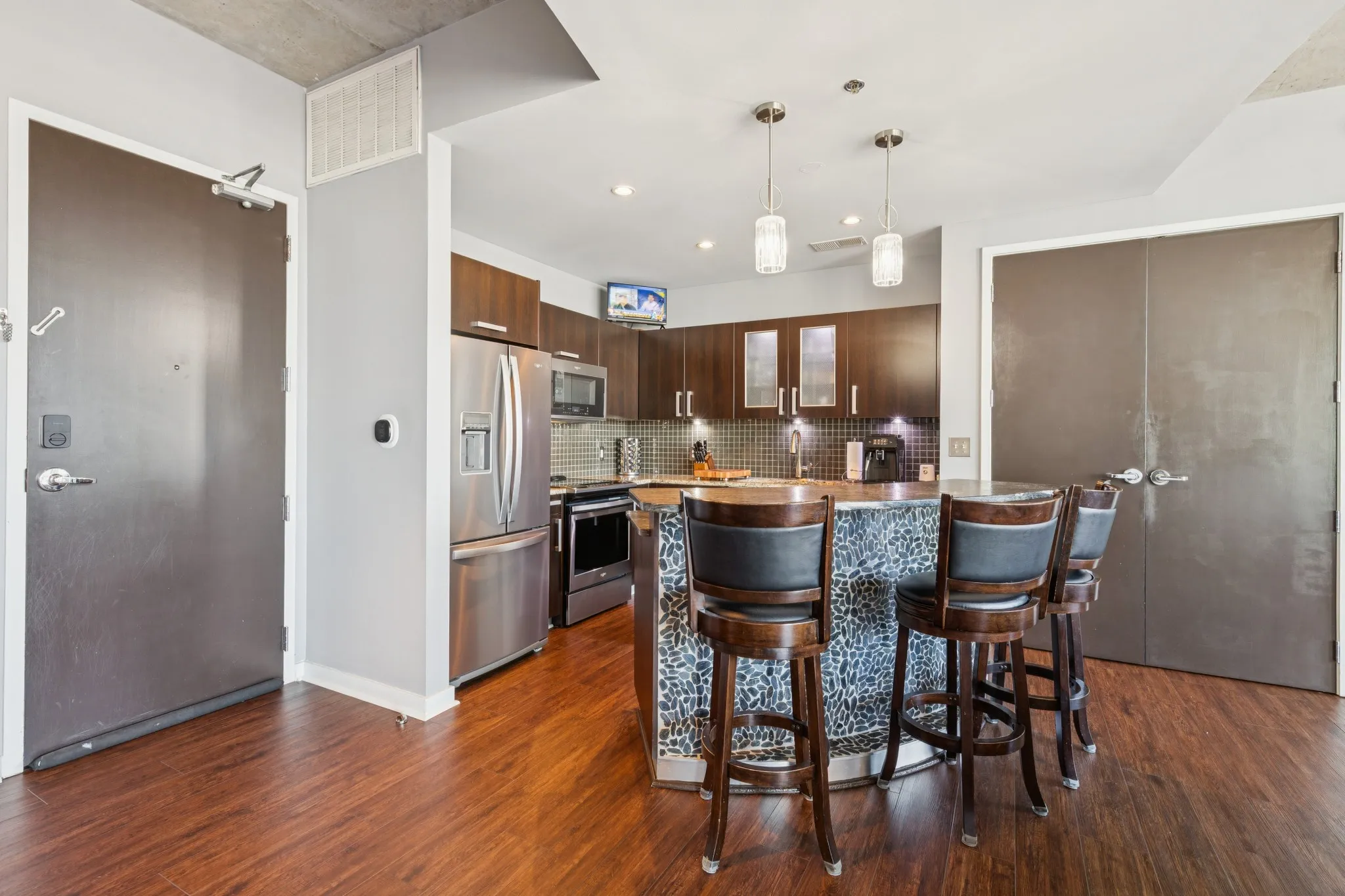 One of the biggest floor plans in the ICON overlooking the heart of the Gulch!! Unit 534! A 2 bedroom, 2 bath with an extra room to use as a home office, den, or third bedroom! Two-parking spaces convey valued at $30,000 each, located in an enclosed, secure and gated garage right next to one another. Spaces 641 & 642. Easy access to the interstate and to downtown hot spots. Walkable neighborhood to top-rated roof top bars, boutique shops, and top notch restaurants! Within walking distance to many retail & clothing shops, nail salons, and Turnip Truck Grocery Store with Whole Foods 5 minutes down the street on Broadway. One of the quietest neighborhoods in Downtown Nashville after 10 pm. Amenities: 24/7 concierge service that receives & holds packages and sends owners notifications that they have arrived, and are available for pick up, state-of-the-art fitness centers, two swimming pools with lounge areas, outdoor grill stations, dog park, various community lounge areas, yoga studio, conference room, notary service, multiple elevators so no long waits, large freight elevator to help with deliveries and to move in/out of building!