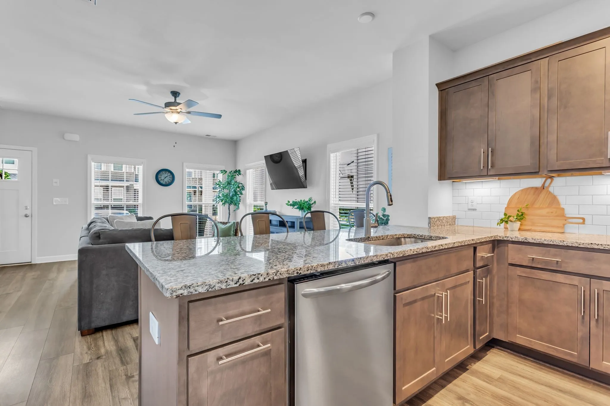 Welcome home to this bright and spacious end-unit townhome featuring a flexible open-concept layout designed for modern living. Nestled against a private, tree-lined green space, this home offers rare backyard privacy and a peaceful view. Inside, you’ll find a light-filled living room and kitchen with large windows and eat-in peninsula—perfect for casual dining or entertaining. The kitchen offers generous cabinetry, a large pantry, and plenty of counter space to meet all your culinary needs. A versatile flex space off the kitchen can be used as a home office, dining room, or playroom. Upstairs, both spacious bedrooms feature en suite bathrooms and large closets, creating two private suites ideal for roommates, guests, or a growing family. Conveniently located with quick access to the Saturn Parkway, this townhome is just minutes from The Crossings of Spring Hill and downtown Columbia, offering a wide array of shopping, dining, and entertainment options. Don’t miss your chance to own this well-appointed townhome with the rare combination of privacy, natural light, and prime location! Perfect for investors too!