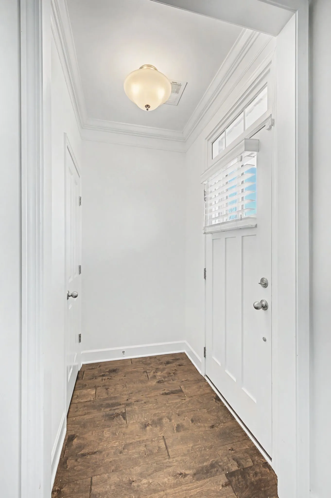 Upstairs, two well-proportioned bedrooms share a pristine bath and an extra closet in the hallway.. This three-bedroom floor plan offers both space and flexibility.