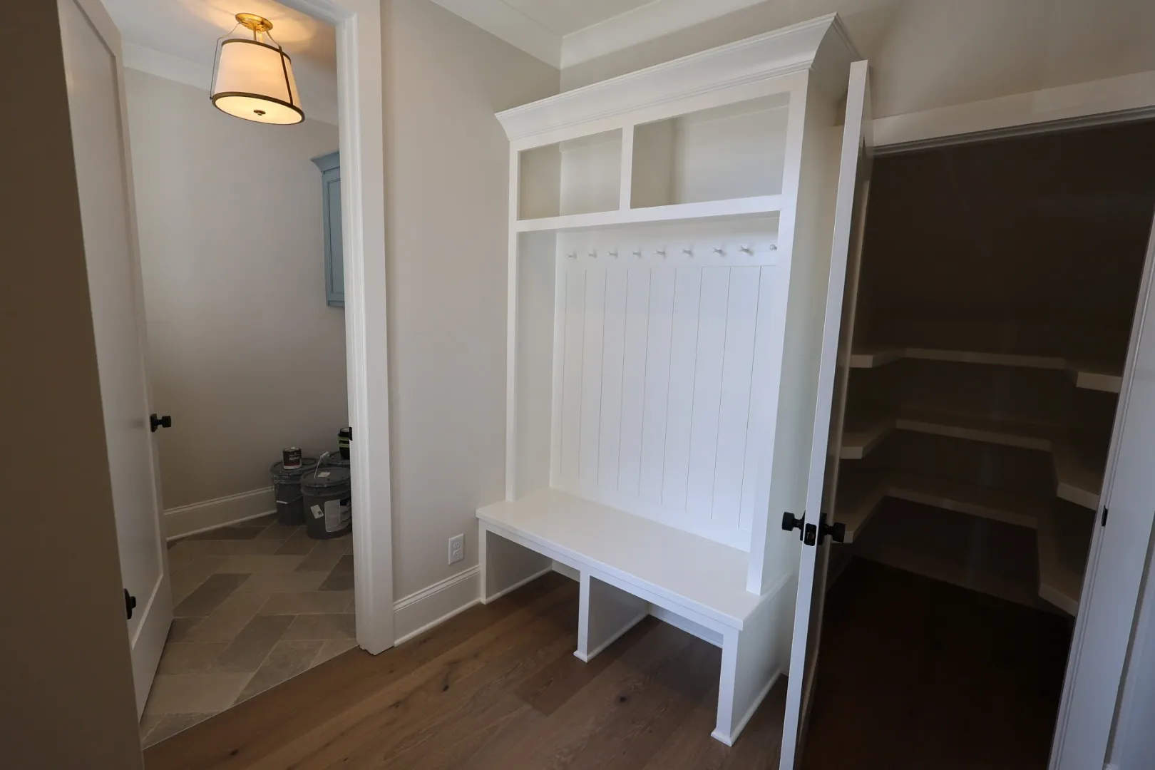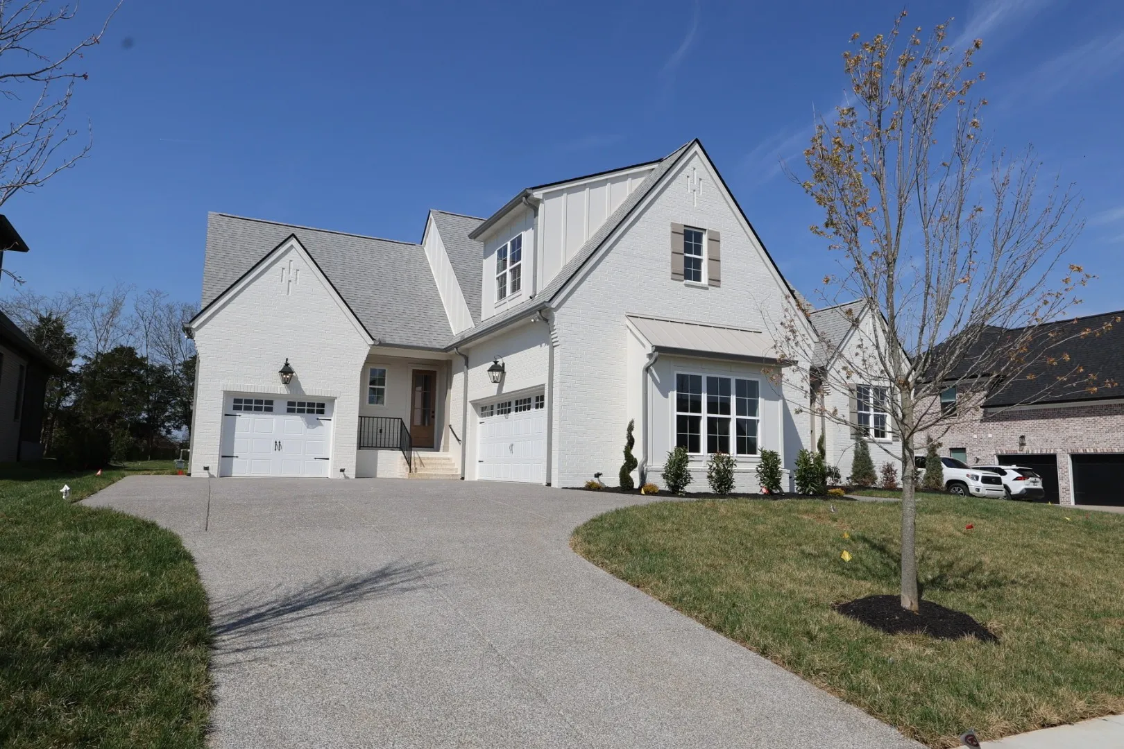 Welcome to 1006 Stone Creek Lane. Built by Tim Tomlinson Homes and located in the Farmington Woods neighborhood. This exquisite residence features a classic white painted brick exterior, blending modern elegance with timeless charm.