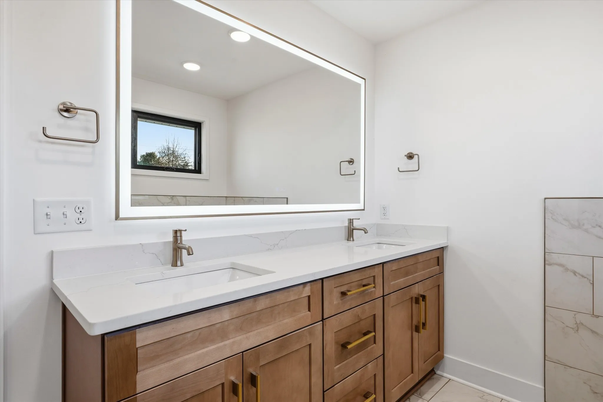 The primary suite offers a private retreat with a free standing tub, tile shower, double quartz vanity, and a spacious walk in closet with custom wood shelving. The secondary bedrooms are generously sized and served by an updated Jack/Jill bathroom with a tile shower and a double sink quartz vanity. A third full hall bath provides even greater flexibility for guests.
