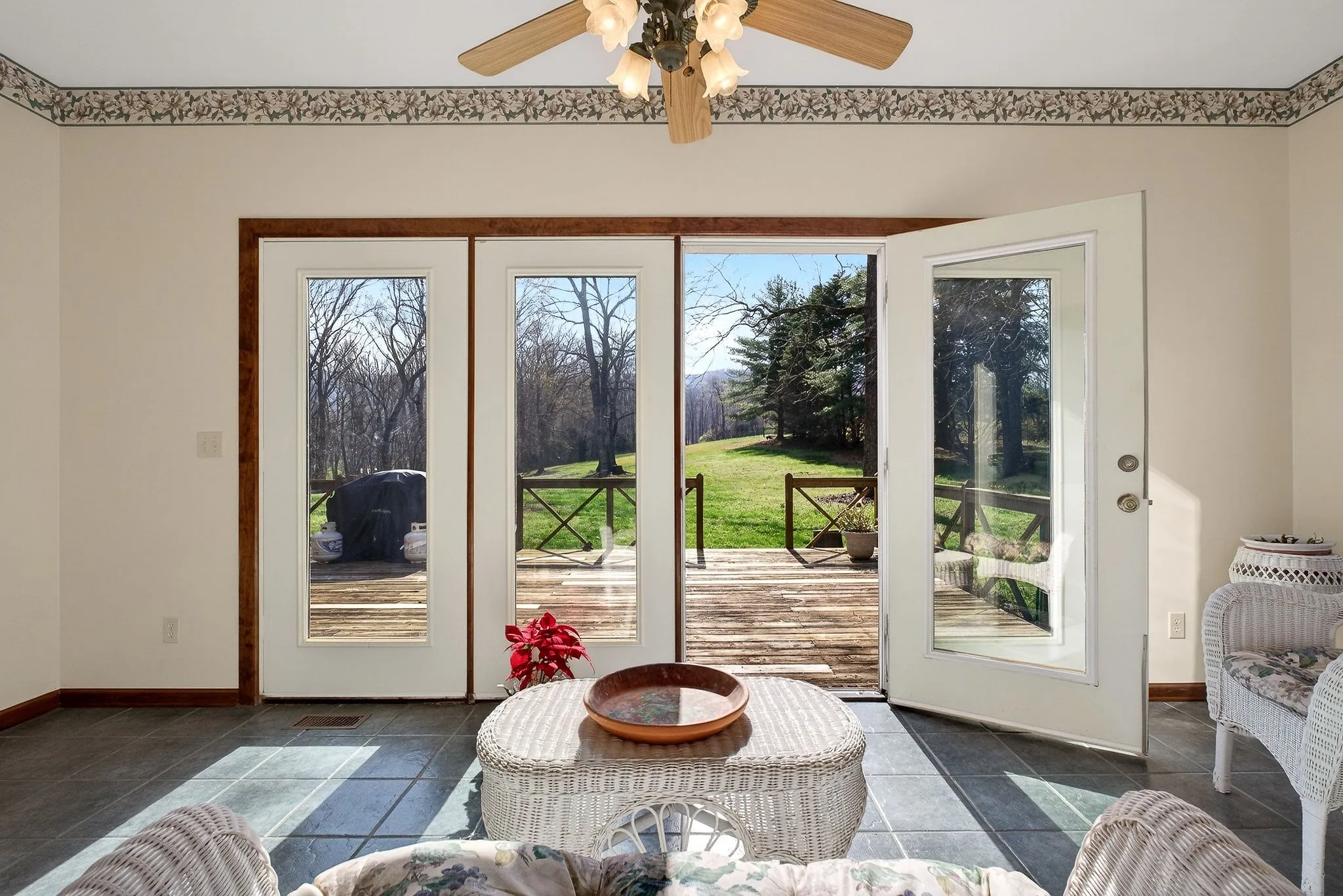 Step into this well-built home featuring a large formal living room with a true masonry brick wood-burning fireplace and high ceilings that create an open, inviting feel. The sunroom offers stunning views of the surrounding countryside—perfect for relaxing mornings or evenings. Enjoy a functional layout with a split bedroom system for added privacy, along with a spacious kitchen featuring a pantry and breakfast room, plus a formal dining area for gatherings. The full unfinished basement offers incredible opportunity for additional living space, storage, or customization to fit your needs. Outside, the landscaping and acreage provide peaceful country vibes with plenty of room to roam, garden, or expand.