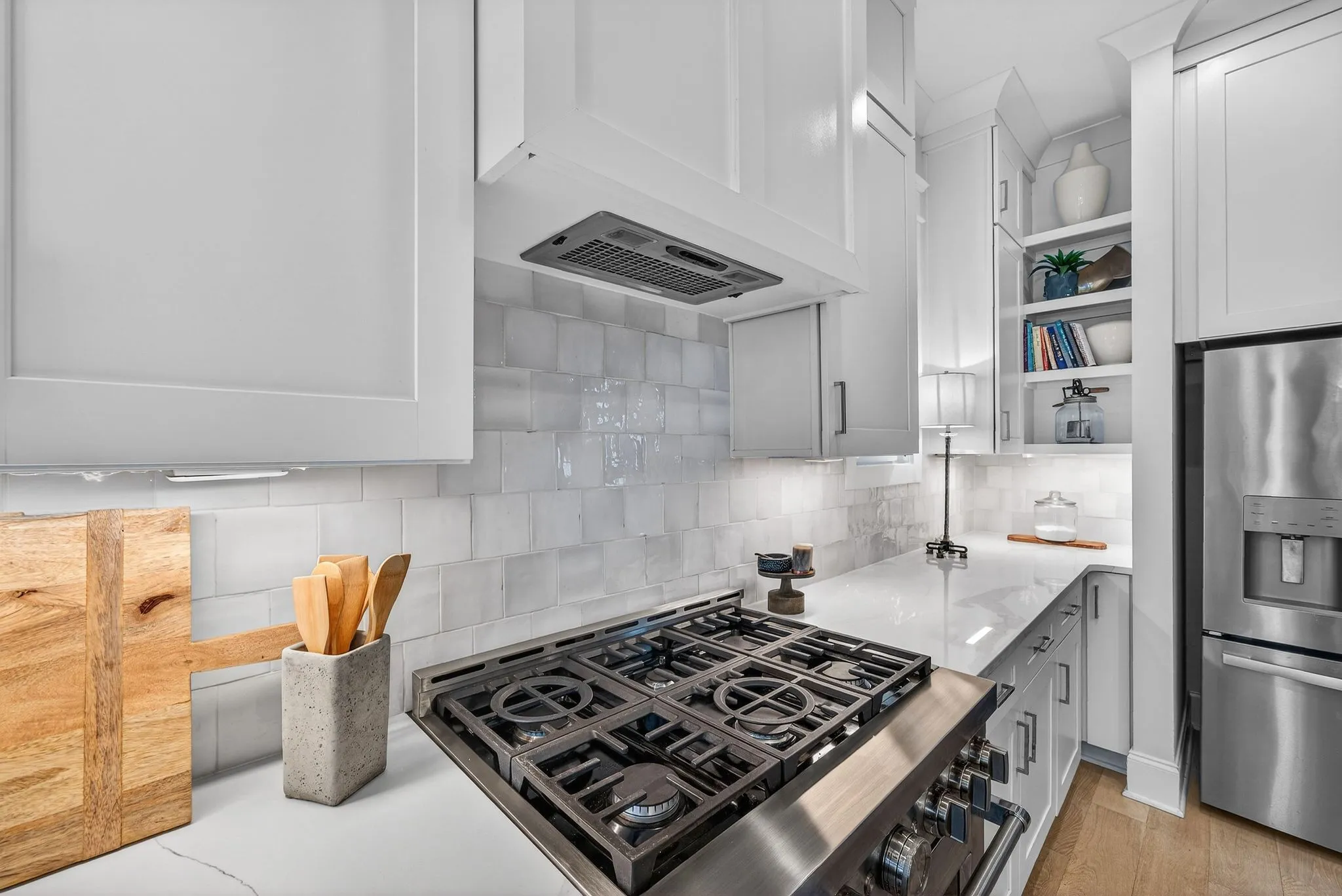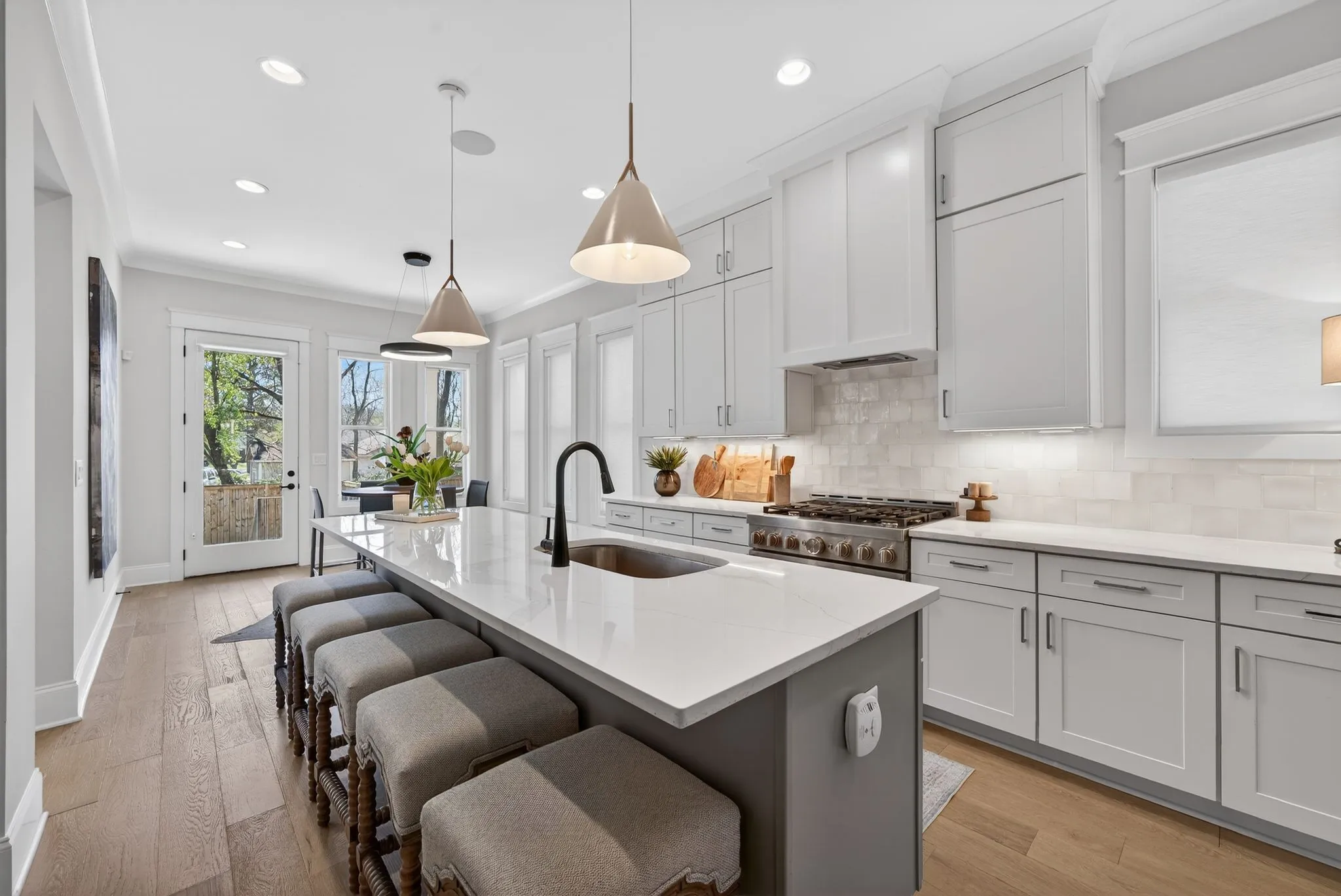 Welcome to 921A Woodmont Boulevard, a beautifully designed luxury home offering elevated living just minutes from Green Hills, 12 South, and Belmont. Sunlight pours through expansive windows, highlighting gleaming hardwood floors, custom trim work, and soaring ceilings throughout the open-concept living space. The main living area is anchored by a dramatic two-story fireplace and flows seamlessly into a dedicated dining area and a stunning chef’s kitchen featuring a large island, custom shelving, and high-end stainless steel appliances. The spacious primary suite is conveniently located on the main floor and features an oversized walk-in shower and thoughtfully designed finishes. Upstairs you’ll find generous secondary spaces including a large bonus room, along with the convenience of laundry rooms both upstairs and downstairs. Step outside to enjoy the spacious covered back porch—perfect for relaxing or entertaining. Complete with a two-car garage and beautiful high-end finishes throughout, this like-new home offers exceptional comfort and style in one of Nashville’s most desirable locations!