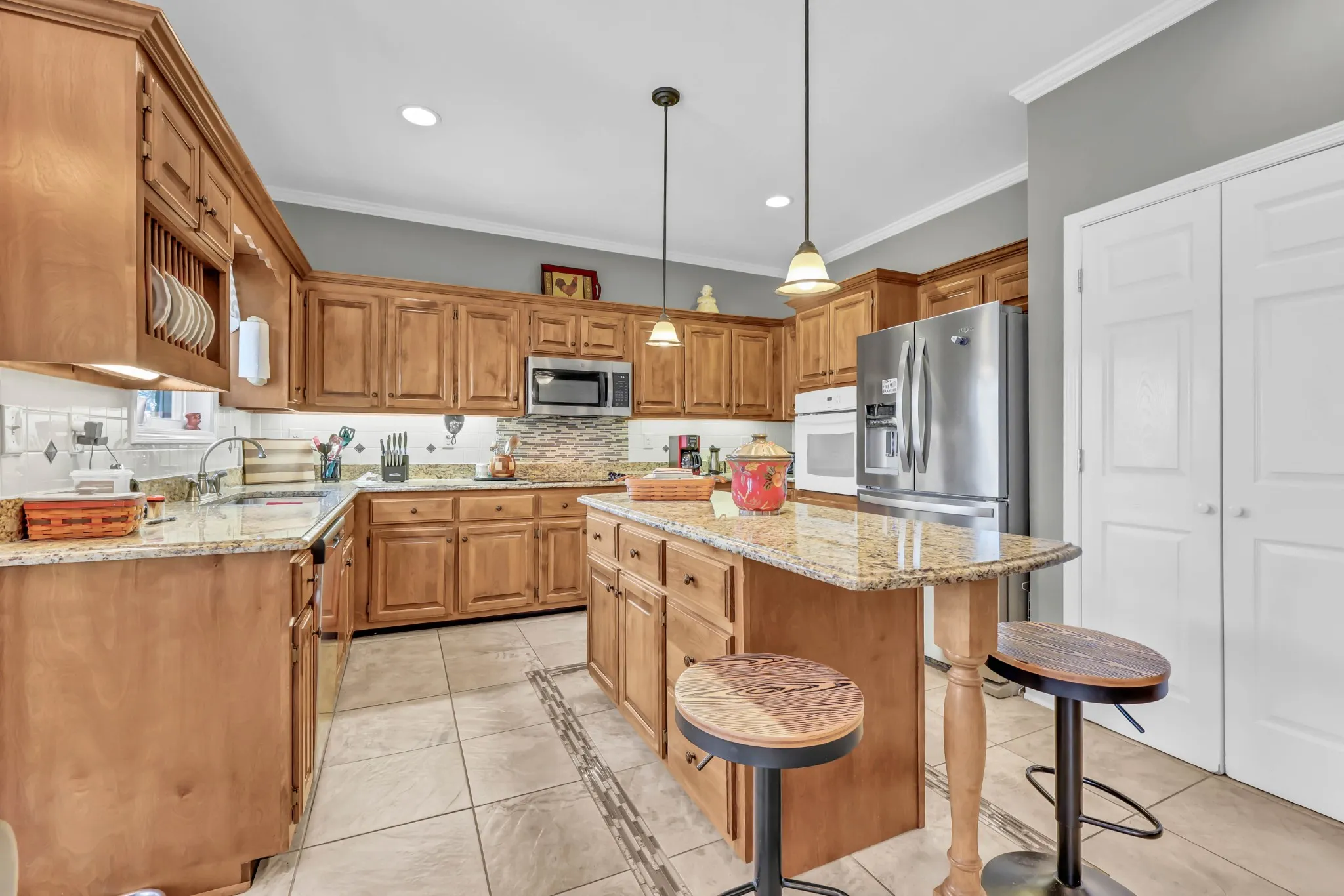 Upstairs, a large bonus room over the garage offers flexibility for a playroom, media space, or home office.