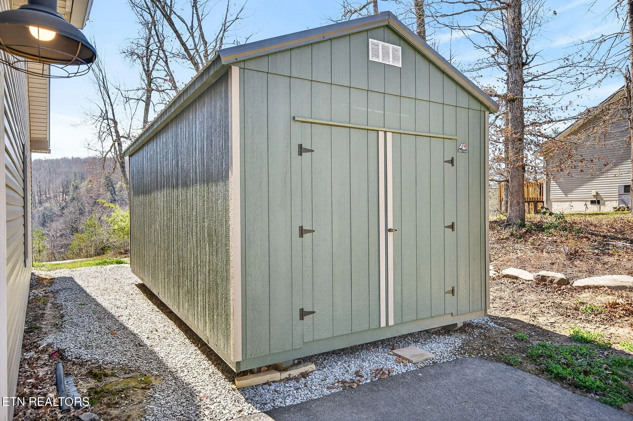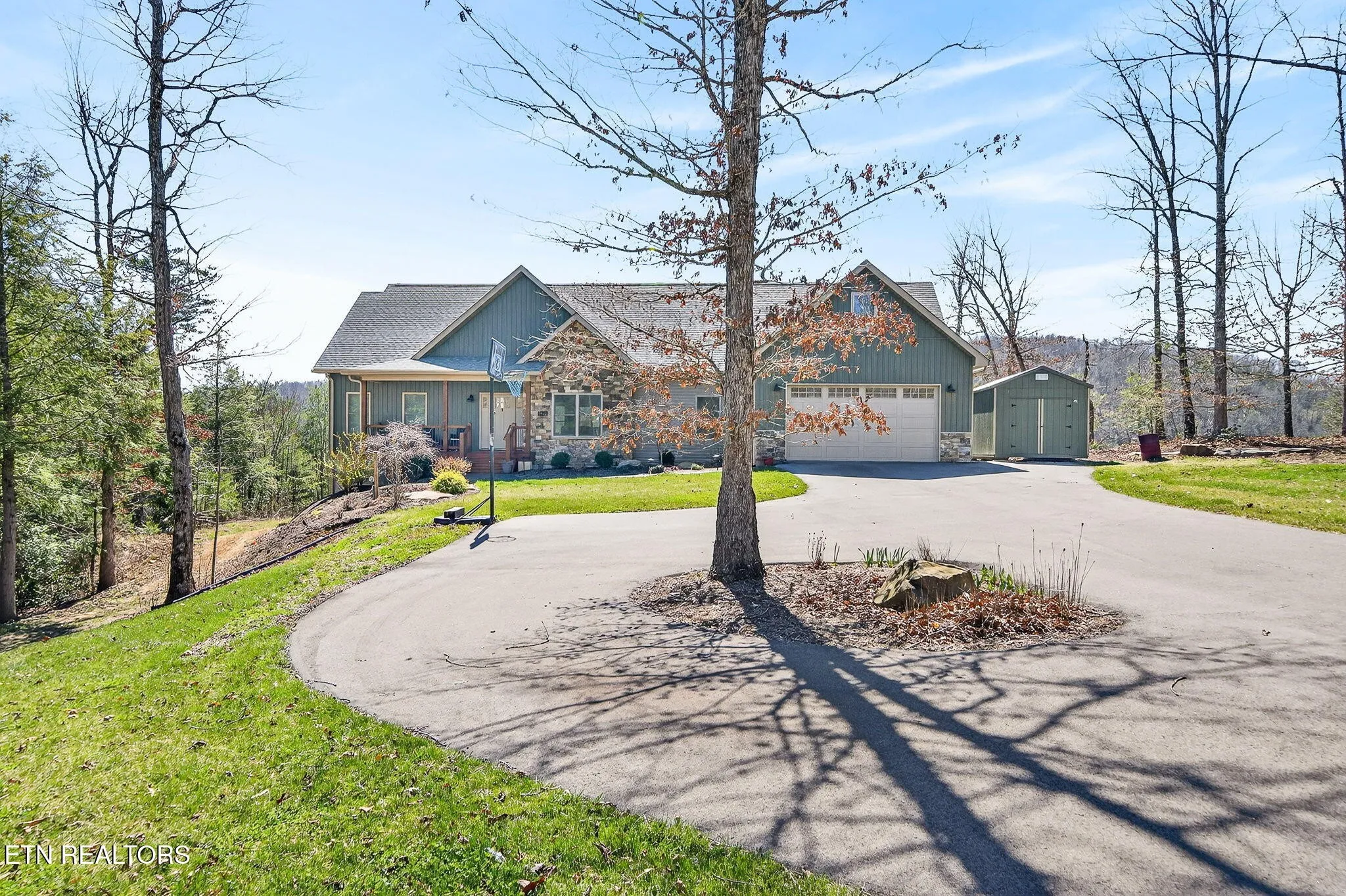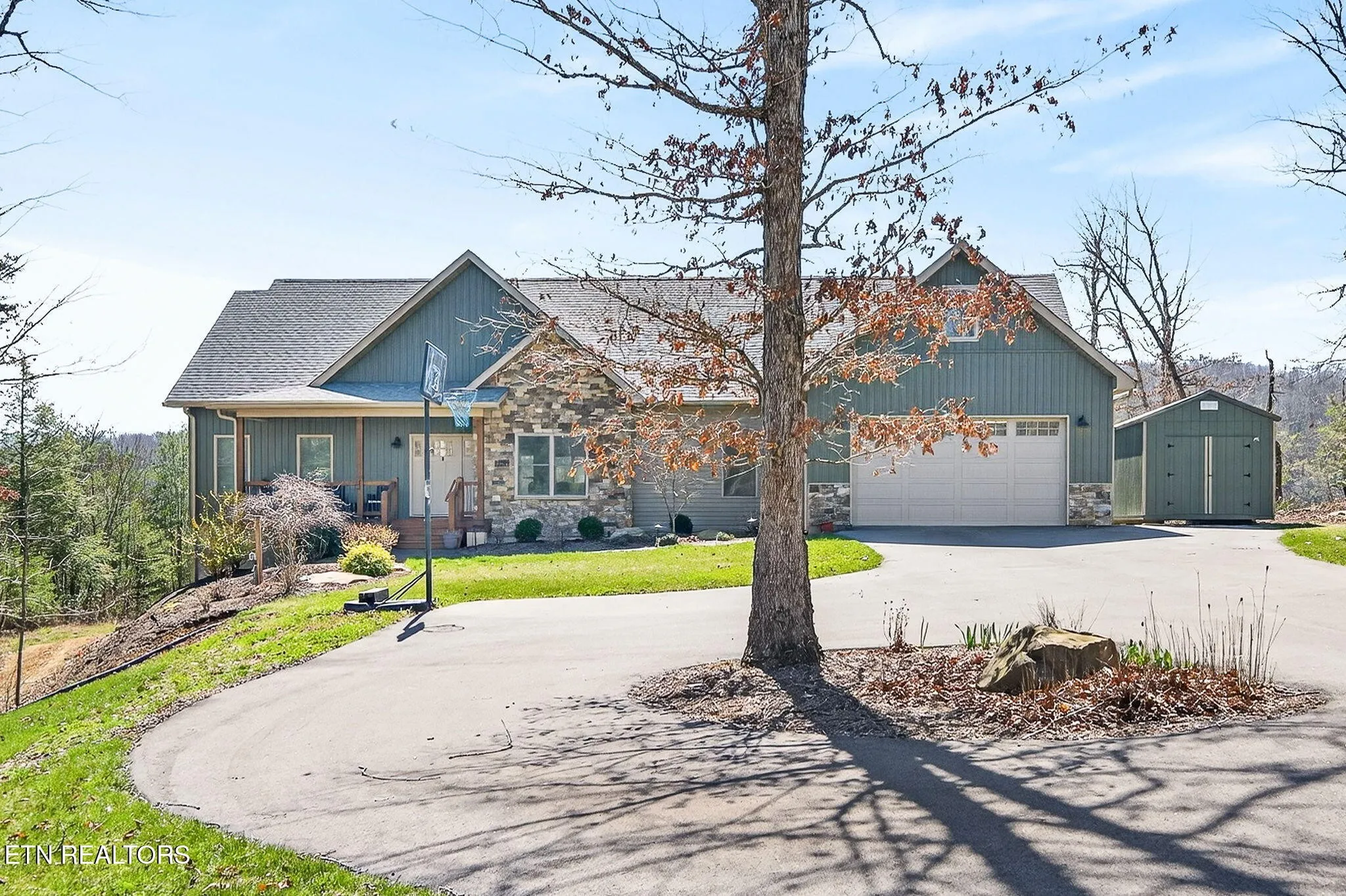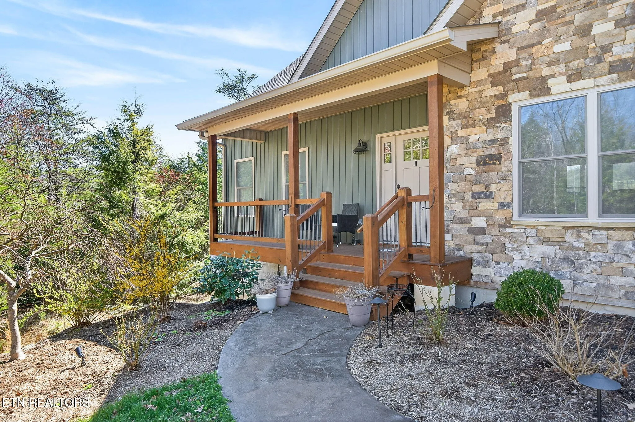 • Exterior features board and batten siding with stone accents on the front