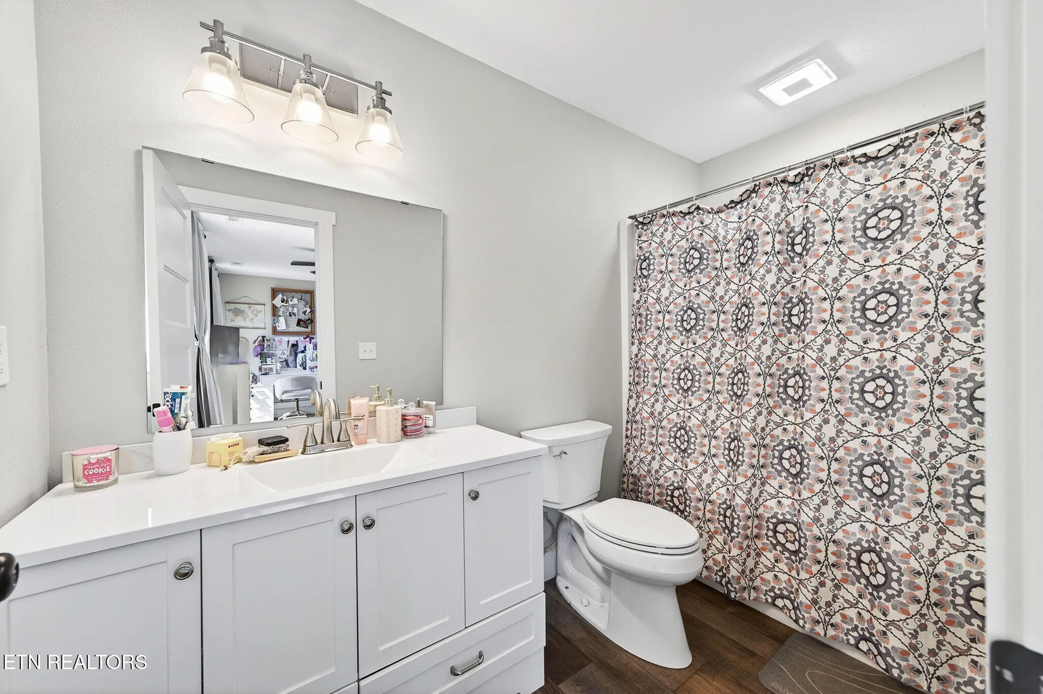 • Upstairs features an ensuite bedroom with tub/shower combo, oversized vanity, and walk-in closet