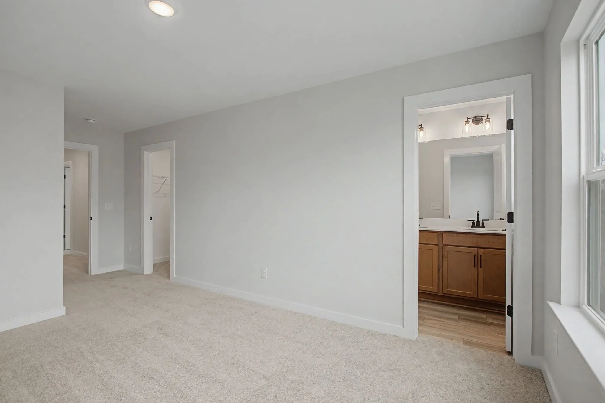 The primary suite, conveniently located on the main level, serves as a true private retreat. It boasts a generous 10’ x 9’ walk-in closet and a well-appointed en-suite bathroom designed for relaxation and comfort. Upstairs, additional bedrooms and full bathrooms provide plenty of space for family members, guests, or flexible-use rooms such as a media space or second home office.