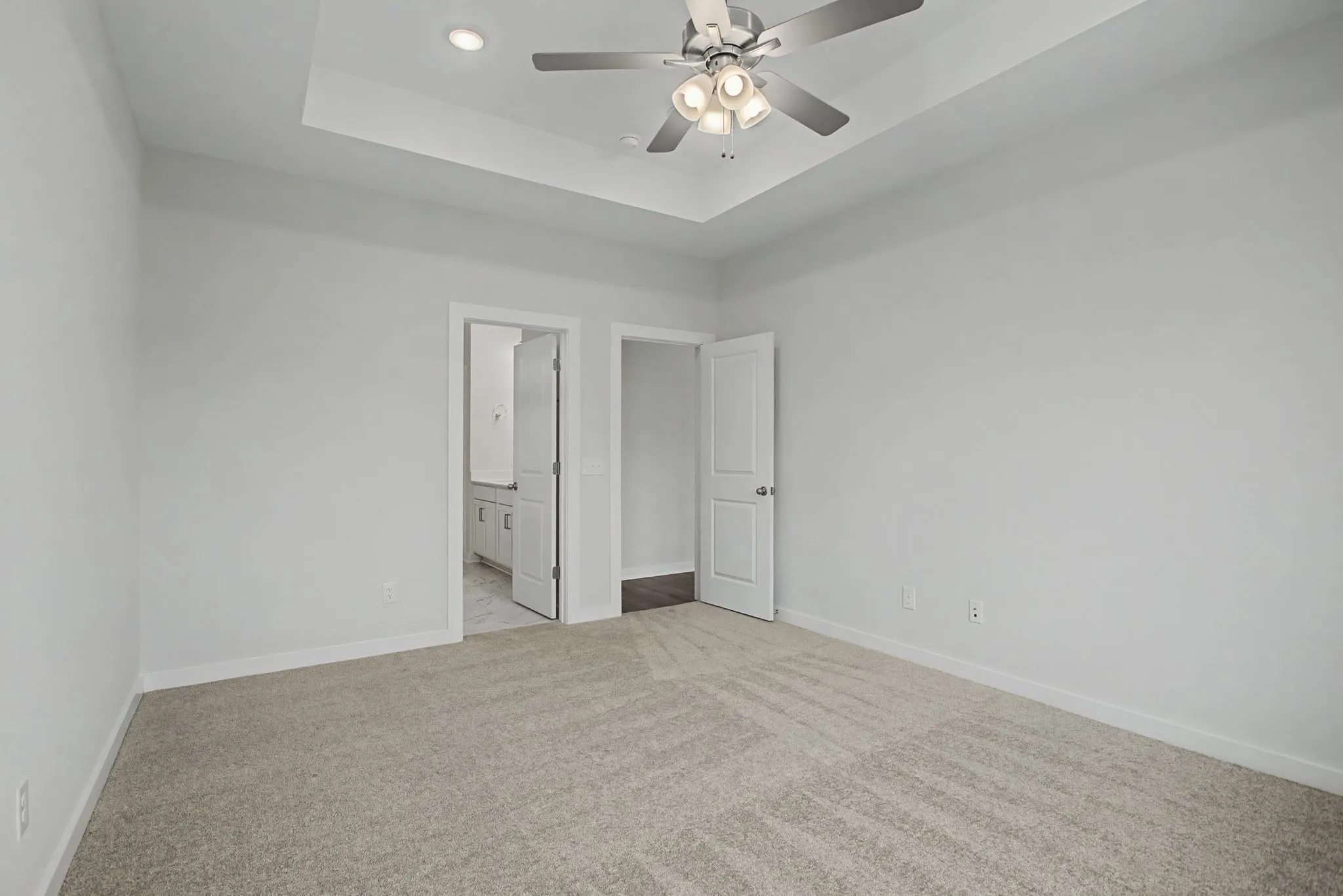 The primary suite, conveniently located on the main level, offers a private retreat complete with a walk-in closet and a full en-suite bathroom designed for relaxation and comfort. Two additional bedrooms provide flexibility for guests, a home office, or hobbies, while the secondary bathroom is thoughtfully positioned for easy access.