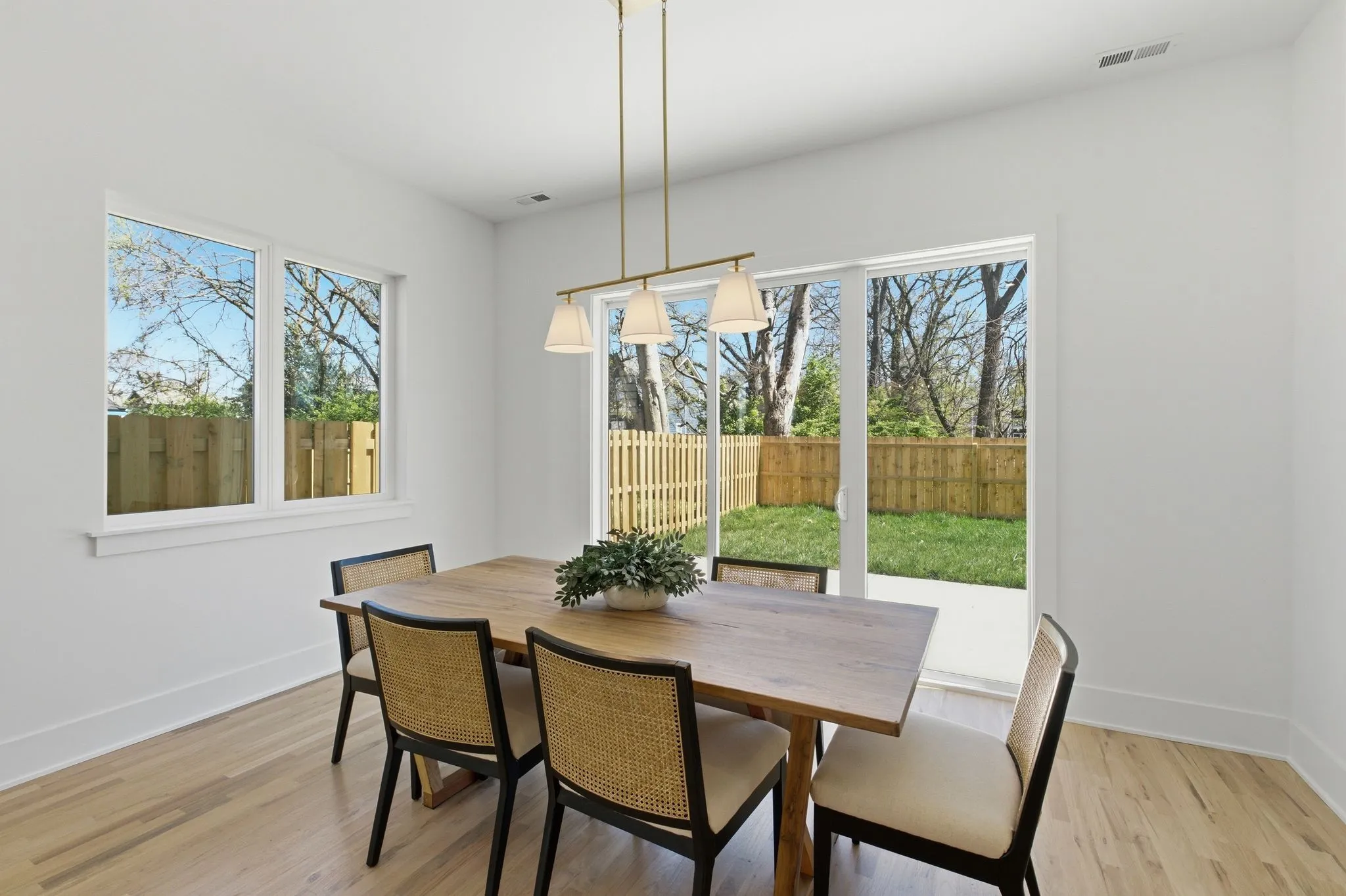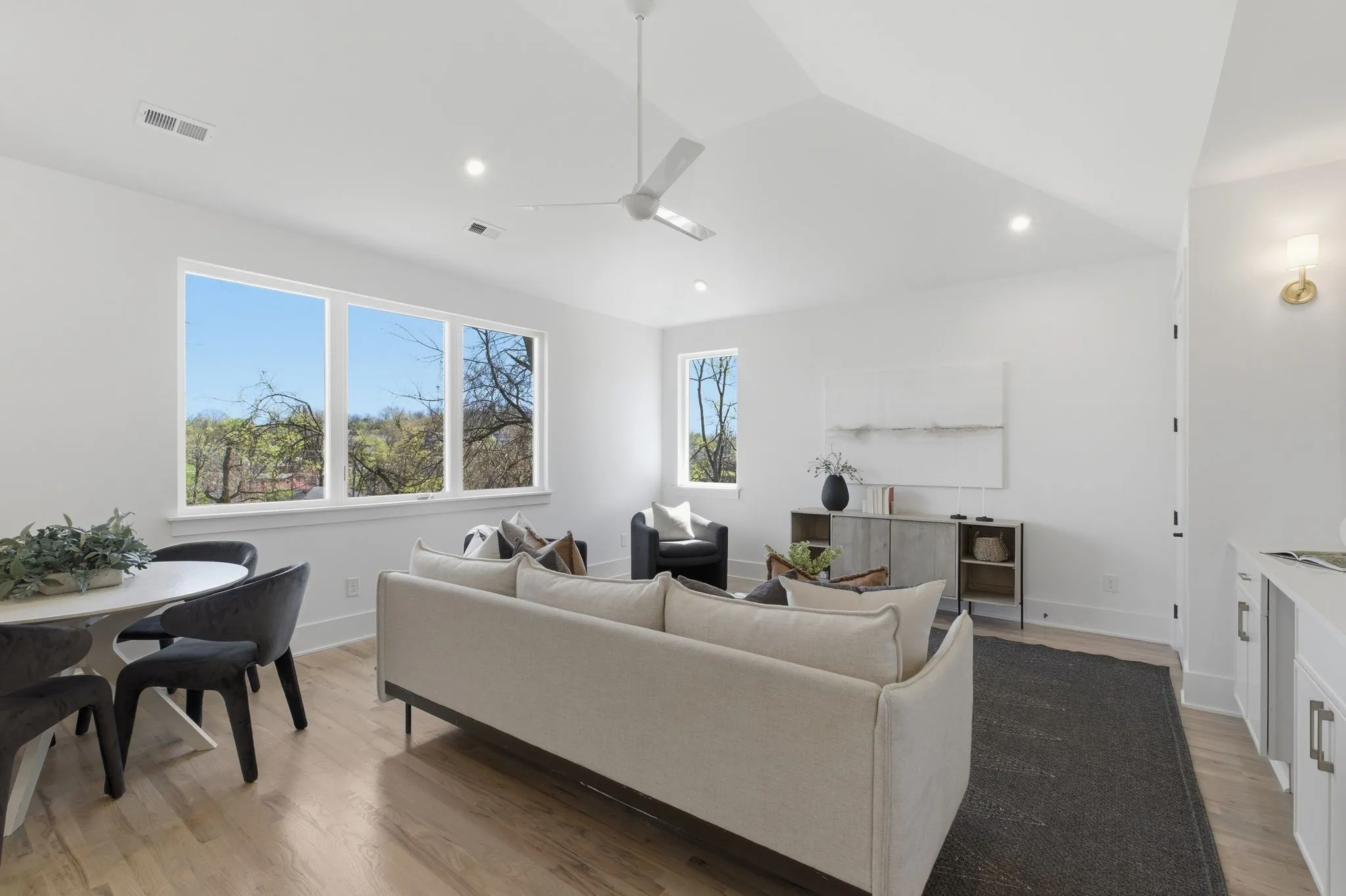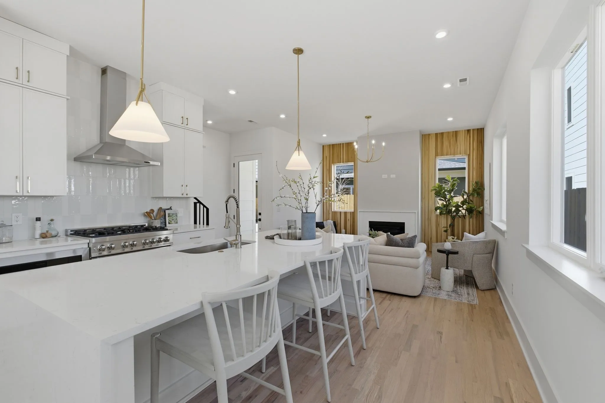 Some homes announce themselves loudly. This one draws you in through balance, light, and a sense that every space has a purpose. From the moment you enter, the layout feels intuitive rather than imposed, creating an immediate ease that is hard to manufacture and even harder to forget. New construction in Inglewood, it pairs modern design with the kind of warmth and confidence that reflects the character of East Nashville living. The main level is designed for daily rhythm as much as hosting. Spaces flow naturally without feeling oversized, creating a home that feels open yet grounded. Large windows bring in steady natural light, while the connection between the kitchen, living area, and outdoor patio makes everyday moments feel relaxed and social. Design choices are intentional and expressive. Hardwood floors, custom wood accents, and curated lighting add warmth and depth. The kitchen anchors the home with quartz countertops, a waterfall island, custom cabinetry, and a 6 burner gas range that invites both casual meals and full gatherings. A walk in pantry and functional drop zone keep the space organized without sacrificing style. Sliding doors open to a covered patio and fenced backyard, extending the living space outdoors. A 2 car garage offers protected parking and practical storage for daily life.