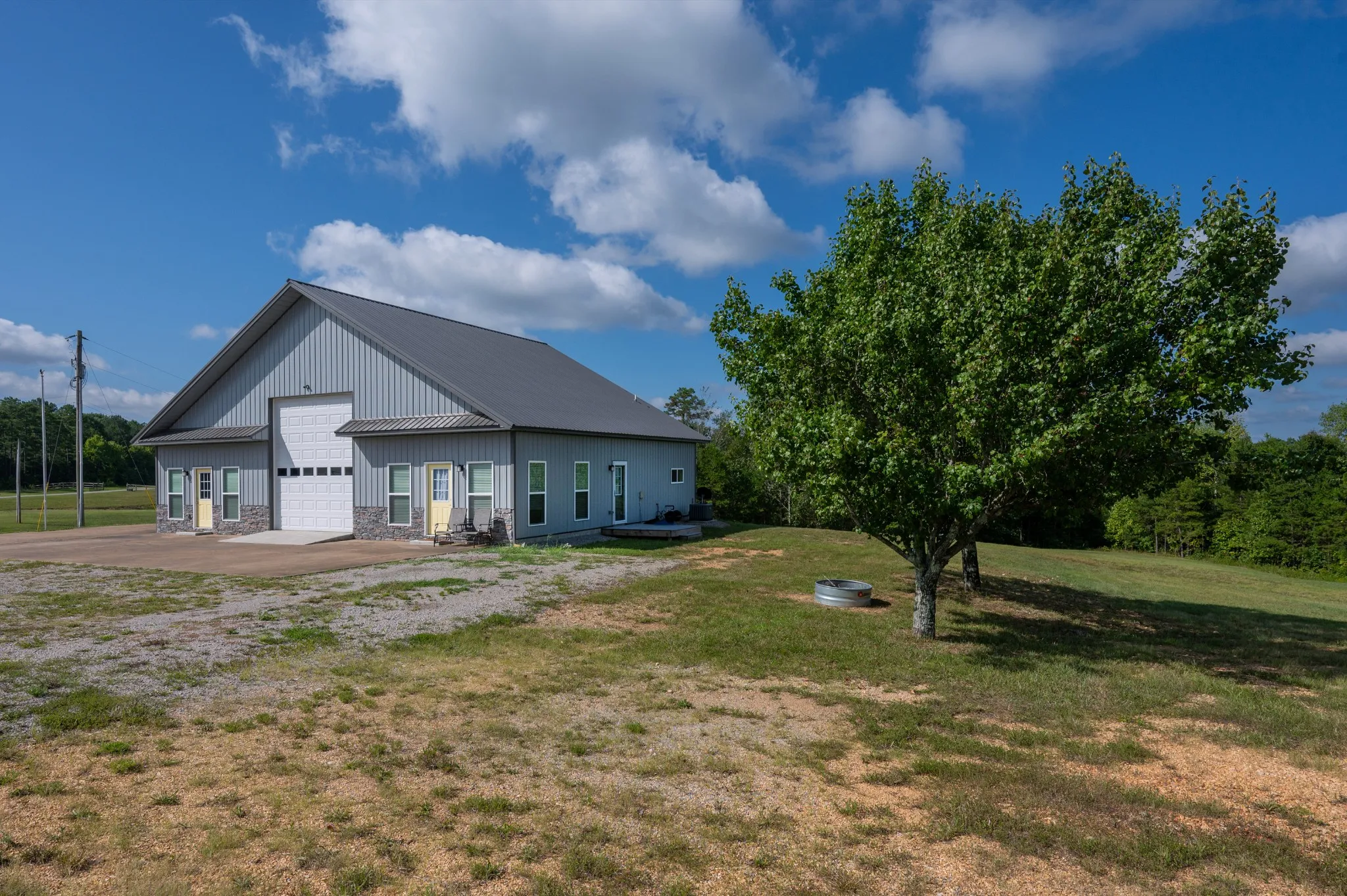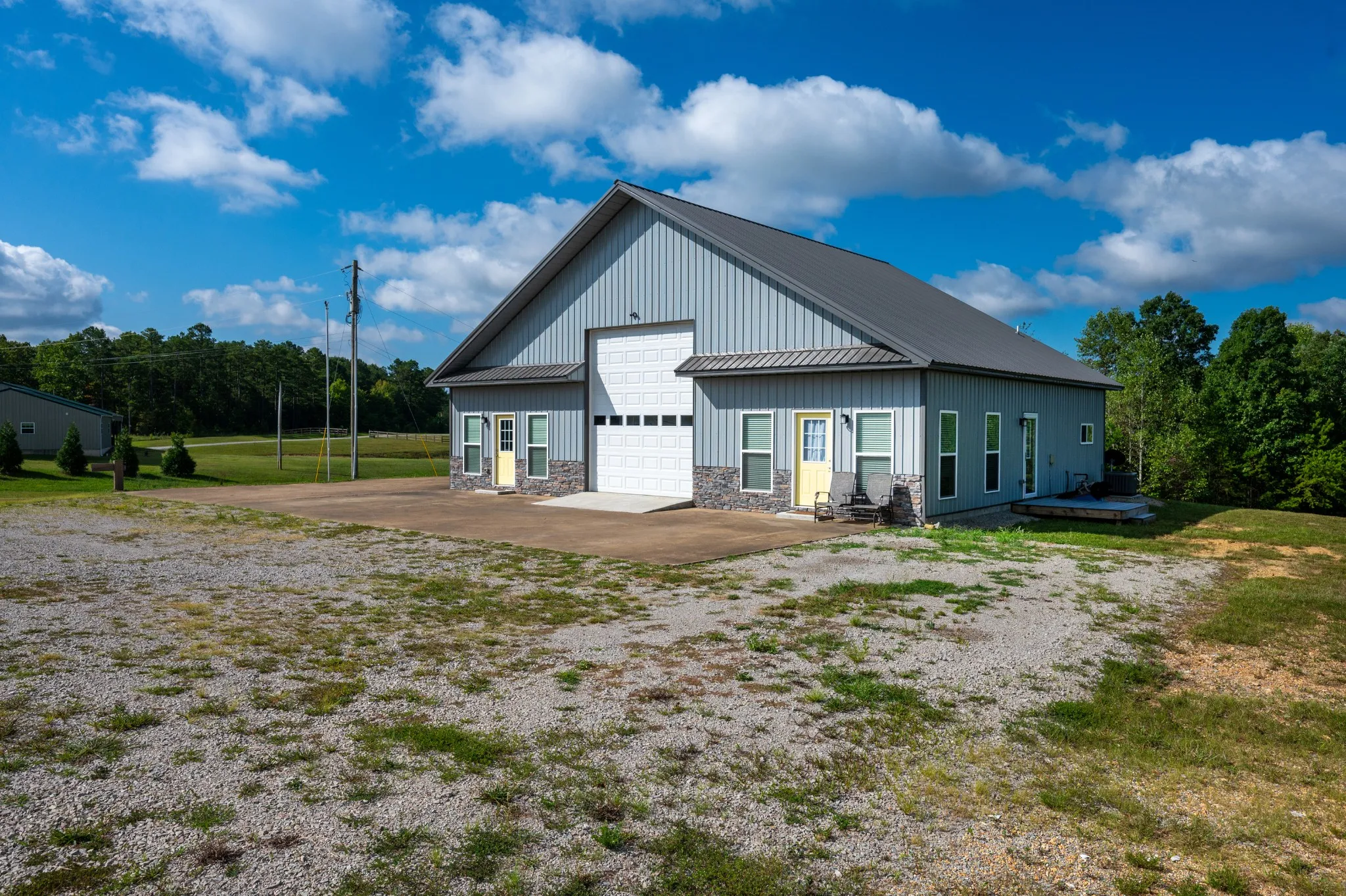 Experience modern country living with this exceptional 2-bedroom, 2.5-bath barndominium, built in 2021 on 4.35 cleared acres just minutes from town, offering breathtaking sunset views and a serene rural setting.