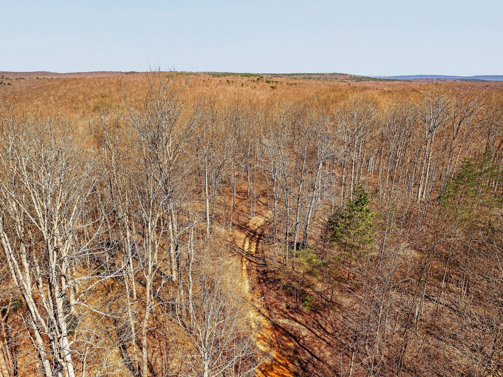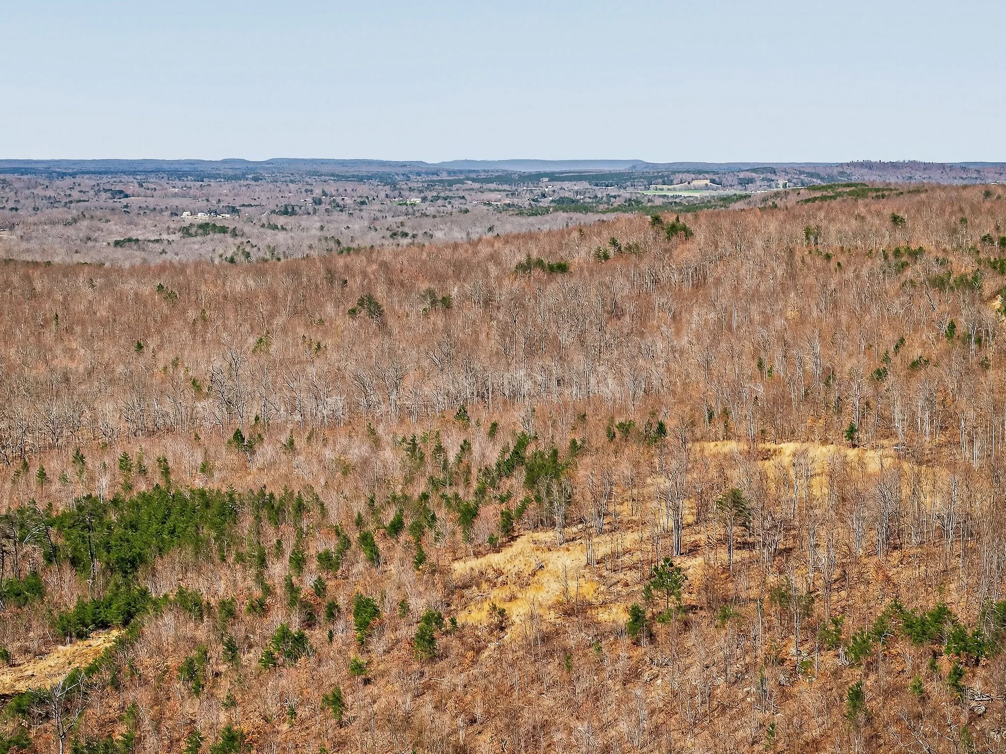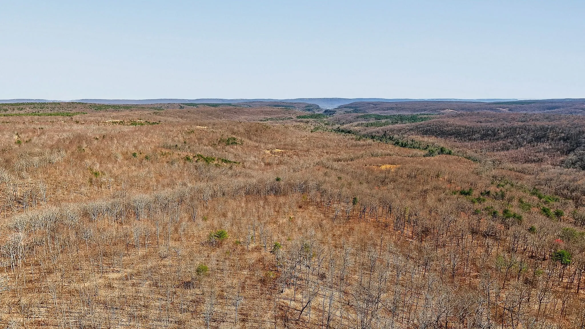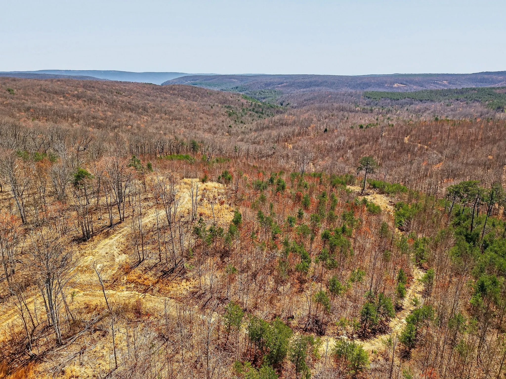 This large, contiguous tract in Sequatchie and Grundy Counties, Tennessee, offers buyers seeking recreational property, hunting land, or a private setting with multiple potential homesites. Positioned along a county-maintained paved road, the property offers convenient access while retaining a secluded, rural setting. The land features a diverse mix of topography, including level areas, gently rolling sections, and steeper terrain. This variation offers multiple potential building sites, several of which offer long-range views of the surrounding Cumberland Plateau. These elevated areas may be suitable for residential structures, cabins, or weekend retreats, depending on buyer preferences and intended use. A notable natural feature of the property is a large blue line stream that flows through the tract. The stream corridor is lined with native Mountain Laurel and mature Hemlock trees, creating a shaded and scenic environment. Portions of mature timber remain within designated stream management areas, contributing to both visual appeal and habitat diversity. The majority of the property is wooded, with a mix of regenerating timber and retained mature stands. The land was timbered several years ago, resulting in a habitat structure that supports a variety of wildlife. The combination of early successional growth, wooded cover, and water sources creates favorable conditions for species such as whitetail deer and wild turkey. Several strategically placed food plots are already established on the property. These openings, combined with the natural terrain, help create defined travel corridors and pinch points that may be suitable for hunting setups. The land’s layout allows for multiple stand locations while maintaining separation between hunting areas. An established internal road system provides access throughout much of the property. This network supports ease of navigation for recreational use, land management activities, and access to various sections of the tract.