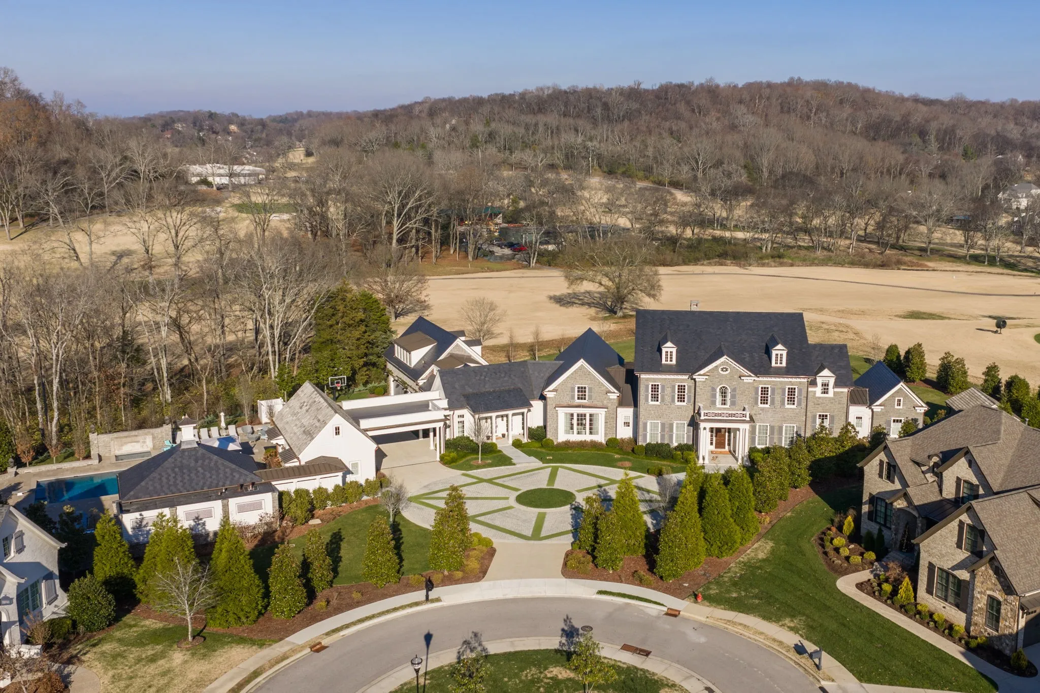 Welcome to 6701 Hastings Lane in Franklin, TN. An exquisite 5-bedroom, 6 full and 3 half-bath luxury estate set on nearly 2 acres in a gated, private cul-de-sac neighborhood. This traditional stone and wood home spans approx. 11,000 sf of refined living space, showcasing white oak floors, high-end finishes, multiple inviting living areas, space for a guest suite, au pair or in-laws suite. Entertaining is effortless with a chef’s kitchen, screened-in porch, pool and spa, pool house, and elevator for seamless access to every level. Additional features include a storm shelter, whole-house generator, slate roof, and expansive outdoor spaces offering unparalleled privacy. Perfect for families and gatherings alike, this estate combines timeless elegance with modern amenities for a truly luxury lifestyle close to Nashville.