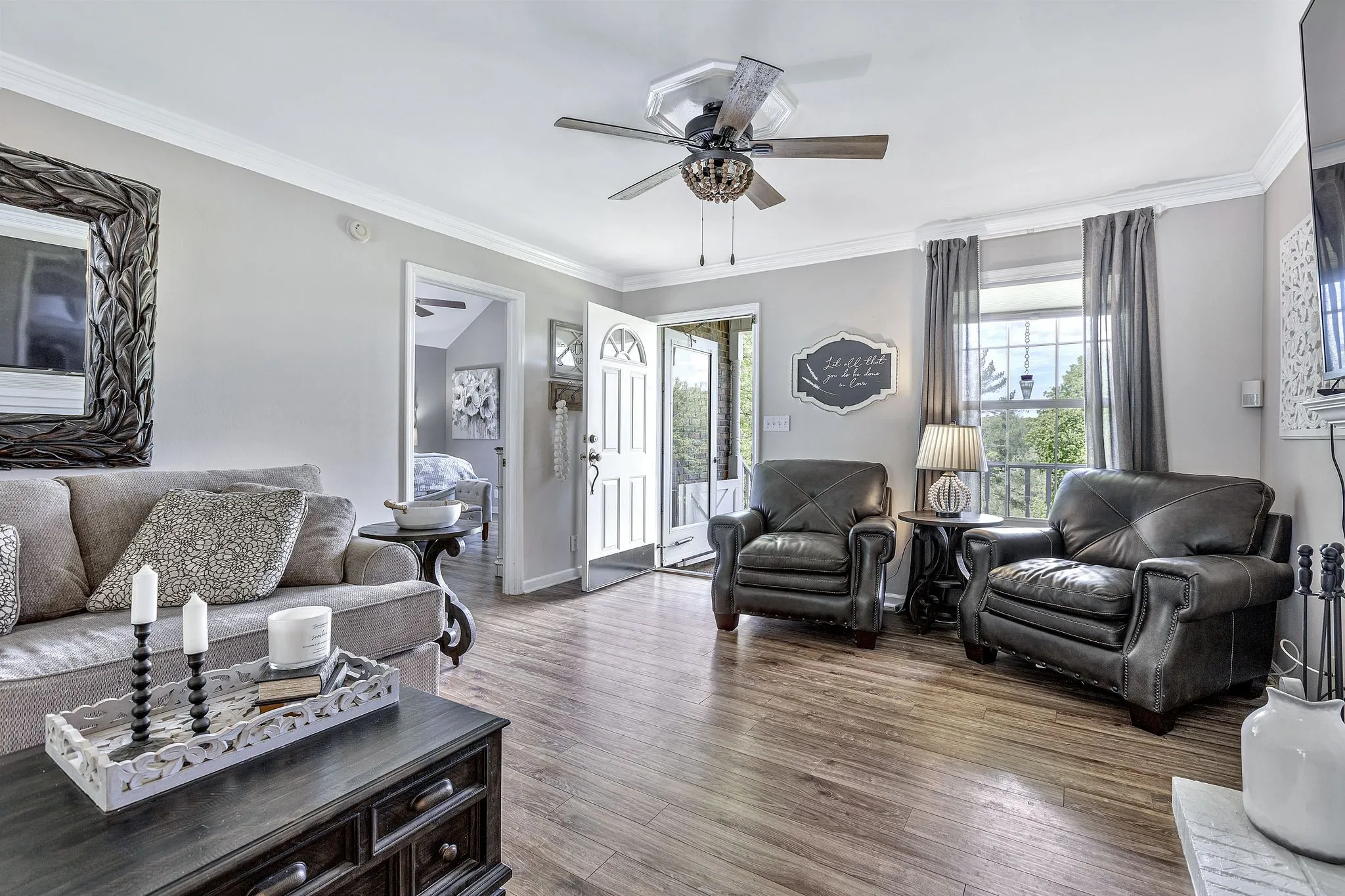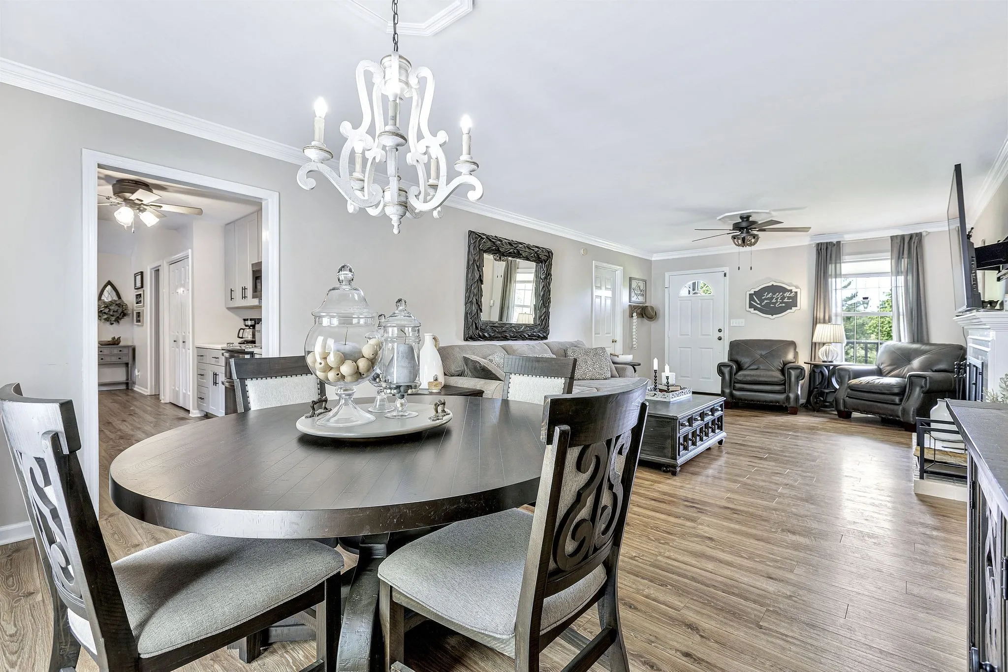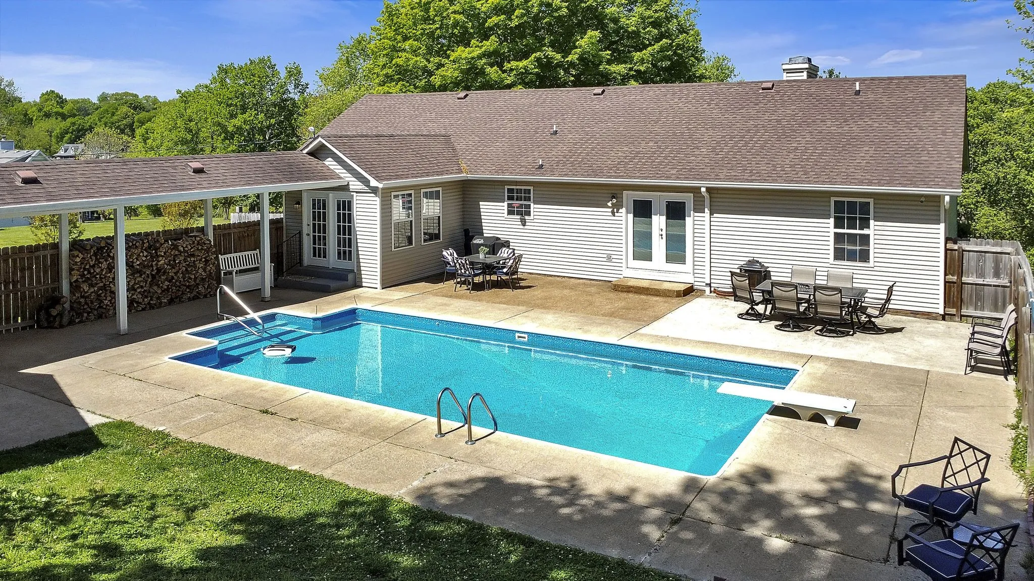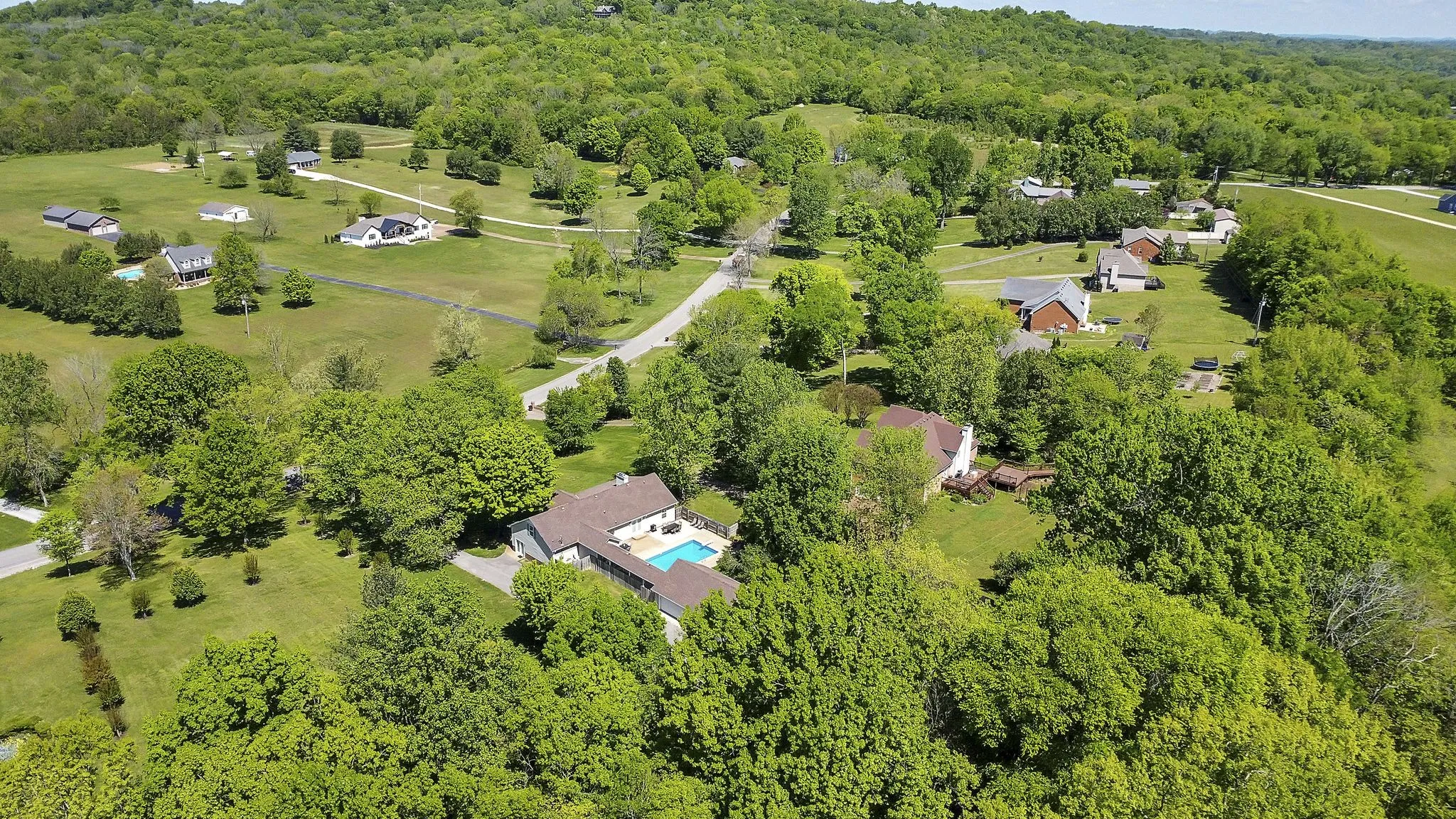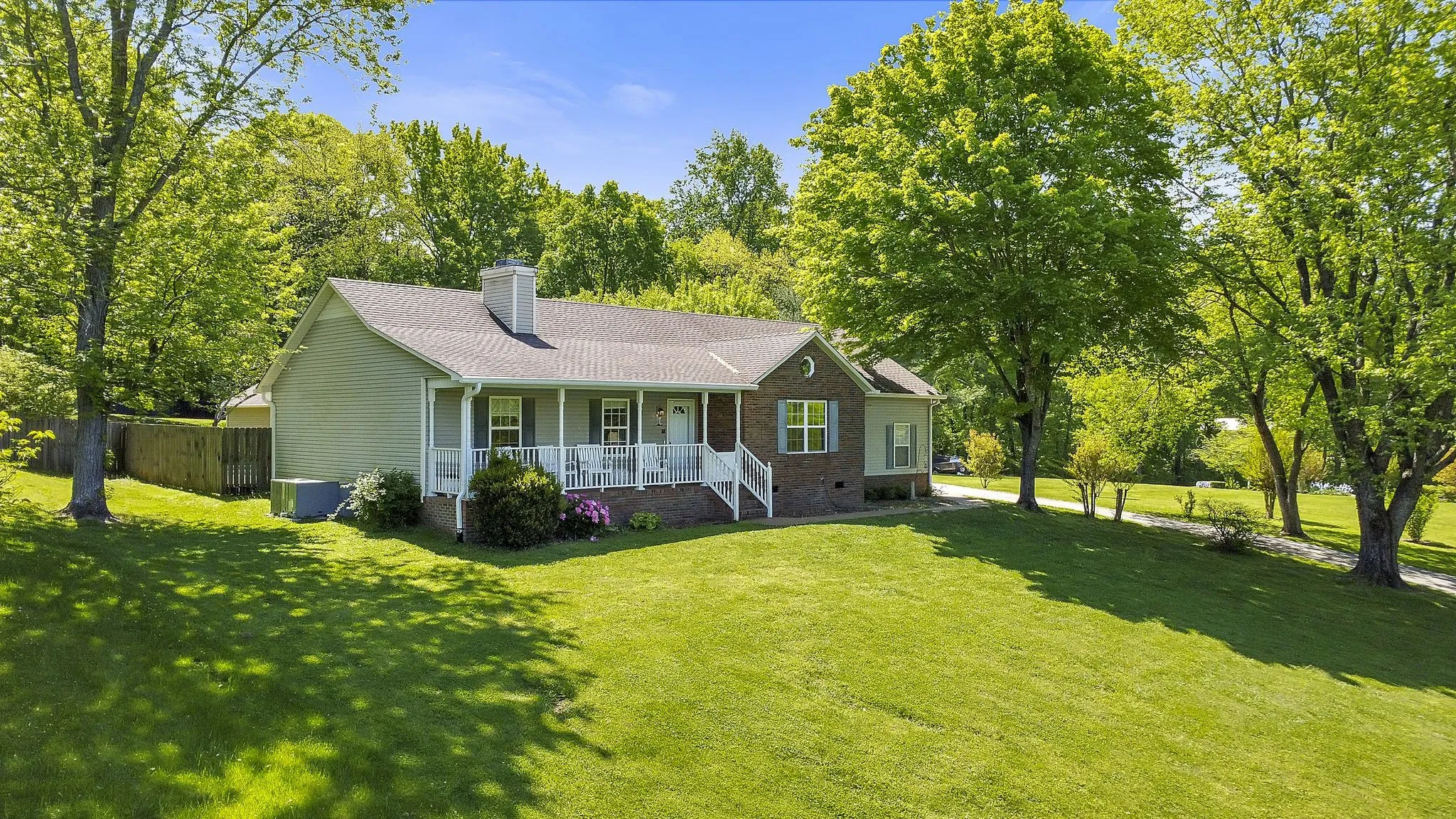 Welcome home to the country yet only minutes from I-65. So convenient! This 3 bedroom 2.5 bath home features 1 level living with bonus areas that create extra space for entertaining. Amazing views and quiet, serene feel. You will love the mature trees and backyard oasis with a fully fenced backyard including an in-ground salt water pool and large patio, beautiful green space for camp outs or nights around a campfire. NO HOA so bring your RV and enjoy the 5 car detached garage for your collectible cars or hobby space. This property has it all! Storm Shelter, Gutter Guards on both house and garage, wood burning fireplace and tons of storage.