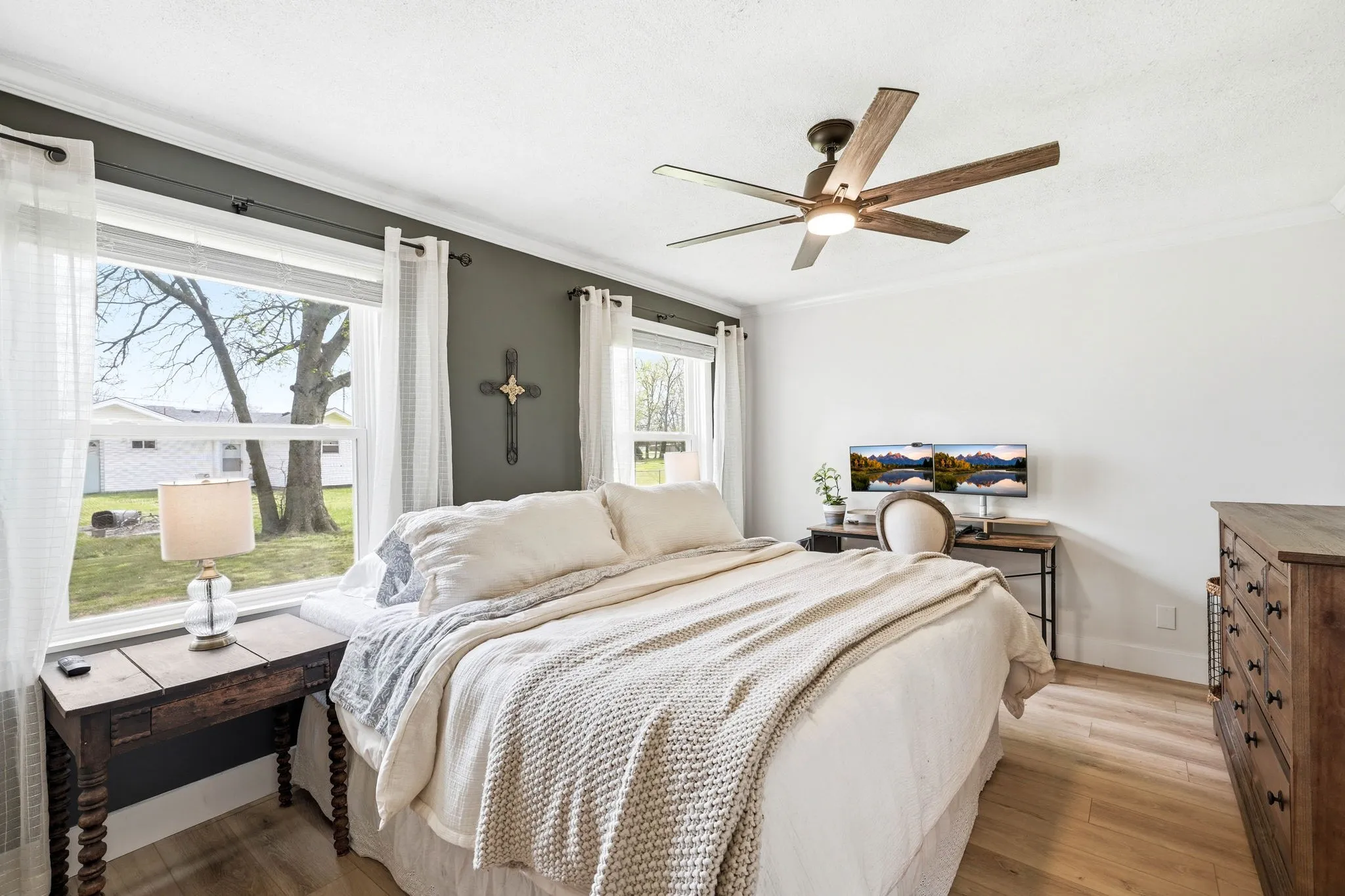 Durable LVP flooring runs throughout the home, while large windows (2021) allow natural light to fill the space. Major updates include a new HVAC unit in 2024, making this home truly move-in ready.