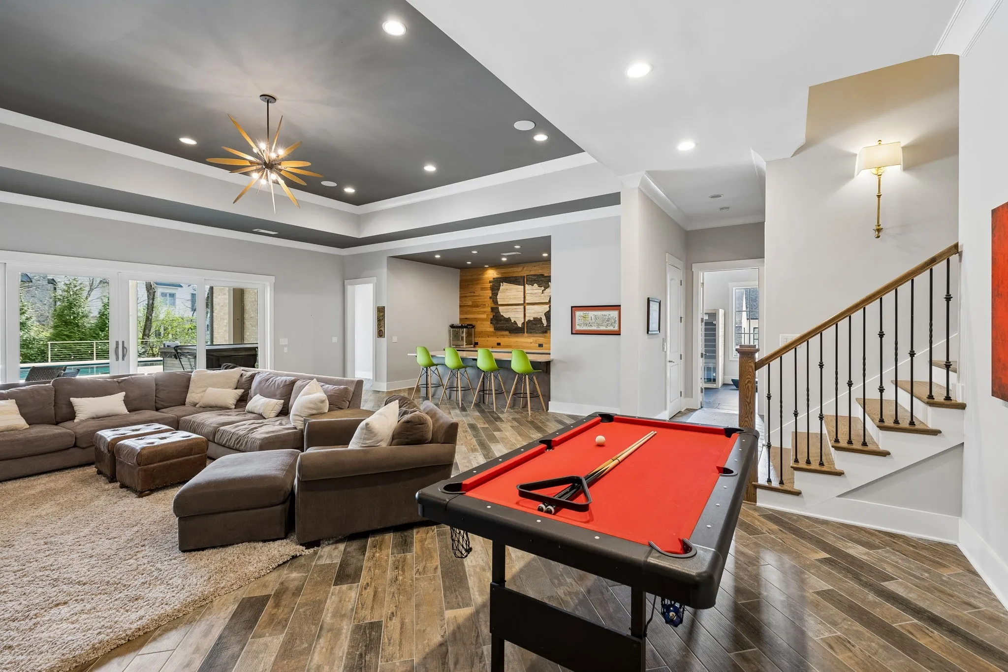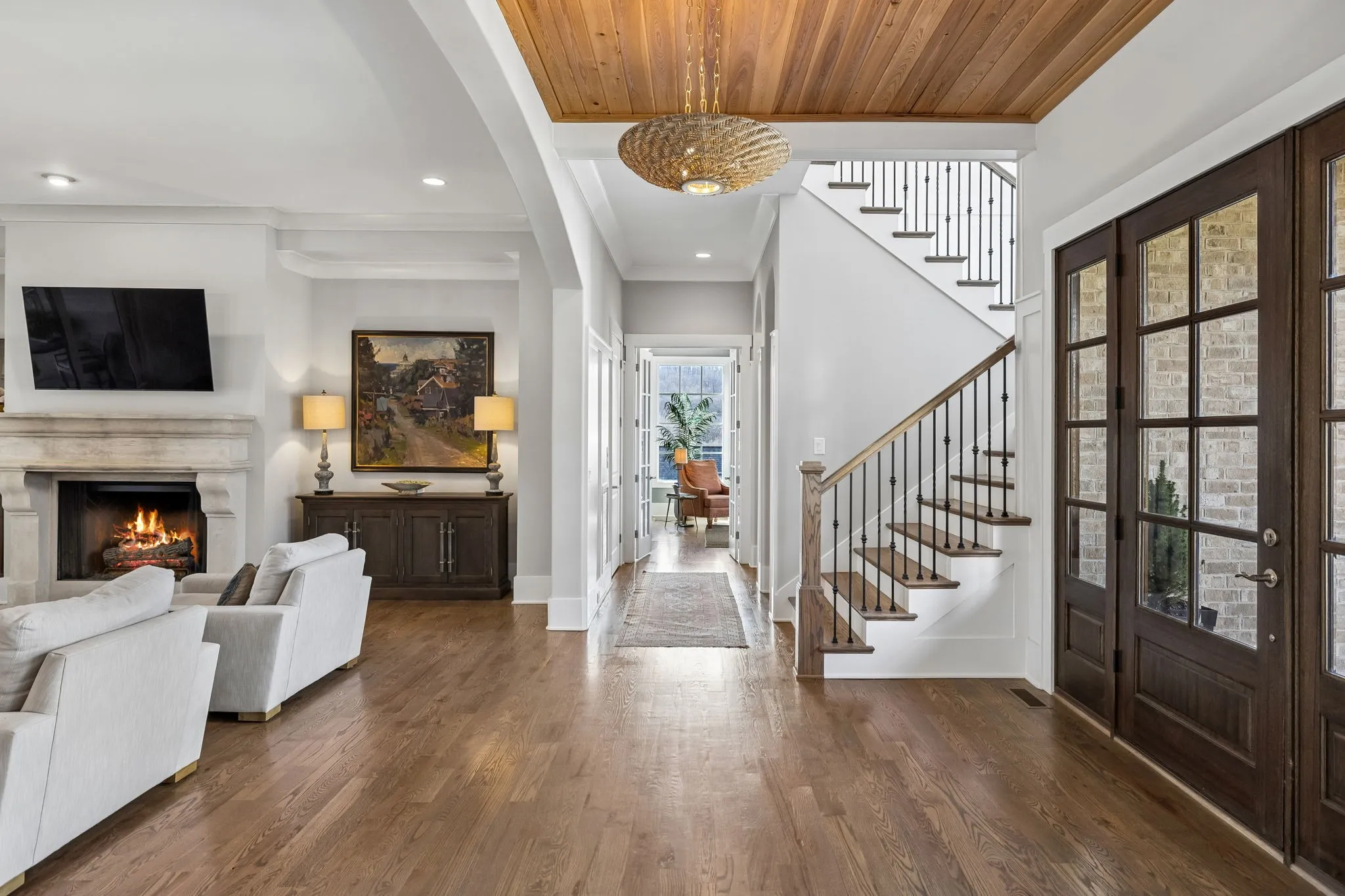 Nestled in the boutique community of Avery in Brentwood, this exceptional Hidden Valley Homes estate offers the perfect blend of luxury, thoughtful design, and an unbeatable location, just a short distance to Scales Elementary. Set on an oversized lot with beautiful views of the rolling hills, this stunning residence showcases over 9,600 square feet of meticulously crafted living space with an incredible layout designed for both everyday living and elegant entertaining. The main level features a spacious primary suite with marble finishes in the primary bath, private guest suite or in-law suite, along with a warm and inviting office complete with a gas fireplace and oversized windows that fill the space with natural light. At the heart of the home, the chef’s kitchen is outfitted with Thermador appliances, inset cabinetry, designer lighting, and opens seamlessly to expansive living and dining spaces highlighted by a bar with a wine column fridge, sand-and-finish hardwood floors and tongue-and-groove ceiling accents throughout the main level. Upstairs, generously sized bedrooms with custom closets provide comfort and privacy, along with a spacious bonus room perfect for gathering. An elevator services all three levels, adding convenience throughout the home. The walkout basement is designed for entertainment and wellness, featuring a bar, media room, gym with sauna, and a pool bath with shower. Step outside to a resort-style backyard complete with an ozone gunite pool, travertine decking, hot tub on the covered patio and a fully fenced tree lined yard. Additional highlights include a four-car garage, custom exterior uplighting, Sonos sound system, screened porch with gas fireplace and outdoor grill and thoughtful details throughout that elevate the home’s design and functionality. This extraordinary property, located in Williamson County, offers luxury living in one of Brentwood’s most desirable locations.