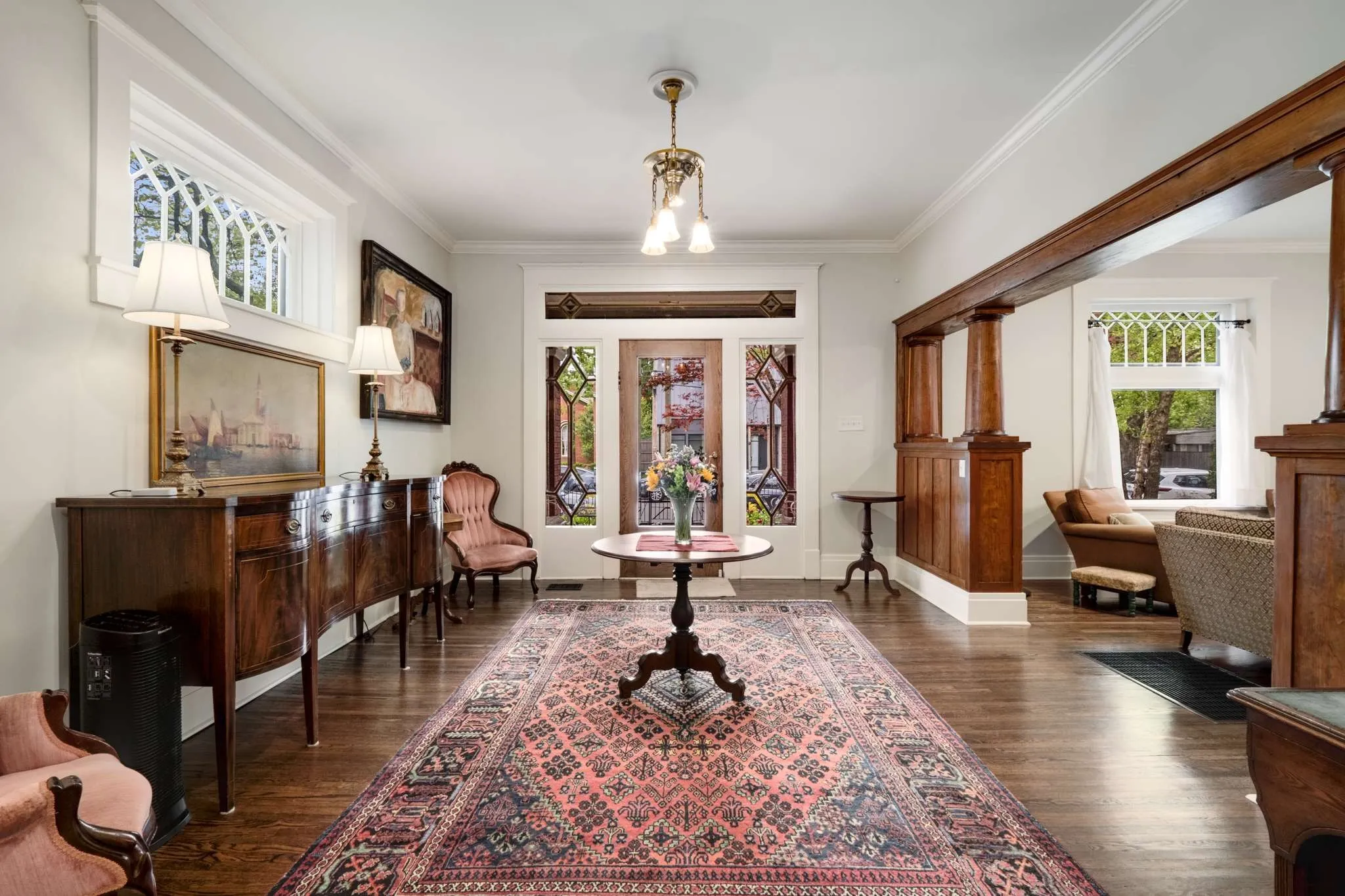 Outdoor living is equally impressive, with multiple charming porches that invite relaxation and conversation, all overlooking a private fenced yard—an uncommon luxury in this prime urban setting.