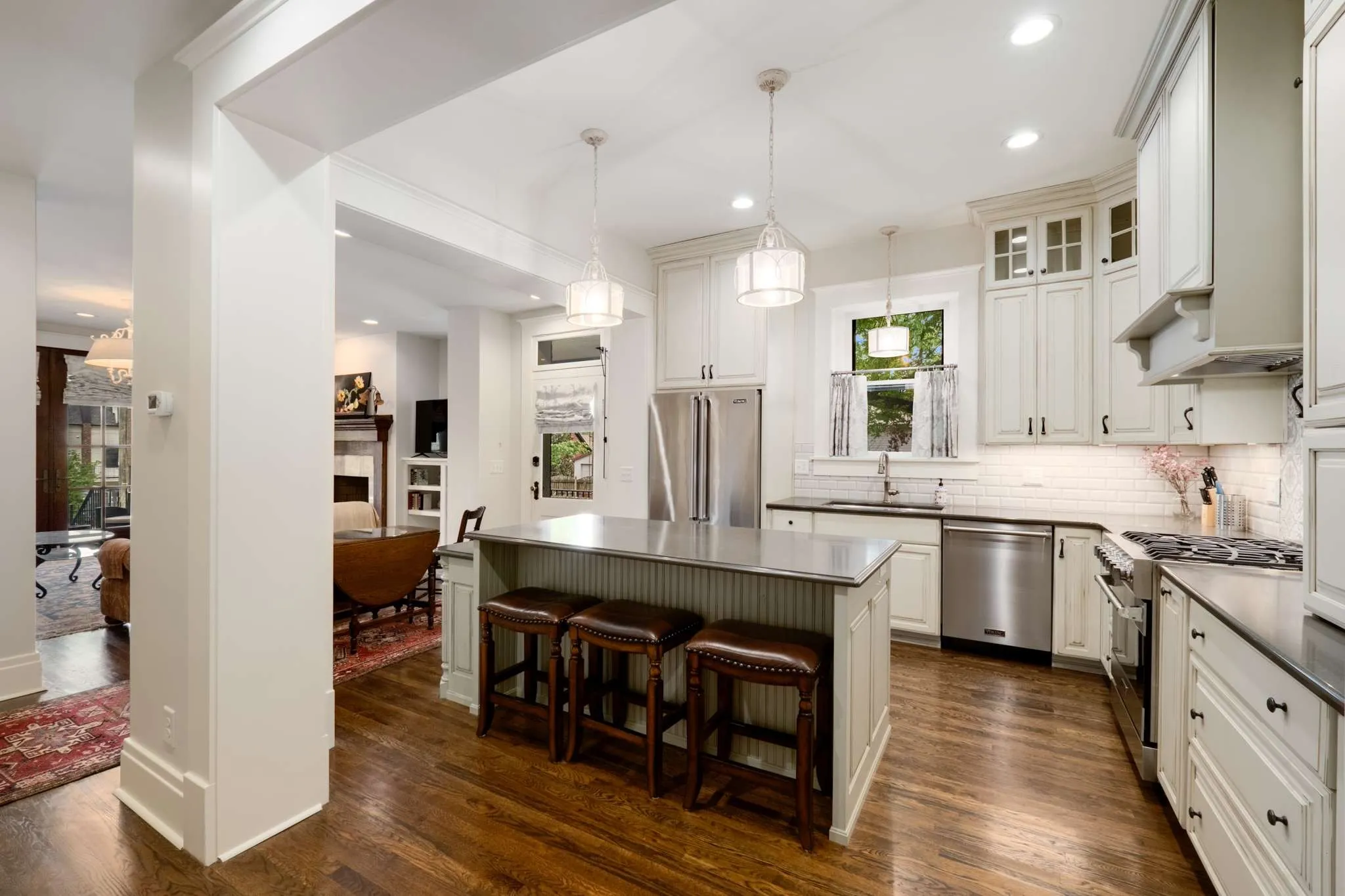 Every inch of this property reflects remarkable craftsmanship and attention to detail. Custom cut-glass and antique leaded glass windows create a stunning architectural statement while filling the home with natural light and capturing beautiful views of the downtown skyline. Four original fireplaces add historic character and warmth, while the thoughtfully designed, state-of-the-art kitchen offers both elegance and function—perfect for entertaining or everyday luxury living.