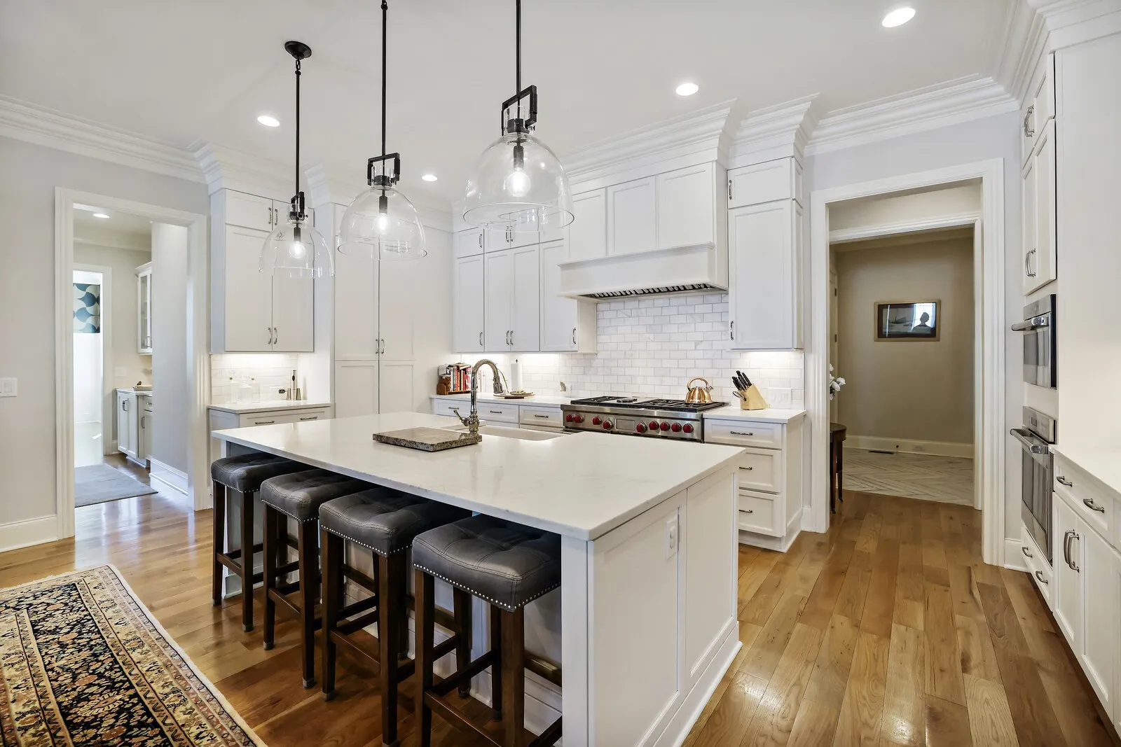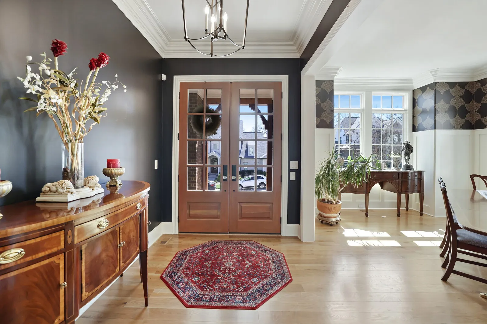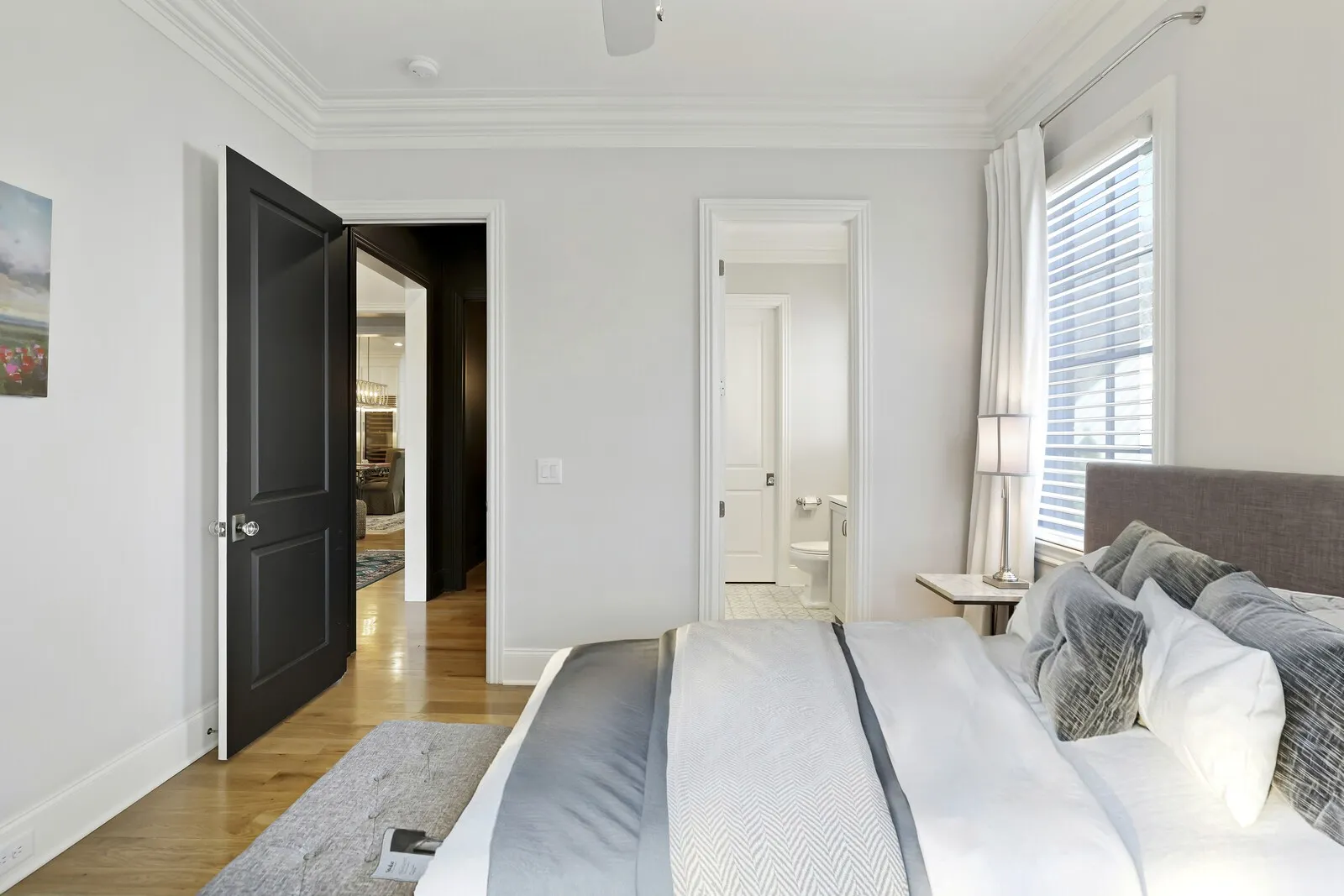 This stunning 5-bedroom home with 5 full baths and 2 half baths offers exceptional design, luxurious finishes, and a spacious 4-car garage. From the moment you enter, gleaming hardwood floors and thoughtful details set the tone for this beautifully crafted residence. Just off the foyer, a formal dining room sits to the left, perfect for hosting elegant gatherings. Across the hall, a private guest bedroom with its own en-suite bathroom provides comfort and convenience for visitors. A nearby half bath showcases eye-catching statement wallpaper, adding a touch of personality and style. The home opens into an expansive living area designed for both entertaining and everyday living. The open-concept layout seamlessly connects the living room, dining space, and kitchen, creating a warm and inviting atmosphere. The chef’s kitchen is a true centerpiece, featuring top-of-the-line stainless steel appliances, a generous workspace, and a hidden pantry with a built-in office nook for added functionality. The main-level primary suite is a luxurious retreat, complete with two walk-in closets and a spa-inspired en-suite bathroom featuring a split dual vanity, soaking tub, and separate shower. Just inside from the 4-car garage, a built-in drop zone offers practical organization for daily life. Step outside to enjoy exceptional outdoor living with a covered patio that includes an outdoor kitchen and fireplace, perfect for entertaining year-round. An additional open patio with a firepit creates an ideal space for relaxing evenings under the stars. Upstairs, an elegant bonus space at the top of the stairs provides flexibility for a media room, lounge, or additional gathering area. With its blend of luxury finishes, thoughtful design, and incredible indoor and outdoor living spaces, this home offers an elevated lifestyle in every detail. Up to 1% lender credit on the loan amount when buyer uses Seller’s Preferred Lender.