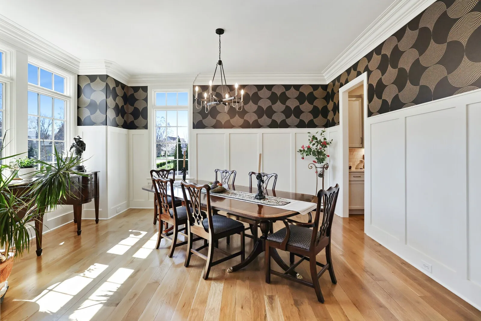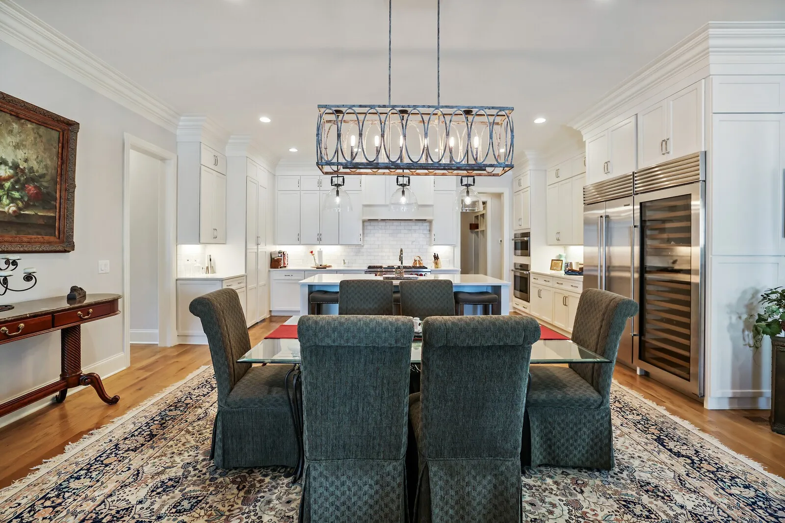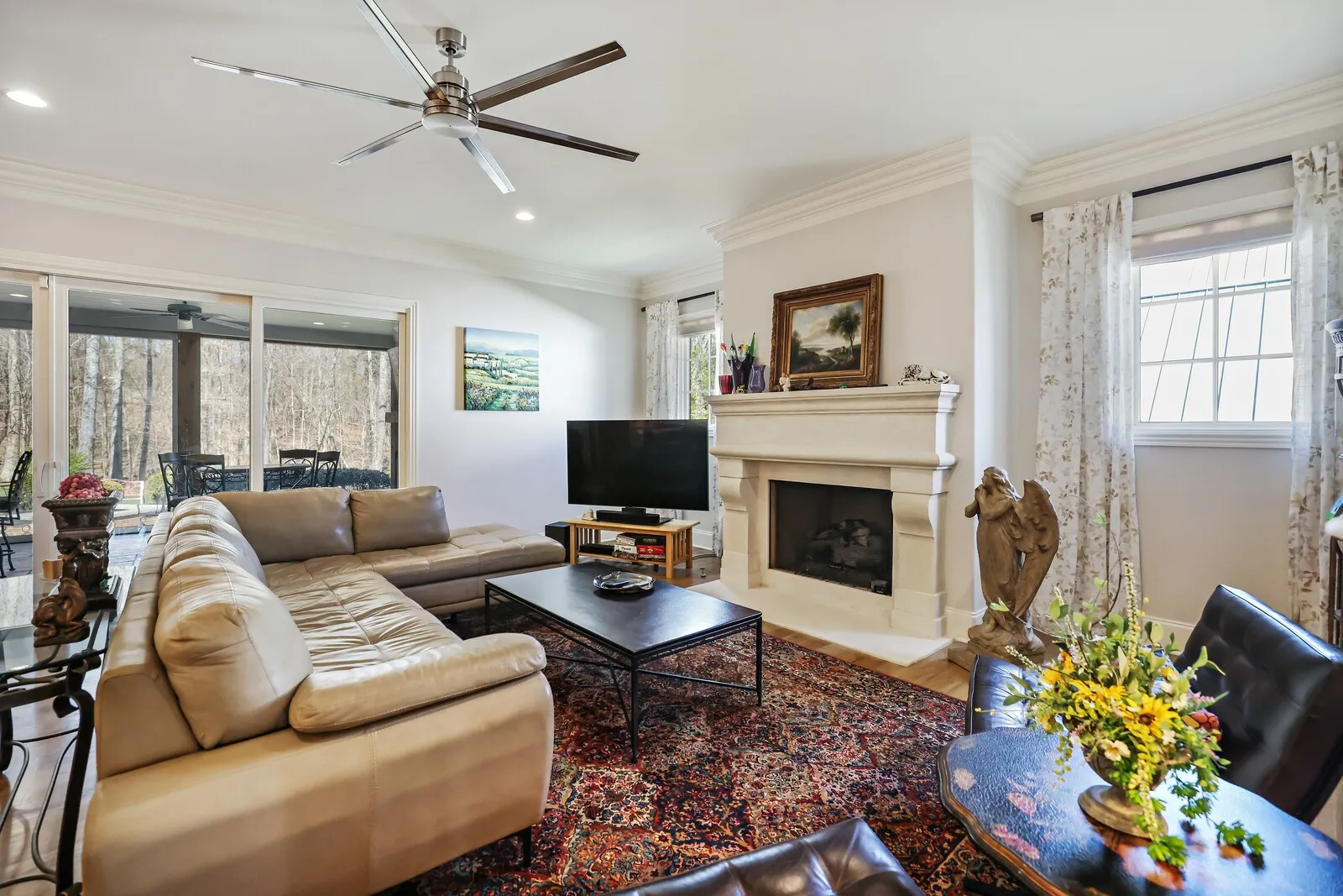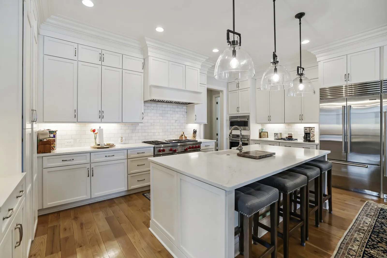 This stunning 5-bedroom home with 5 full baths and 2 half baths offers exceptional design, luxurious finishes, and a spacious 4-car garage. From the moment you enter, gleaming hardwood floors and thoughtful details set the tone for this beautifully crafted residence. Just off the foyer, a formal dining room sits to the left, perfect for hosting elegant gatherings. Across the hall, a private guest bedroom with its own en-suite bathroom provides comfort and convenience for visitors. A nearby half bath showcases eye-catching statement wallpaper, adding a touch of personality and style. The home opens into an expansive living area designed for both entertaining and everyday living. The open-concept layout seamlessly connects the living room, dining space, and kitchen, creating a warm and inviting atmosphere. The chef’s kitchen is a true centerpiece, featuring top-of-the-line stainless steel appliances, a generous workspace, and a hidden pantry with a built-in office nook for added functionality. The main-level primary suite is a luxurious retreat, complete with two walk-in closets and a spa-inspired en-suite bathroom featuring a split dual vanity, soaking tub, and separate shower. Just inside from the 4-car garage, a built-in drop zone offers practical organization for daily life. Step outside to enjoy exceptional outdoor living with a covered patio that includes an outdoor kitchen and fireplace, perfect for entertaining year-round. An additional open patio with a firepit creates an ideal space for relaxing evenings under the stars. Upstairs, an elegant bonus space at the top of the stairs provides flexibility for a media room, lounge, or additional gathering area. With its blend of luxury finishes, thoughtful design, and incredible indoor and outdoor living spaces, this home offers an elevated lifestyle in every detail. Up to 1% lender credit on the loan amount when buyer uses Seller’s Preferred Lender.